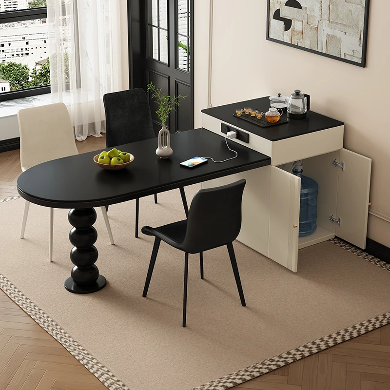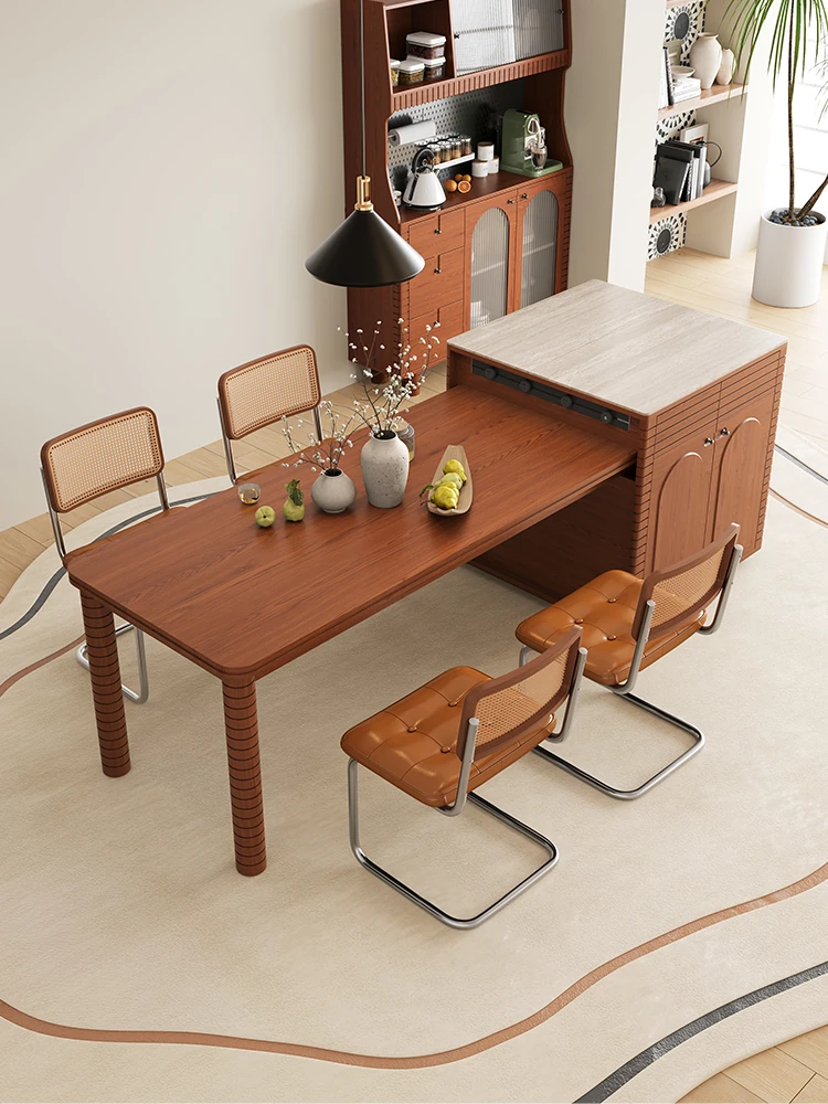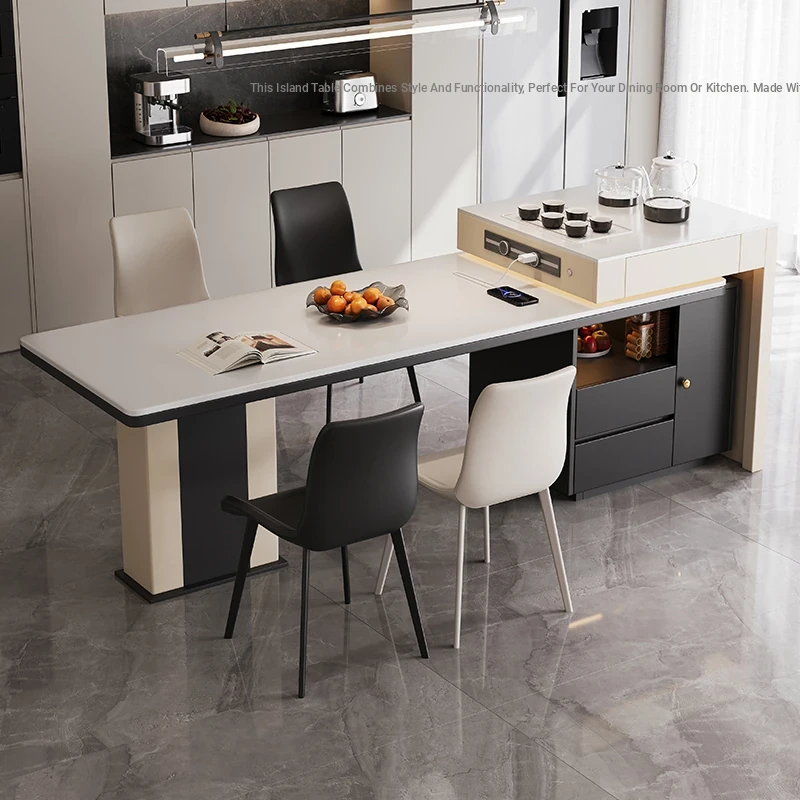 Modern Minimalist High-End Expandable Island Dining Table with Rock Board for Small Spaces – Perfect for Chic Home Dining!