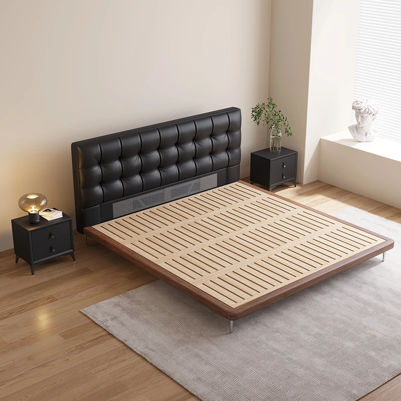 アンティーク風の本革ソフトパフベッド - モダンシンプルなレトロデザイン、主寝室にぴったり!1.5m・1.8mサイズのブラックダブルベッドで、あなたの寝室をスタイリッシュに演出します。