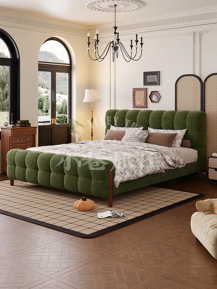 レトロスタイルの布製ダブルベッド | モダンなメインベッドルームにぴったり!1.5mと1.8mサイズのウレタンソフトパッケージプフベッドで、快適な睡眠を手に入れましょう。おしゃれで機能的なデザインが魅力です!