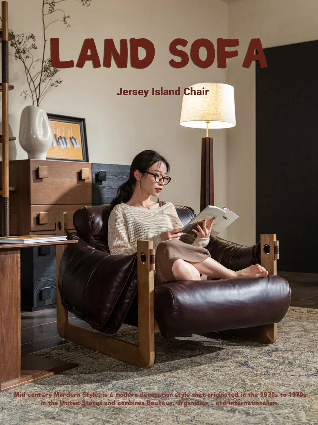 Lazy Sofa Chair - Versatile Recliner for Living Room, Bedroom, and Balcony, Retro Style Solid Wood Lounge Chair, Comfortable and Stylish Jersey Island Design