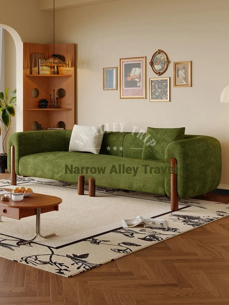 Chic Retro French Sofa for Small Spaces - 2025 New Vintage Green Fabric Couch Perfect for Cozy Living Rooms
