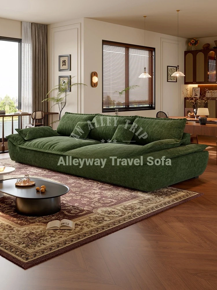 Chic Alley Travel | French Vintage Chenille Fabric Sofa - Spacious, Removable and Washable Deep Seat Sofa with Down Filling for Stylish Living Rooms