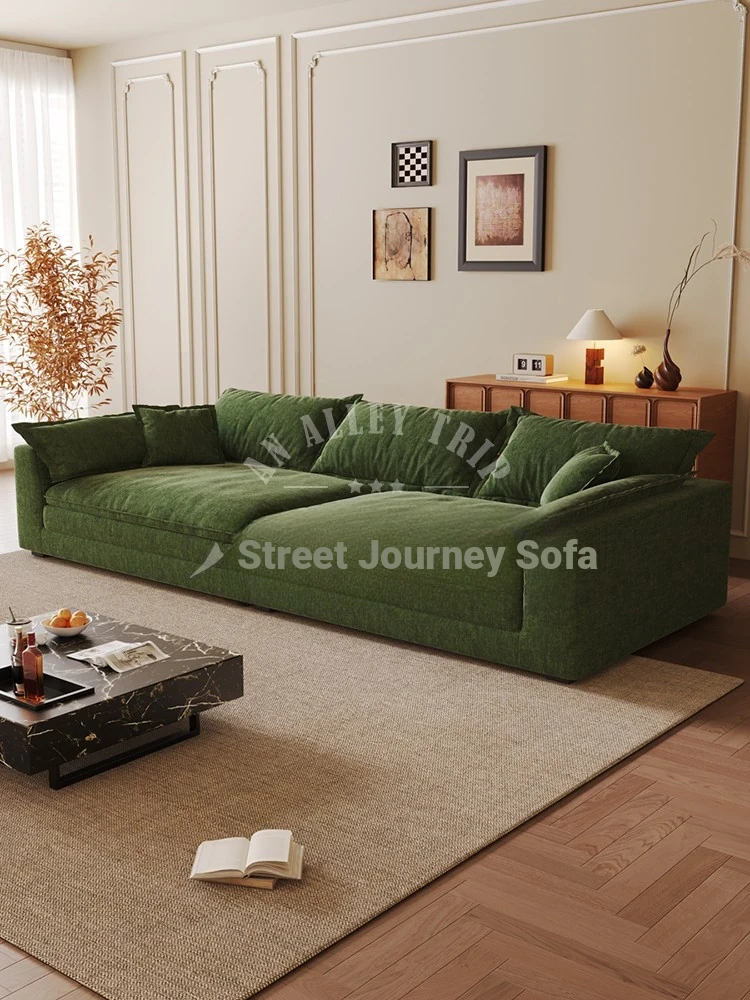 Nostalgic Alleyway Travel: Vintage Cloud Puffs Fabric Sofa with Cat Scratch Resistance - Perfect for Your Living Room and Piano Key Aesthetic!