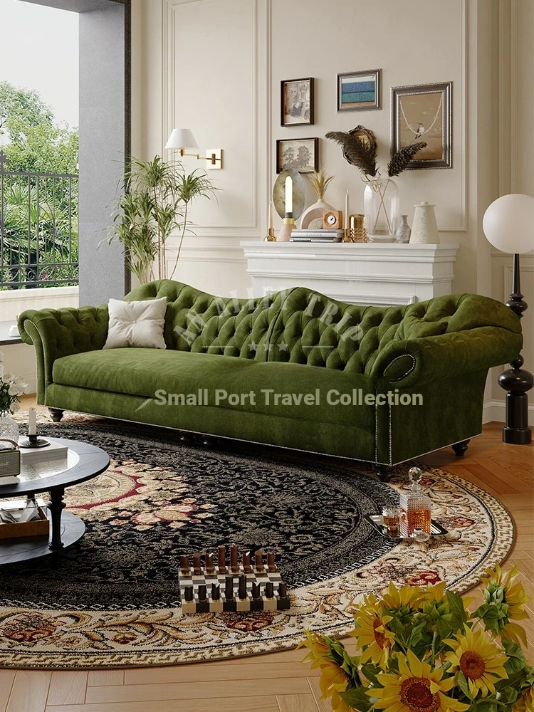 Alleyway Travel | Luxurious Vintage American Style Snowflake Velvet Sofa - Elegant High-End Mid-Century Living Room Furniture