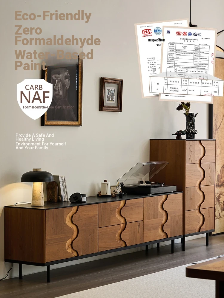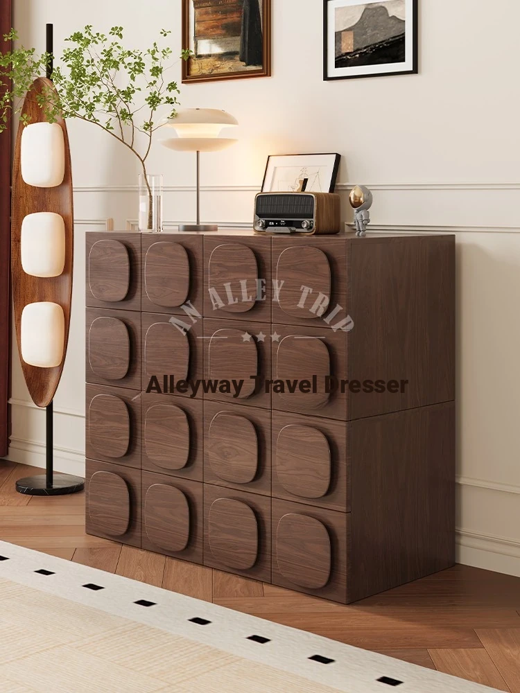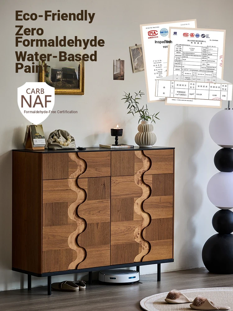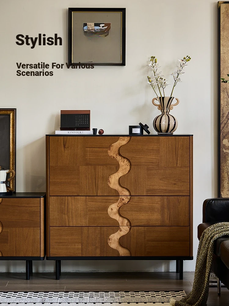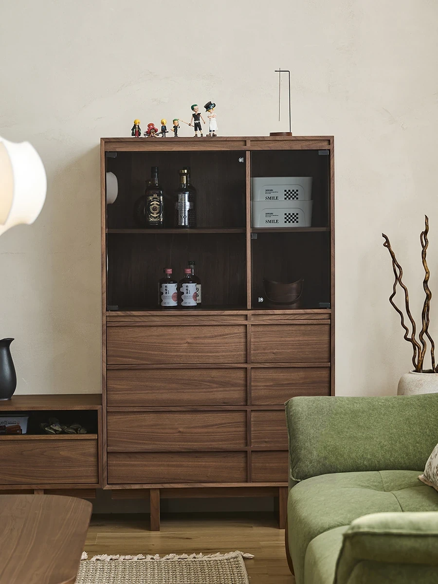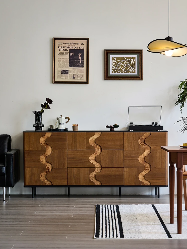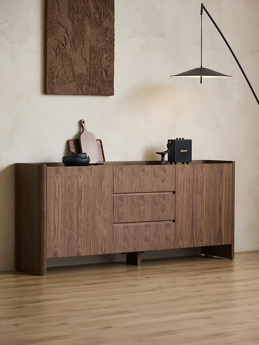 Walnut Solid Wood Sideboard Storage Cabinet for Small Spaces - Multifunctional Scandinavian French Style Furniture for Living Room and Dining Room