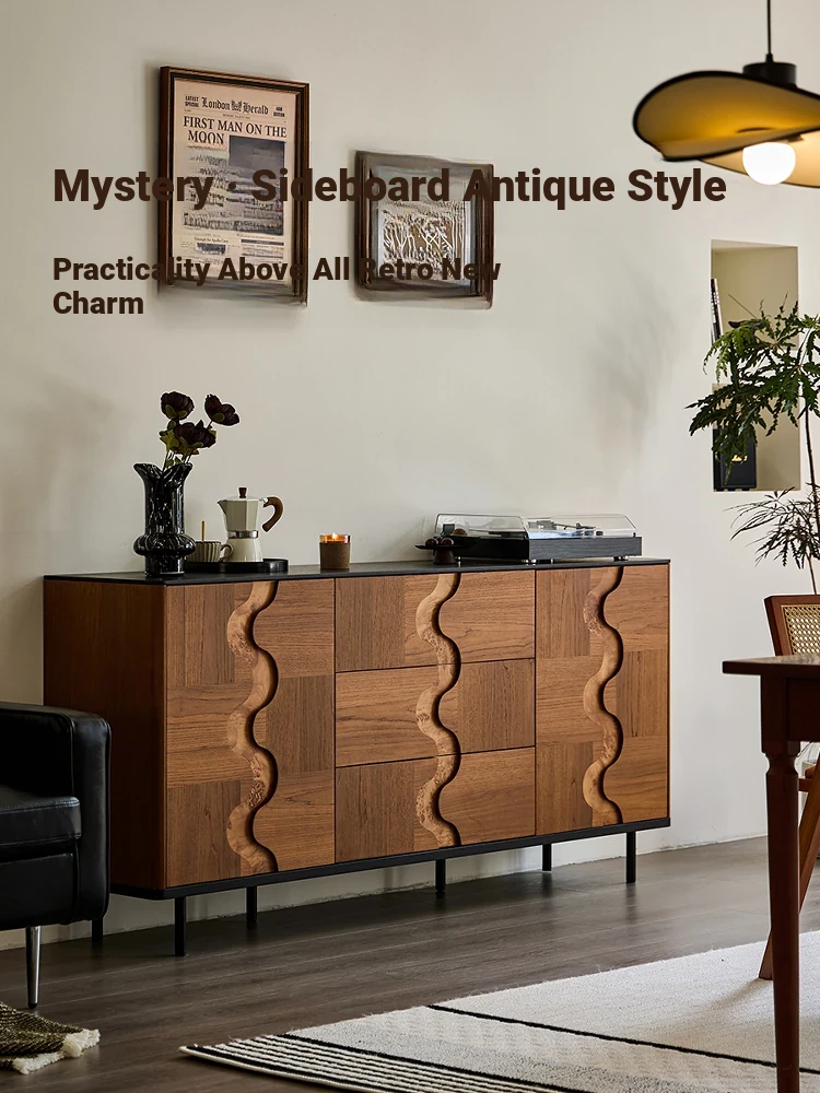 Vintage Solid Wood Sideboard Storage Cabinet - Ideal for Dining Rooms, Wall-Mounted, Multi-Functional Tea and Snack Organizer, Perfect Retro Style for Your Home Décor.