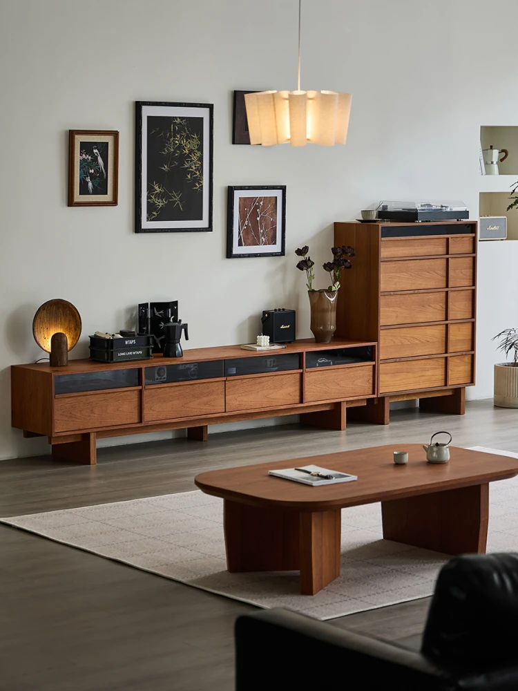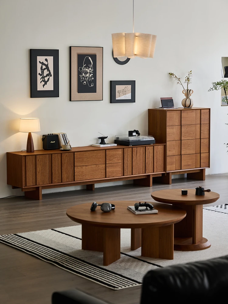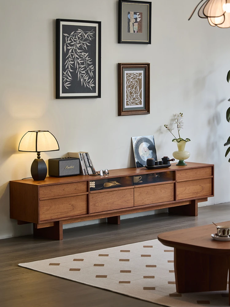 Vintage Solid Wood Living Room TV Stand - Multi-Functional Storage Cabinet with Drawers and Combinations for a Charming Retro Home Decor