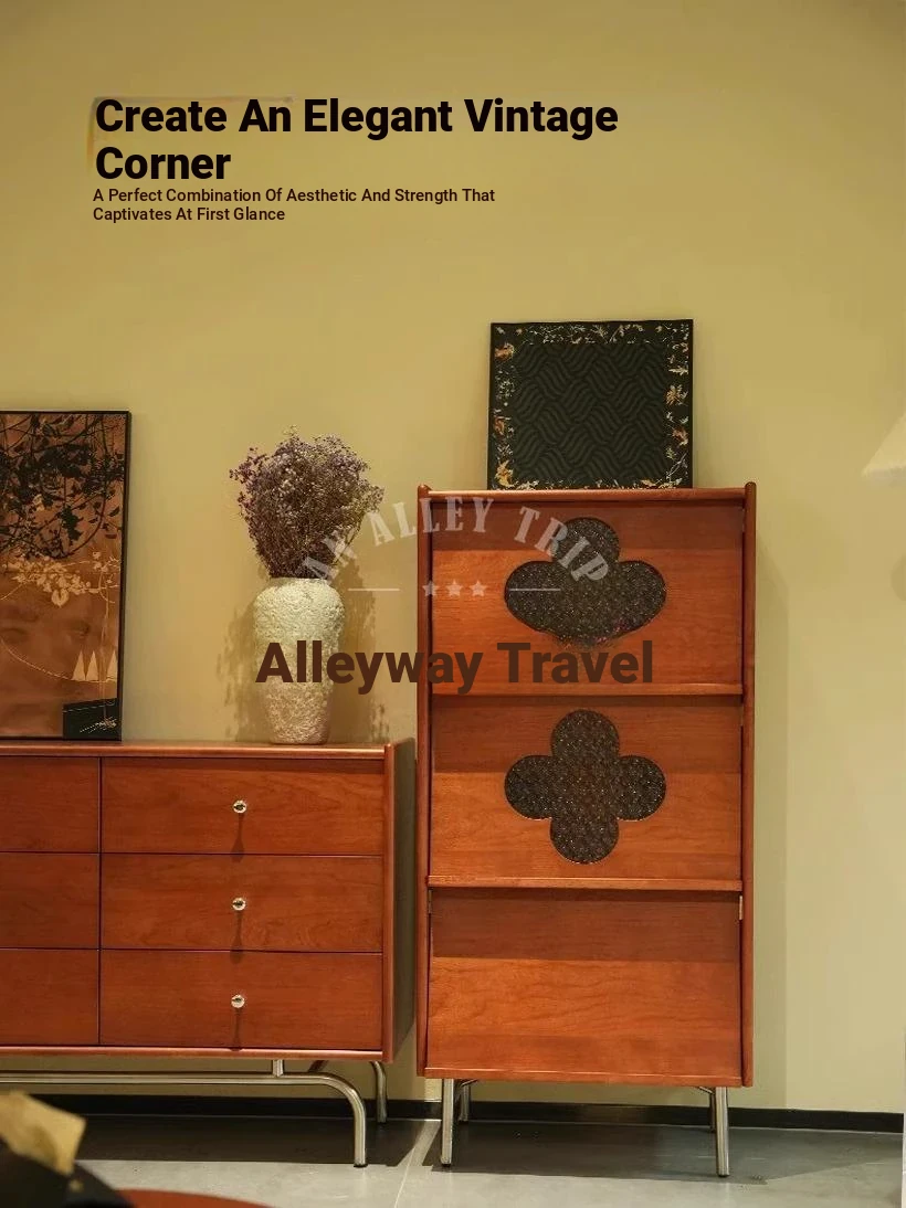 Vintage-Style Solid Wood Storage Cabinet for Living Room - Clover Four-Leaf Chest of Drawers Combination, Perfectly Blends Function and Aesthetics for Your Home Décor!