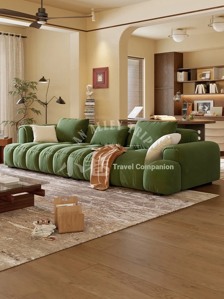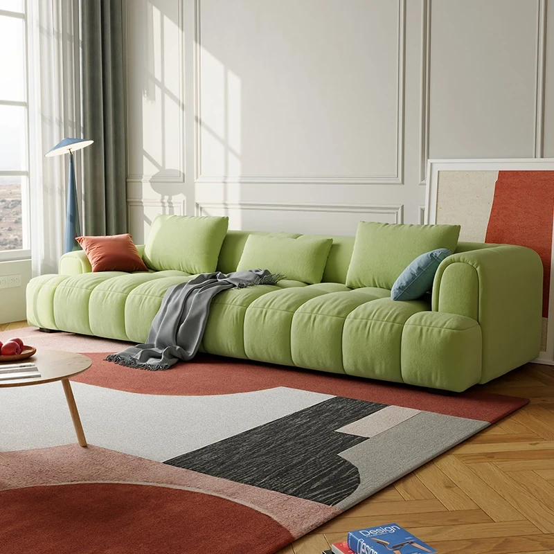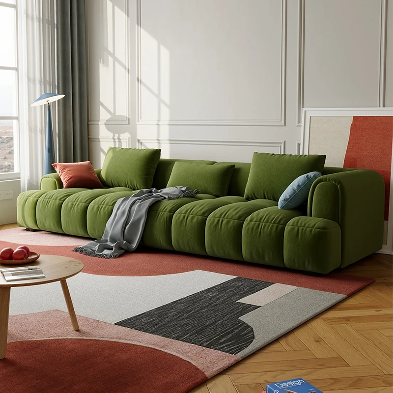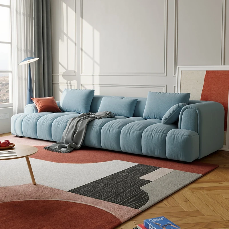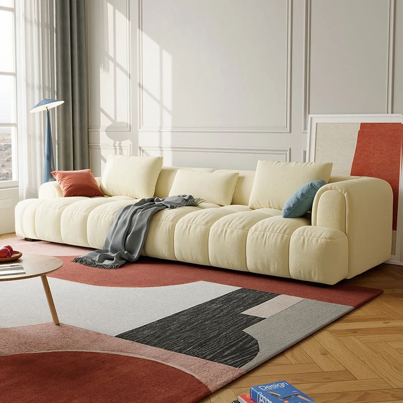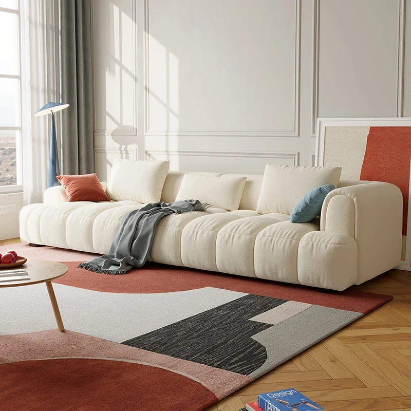 Chic Alley Retreat | French Vintage Style Puff Marshmallow Cloud Sofa for Small Living Rooms - Stylish Straight Fabric Sofa for Cozy Spaces