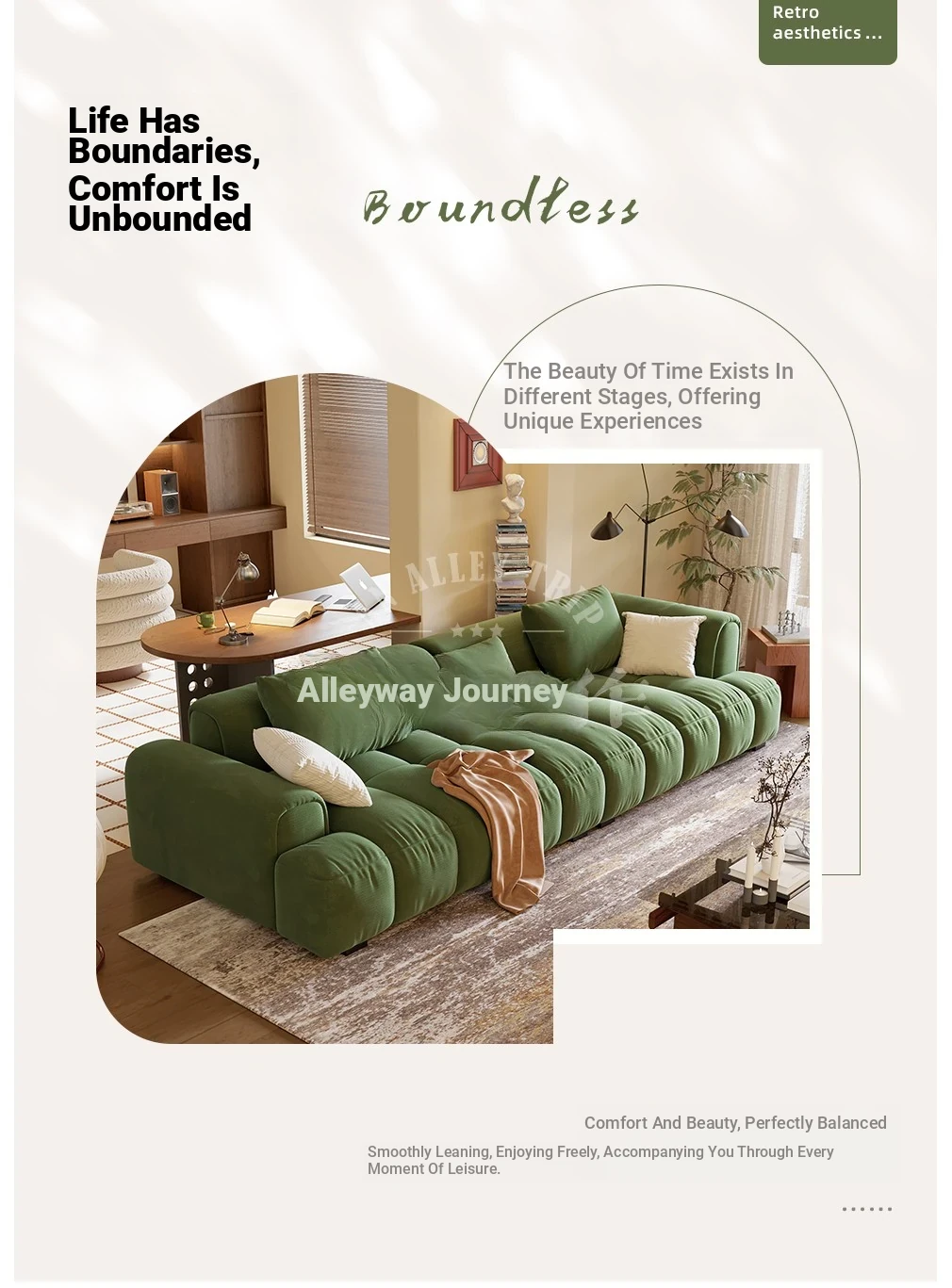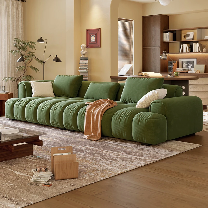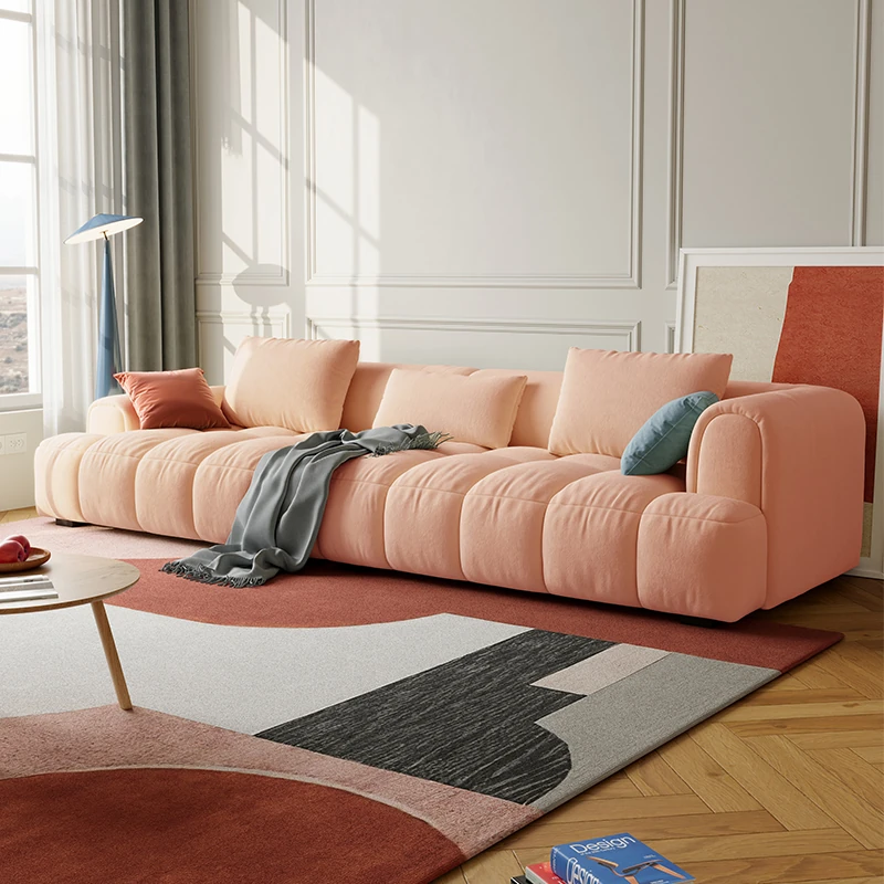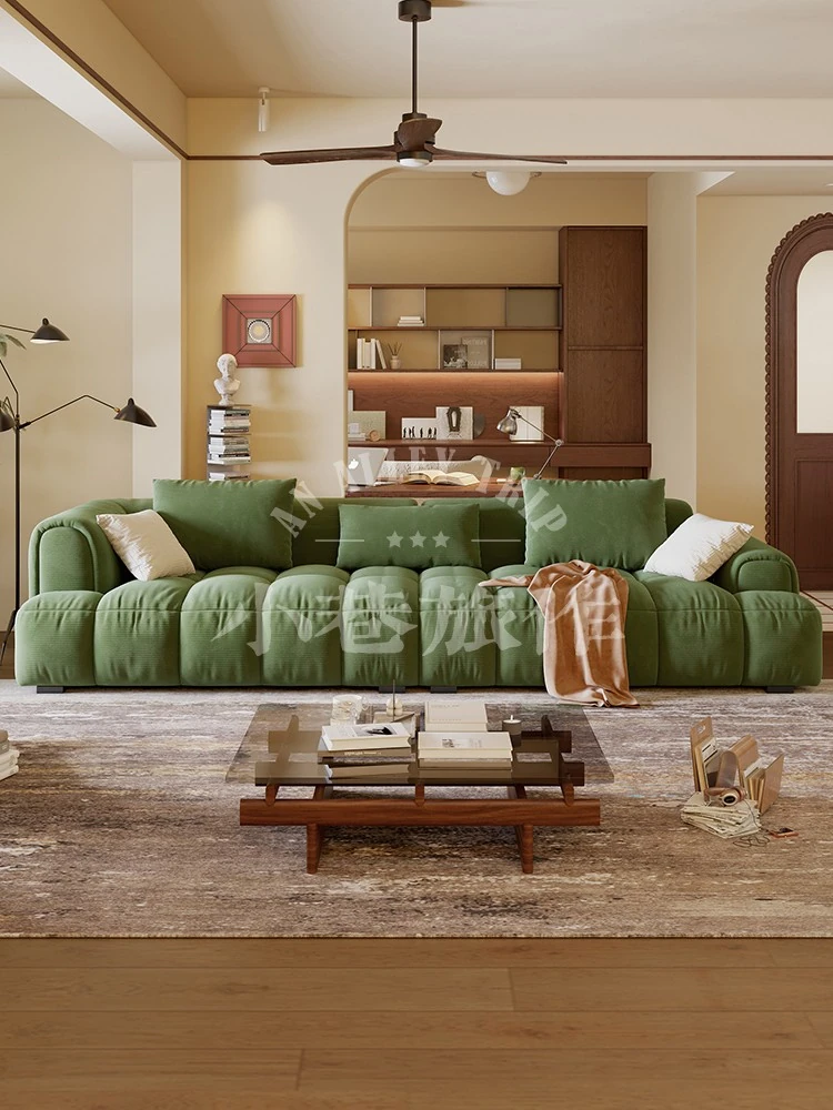 Chic Alley Retreat | French Vintage Style Puff Marshmallow Cloud Sofa for Small Living Rooms - Stylish Straight Fabric Sofa for Cozy Spaces