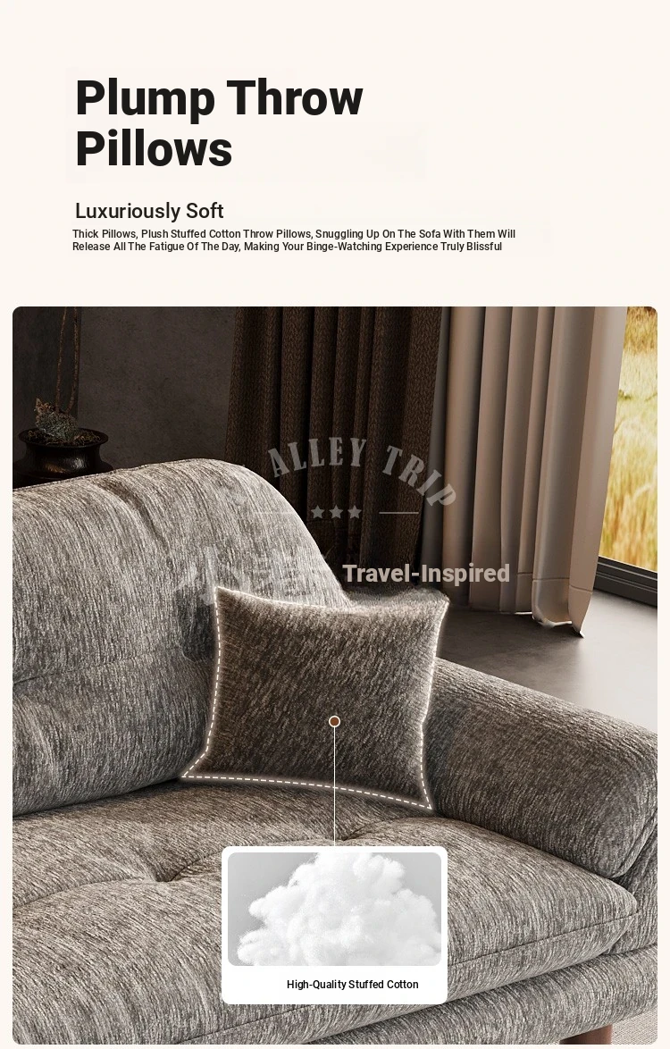 Chic Alley Travel | French Vintage Chenille Cloud Island Sofa - Stylish Fabric Sofa for Small Living Rooms, Perfect for Cozy Spaces