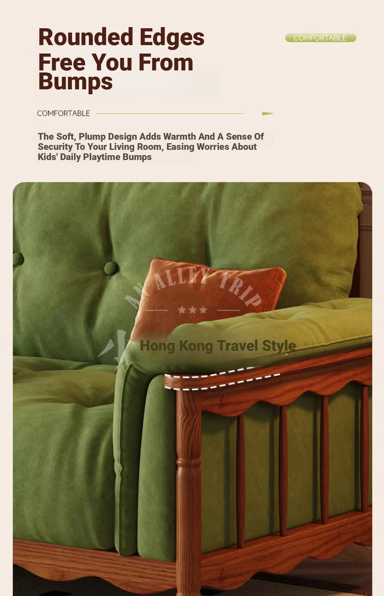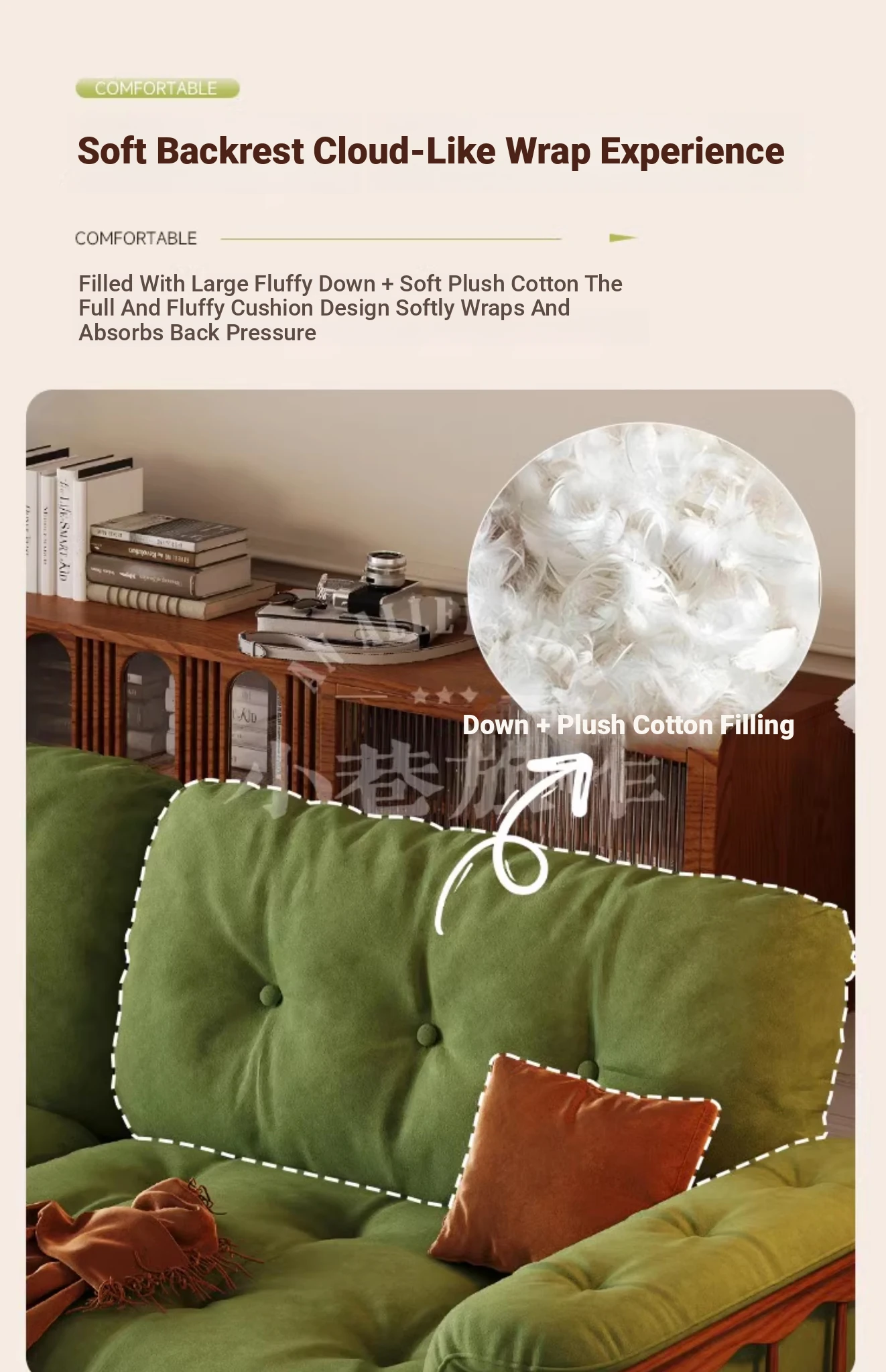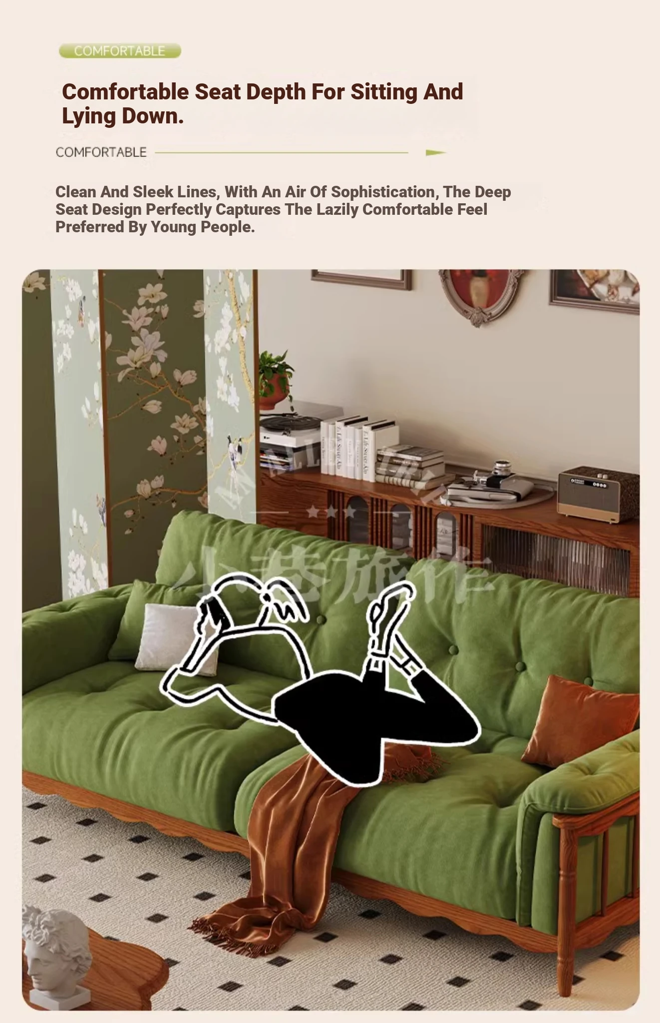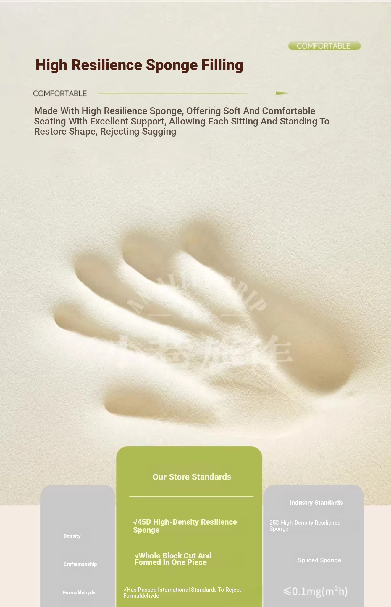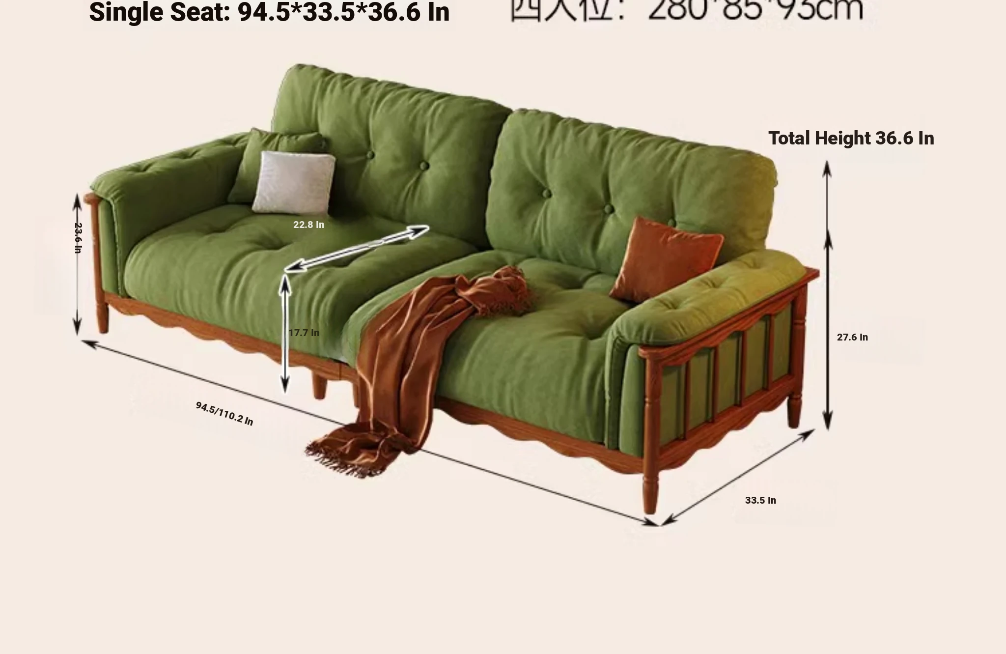 Four-person 94.49 in [High Density Rebound Sponge Cushion + Bold Larch Base]]