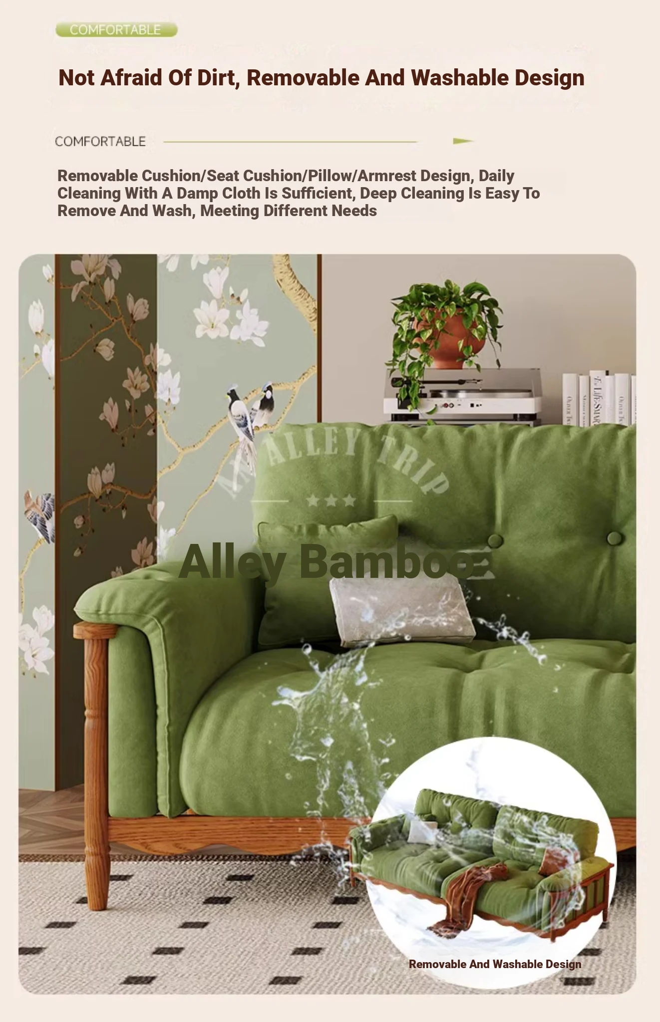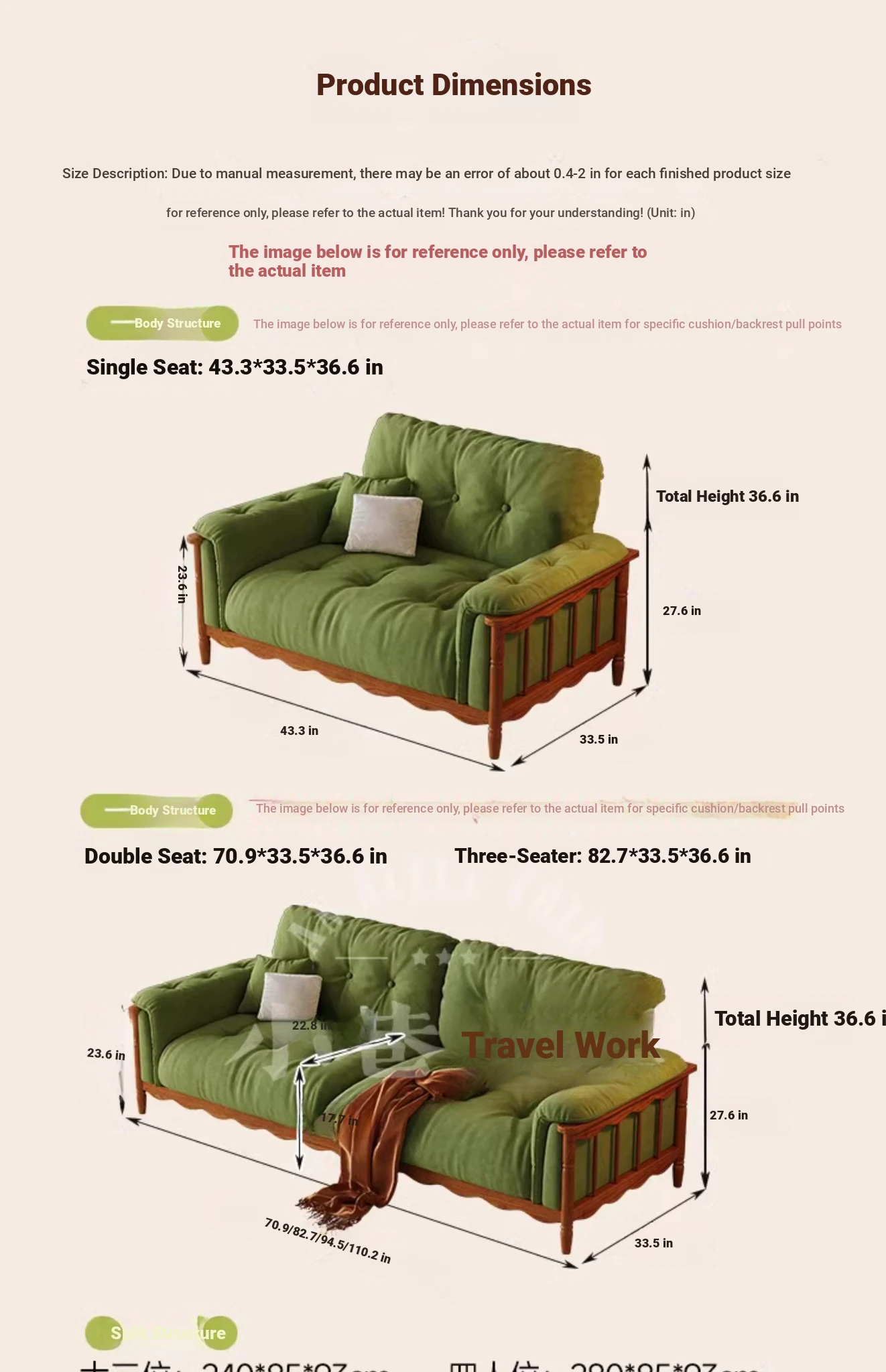 Three people 82.68 ins [high density rebound sponge cushion + bold larch base]]