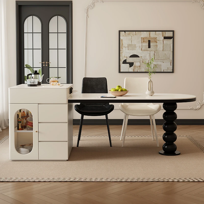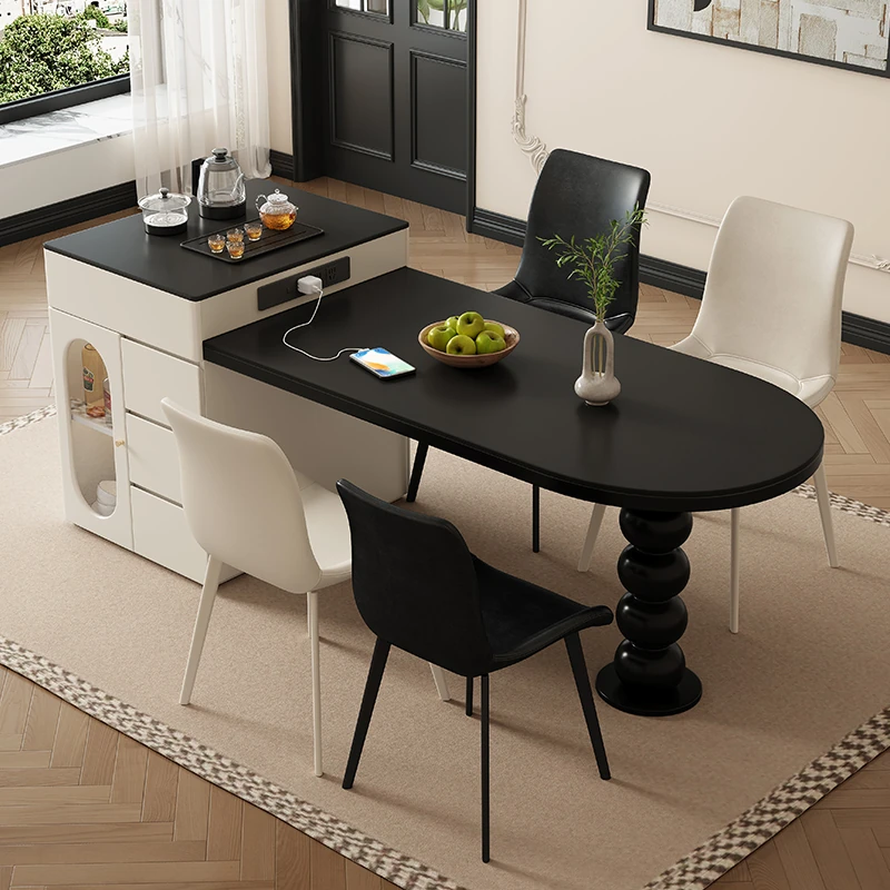 Telescopic dining table [60.63in-77.95in] [track row + double hole teapot] +6 key Chair