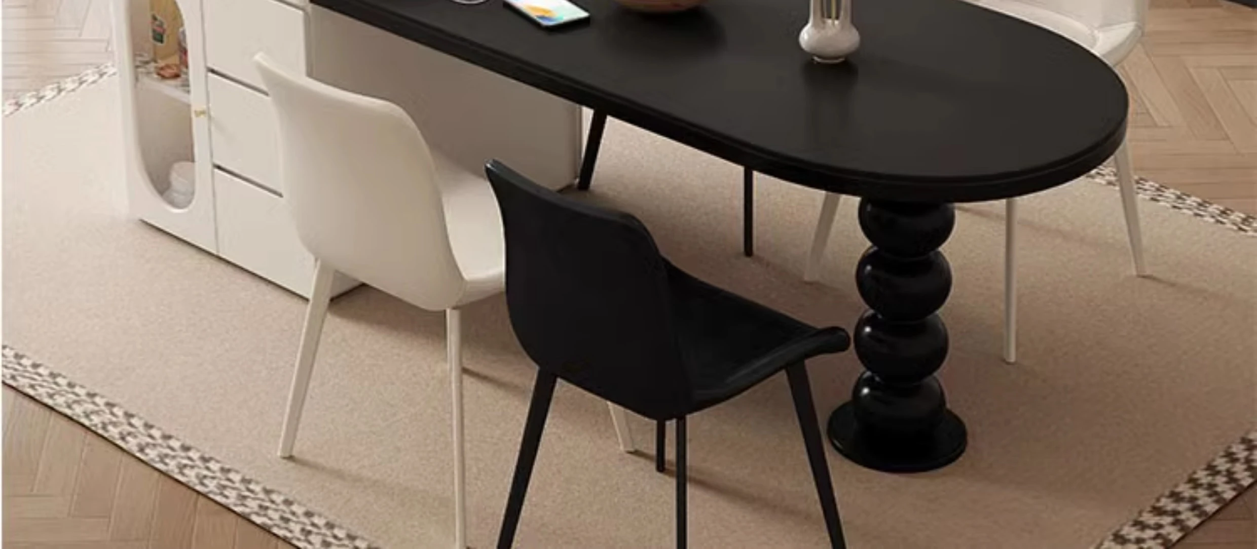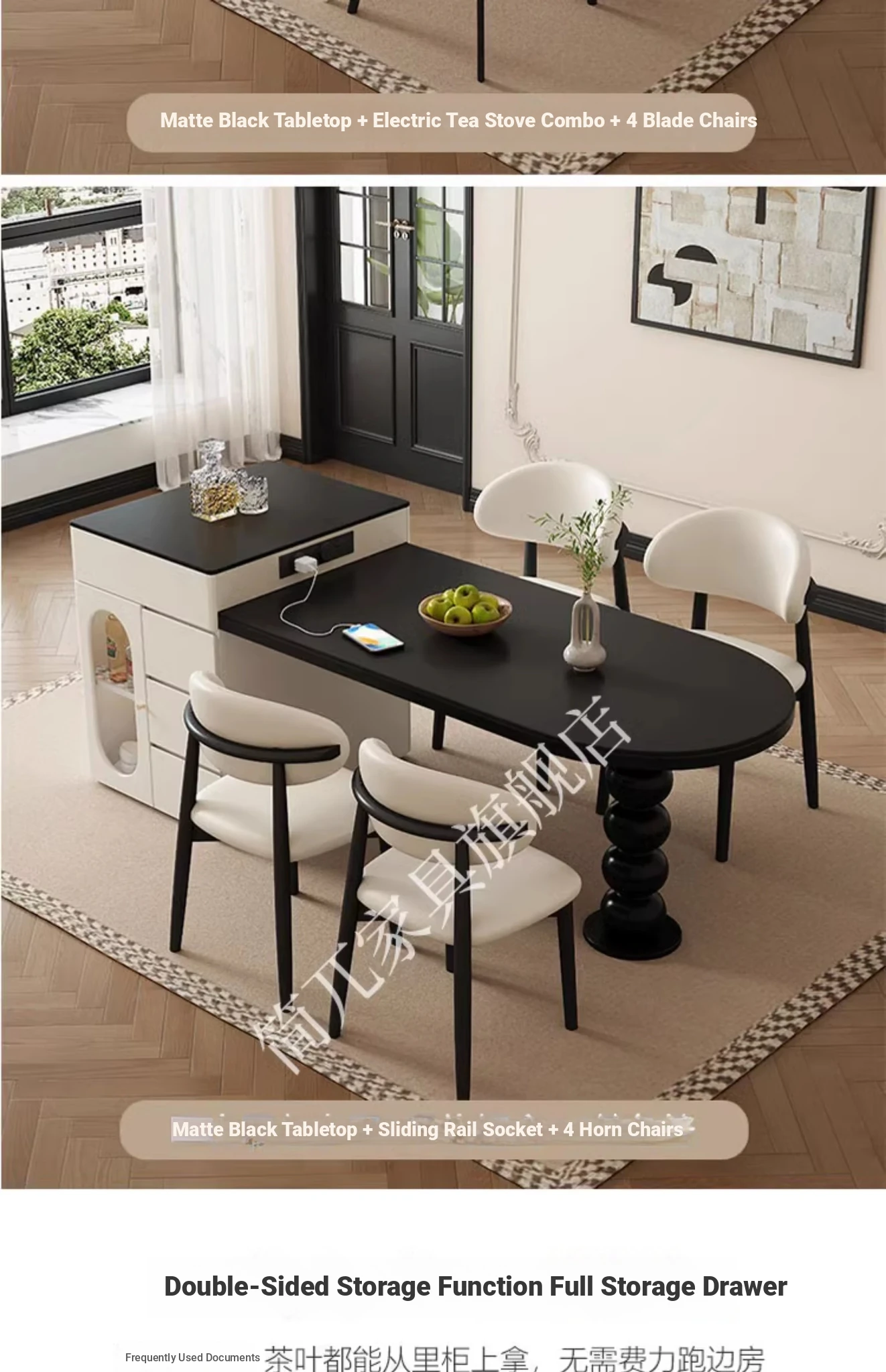 Telescopic dining table [60.63in-77.95in] [Bull row + double hole teapot] +4 key Chair
