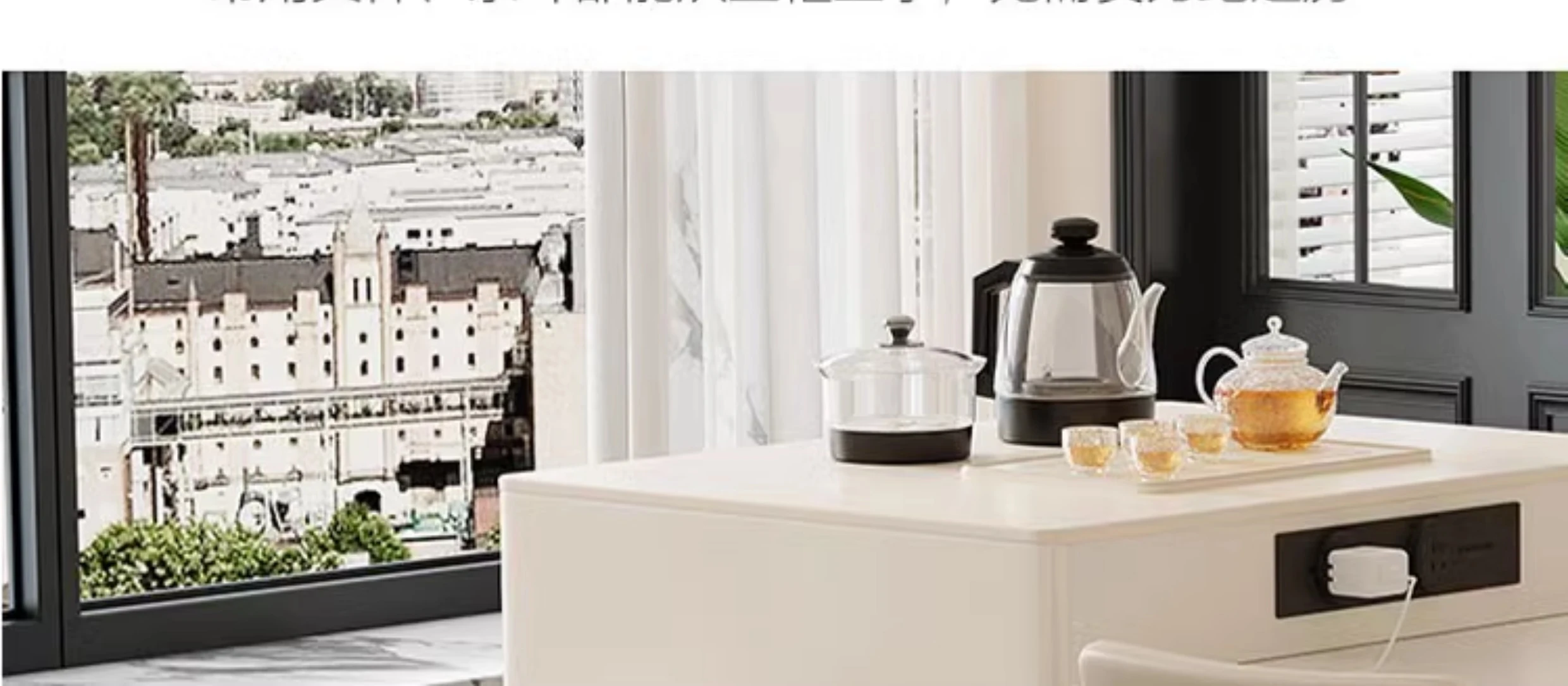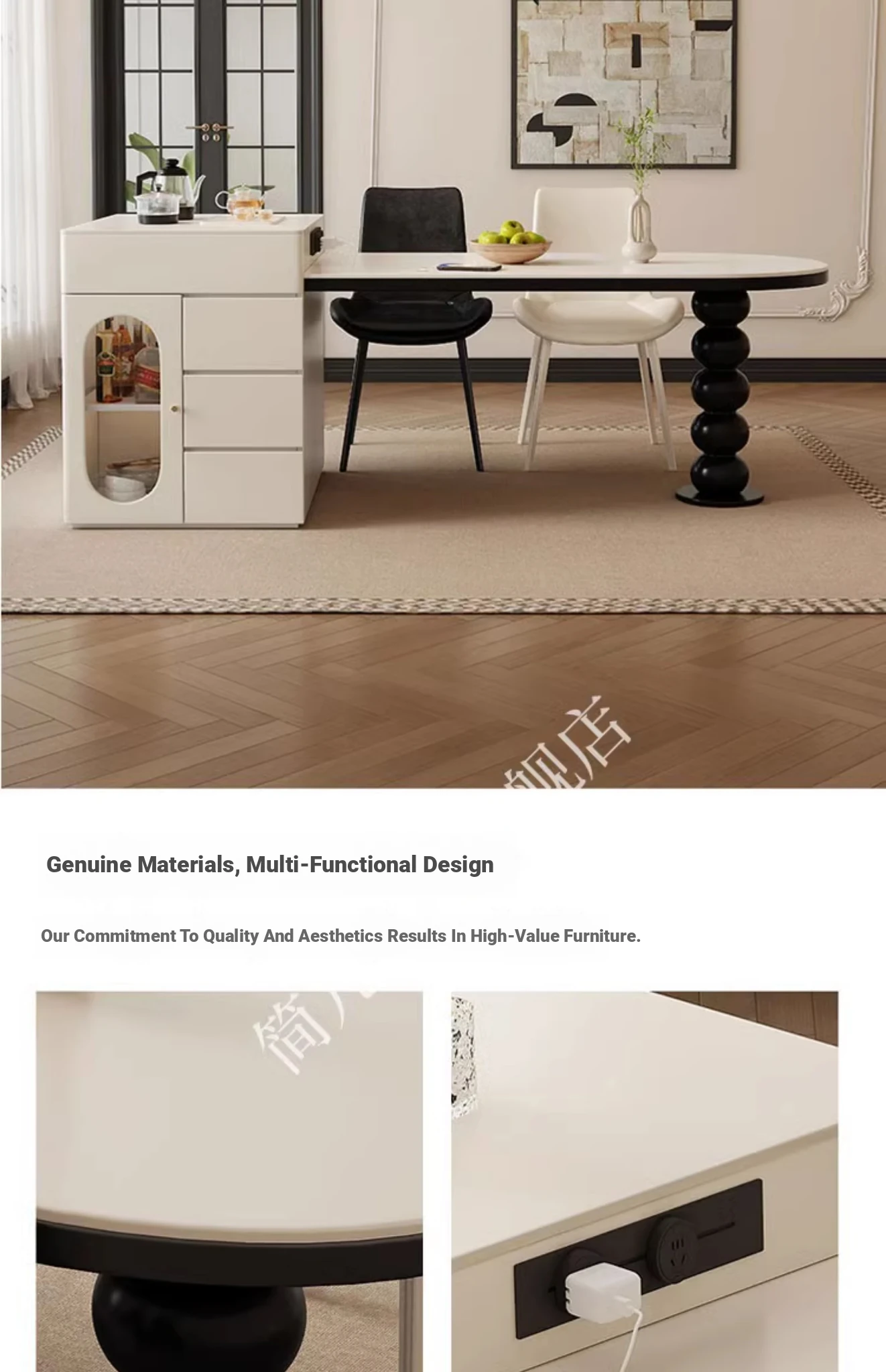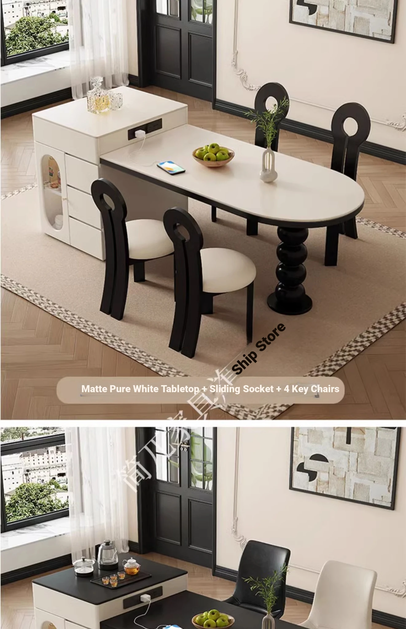 Telescopic dining table [60.63in-77.95in] [track row + double hole teapot] +4 key Chair