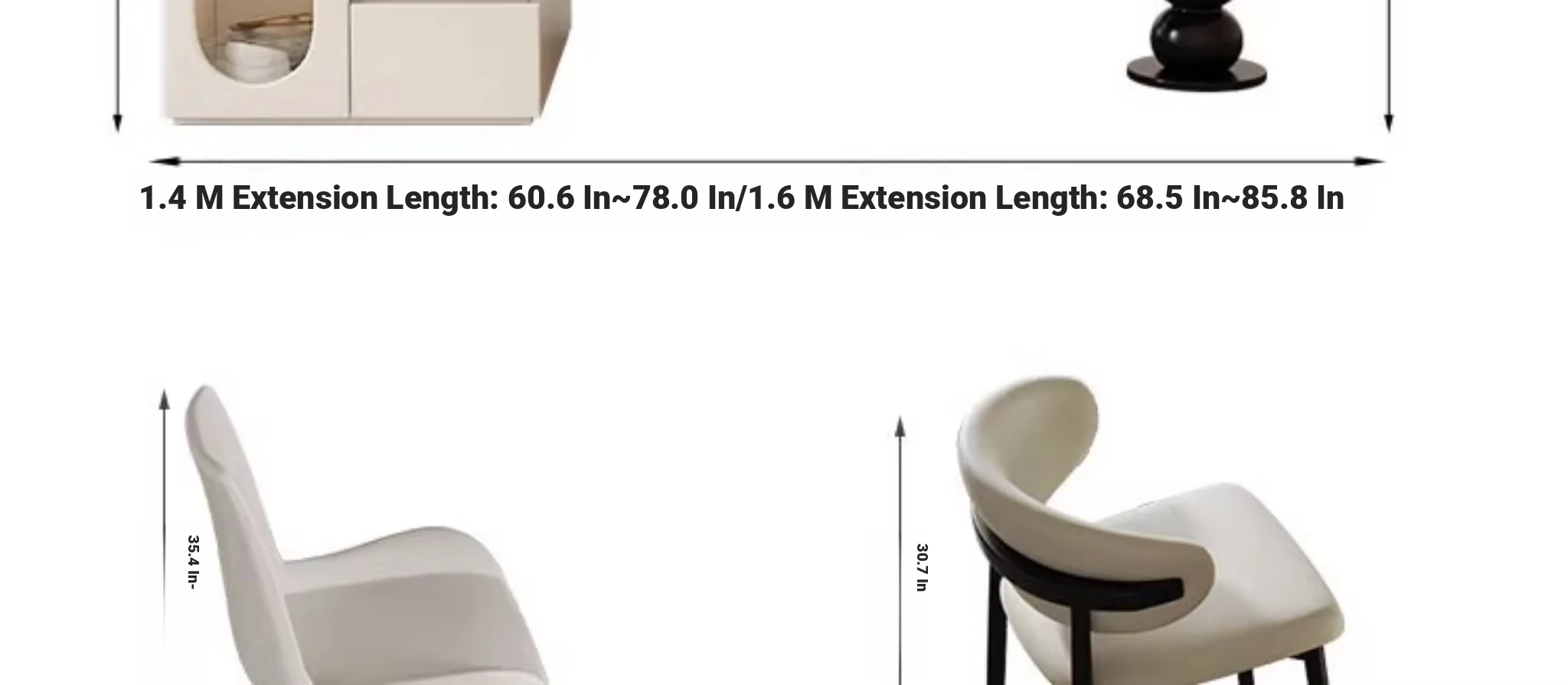 Telescopic dining table [68.50in-85.83in] [track row + double hole teapot] +4 key Chair