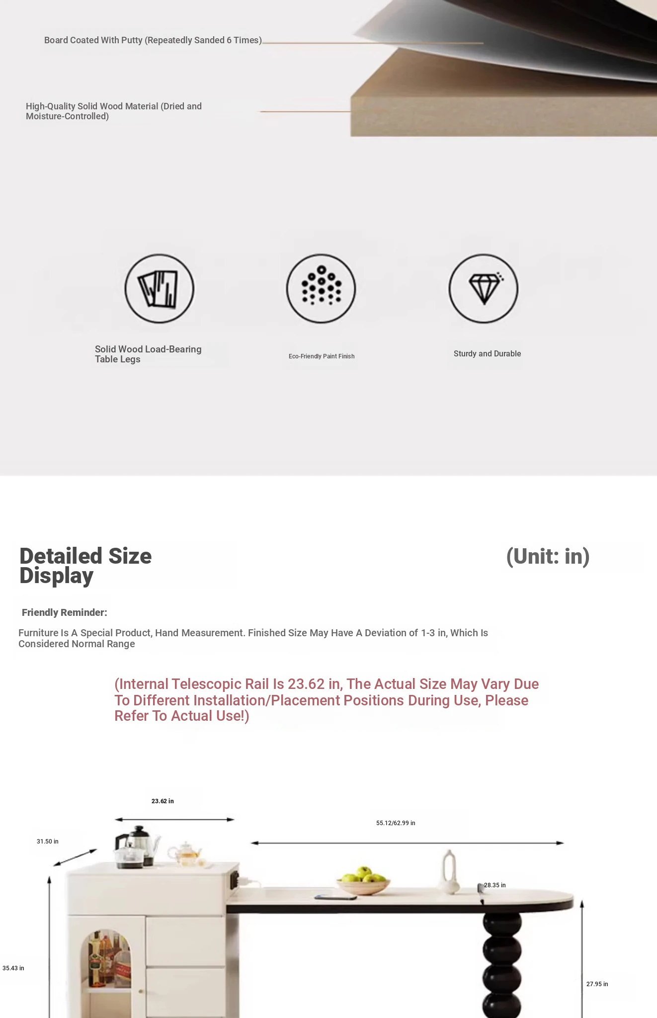 Telescopic table [60.63in-77.95in] [track row + double hole teapot]]