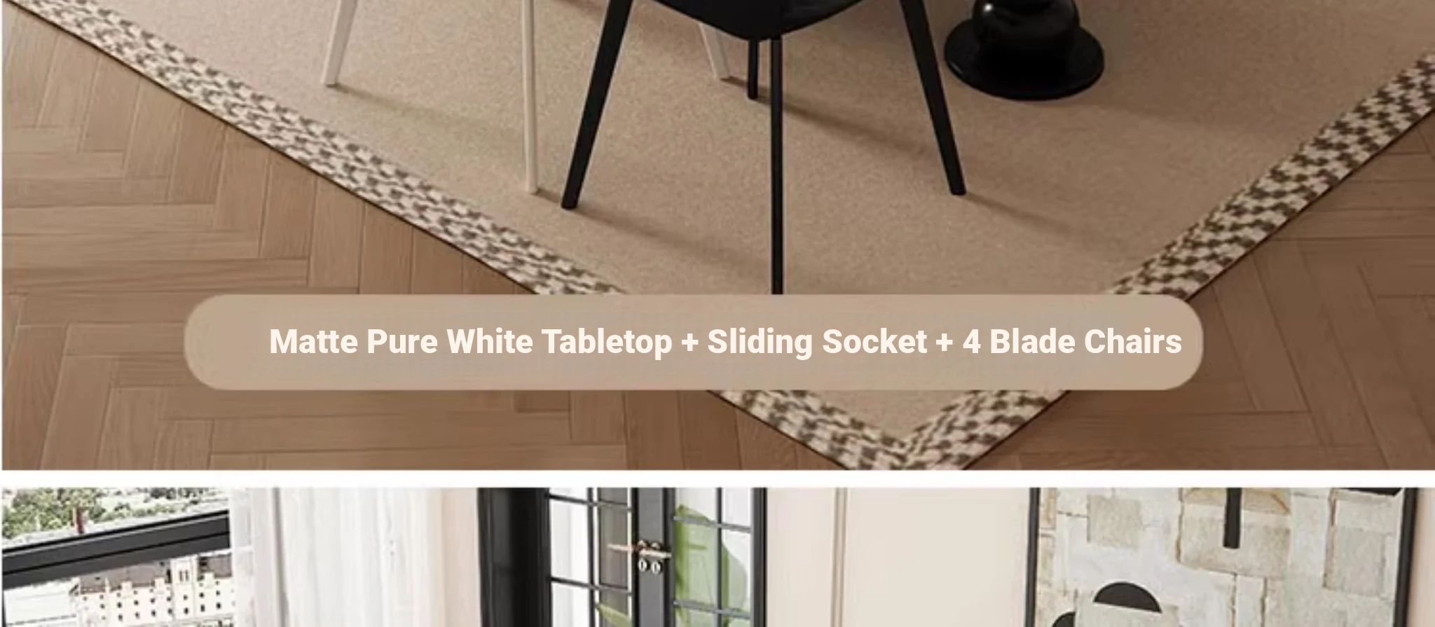 Telescopic dining table [60.63in-77.95in] [track insertion] +4 key Chair