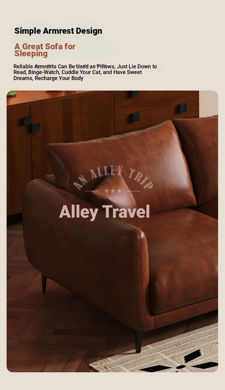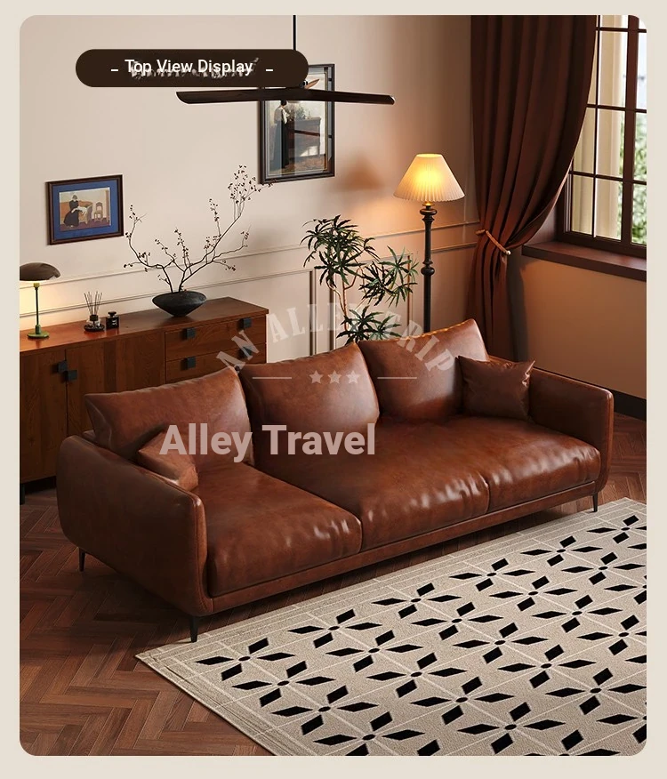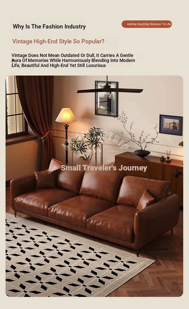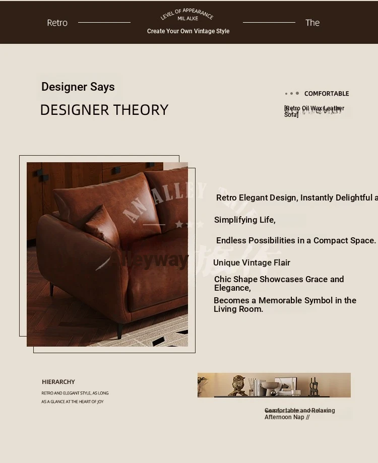 Italian Vintage Style Waxed Leather Sofa - Retro Design for Small Living Rooms, Distressed Brown Finish, Perfect for Cozy Spaces - New Arrival!