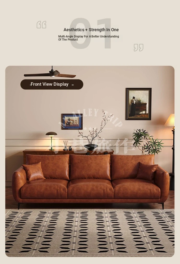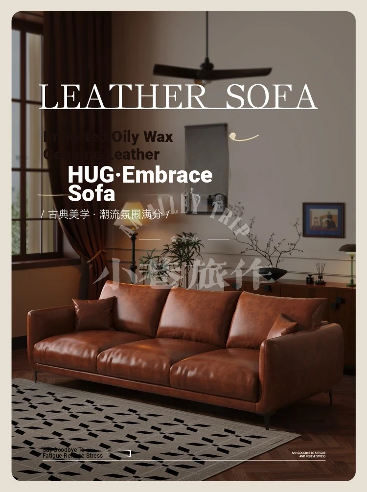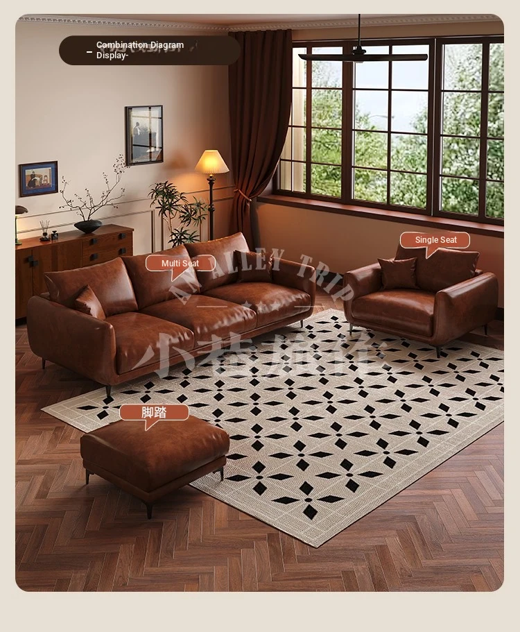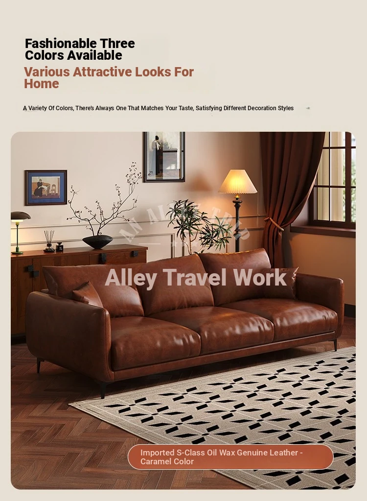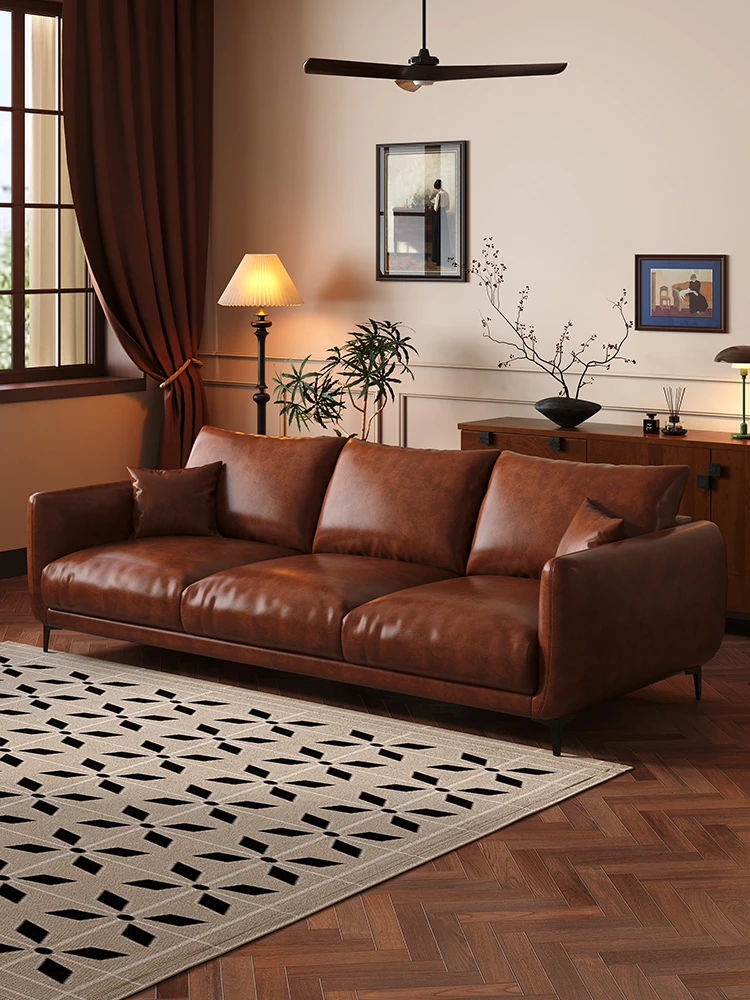 Italian Vintage Style Waxed Leather Sofa - Retro Design for Small Living Rooms, Distressed Brown Finish, Perfect for Cozy Spaces - New Arrival!