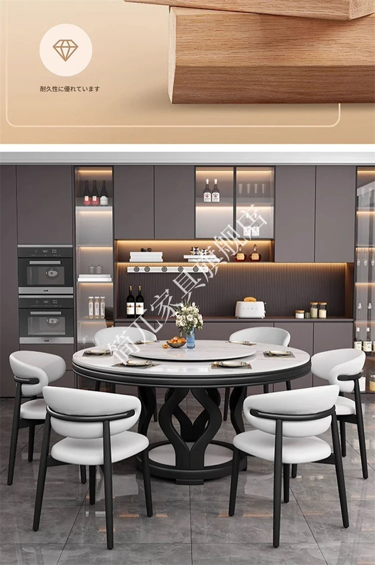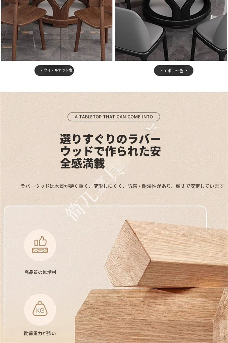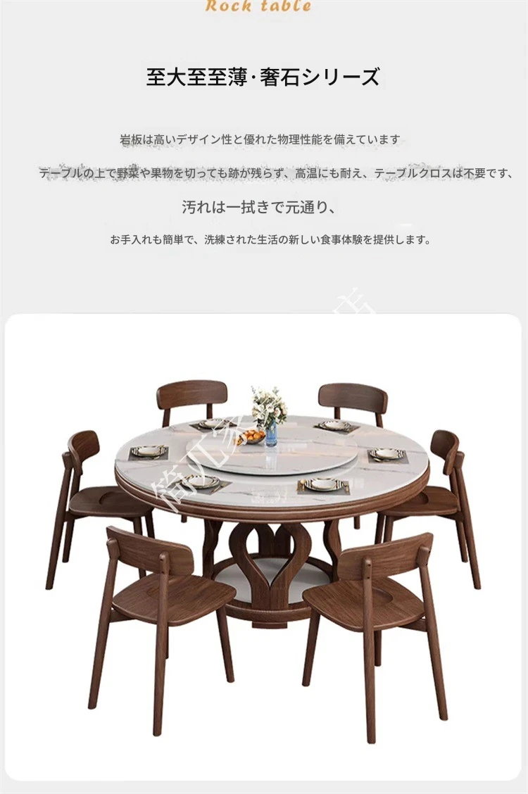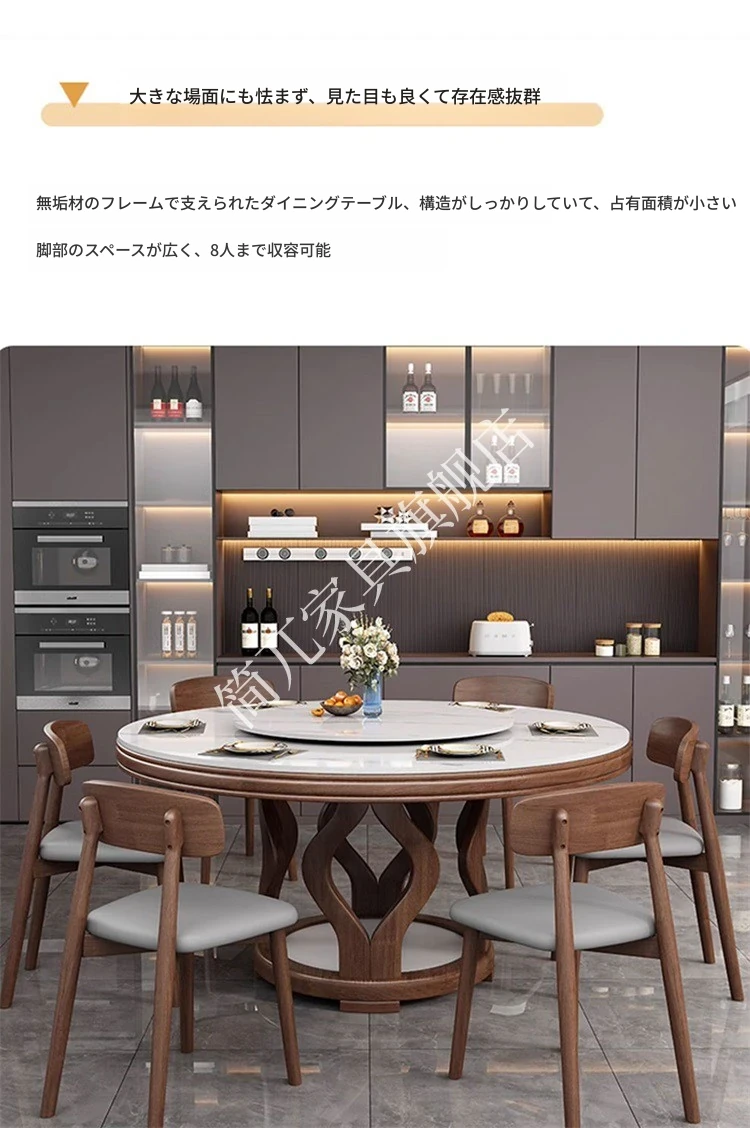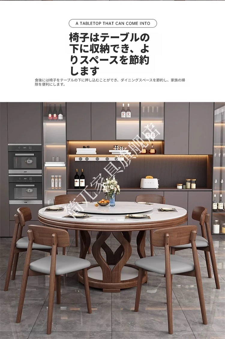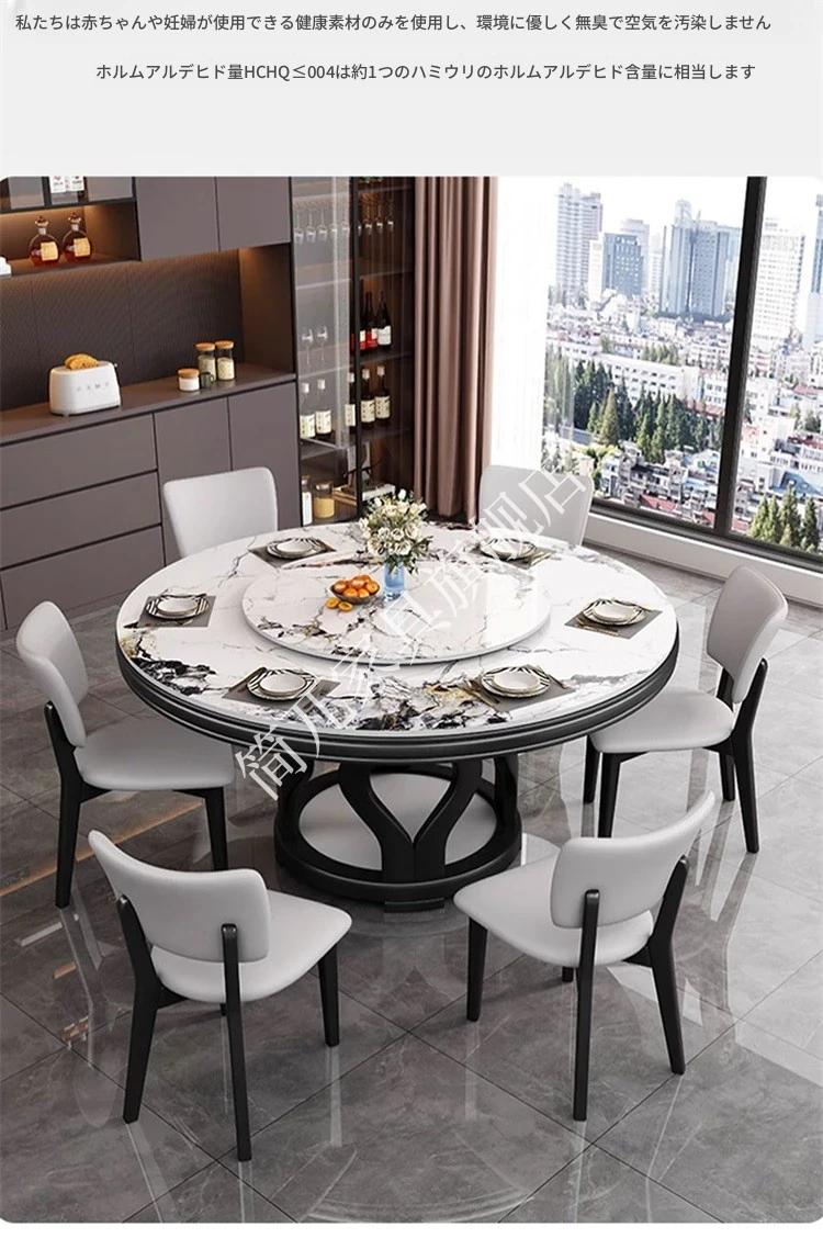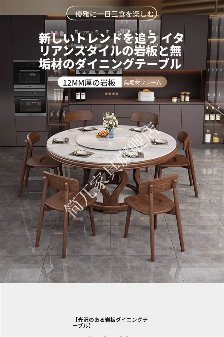 コンパクトな家用岩板ダイニングテーブルセット|モダンでシンプルなデザイン、軽やかなラグジュアリー感が漂うリビングやダイニングにぴったりな円形テーブル。実木製で耐久性も抜群!