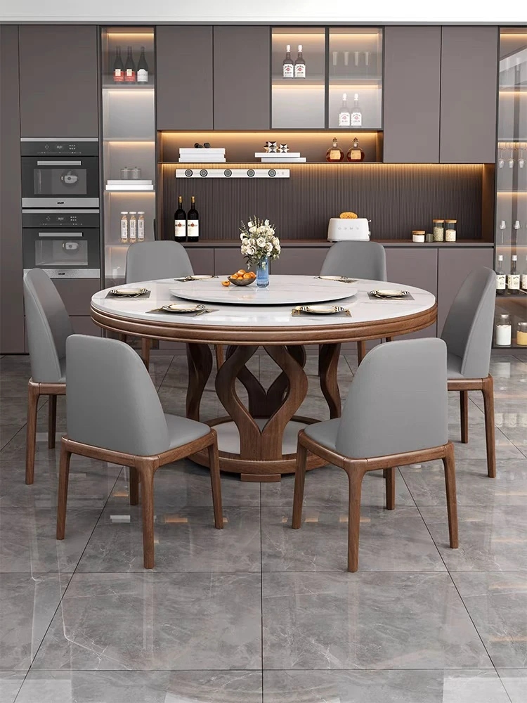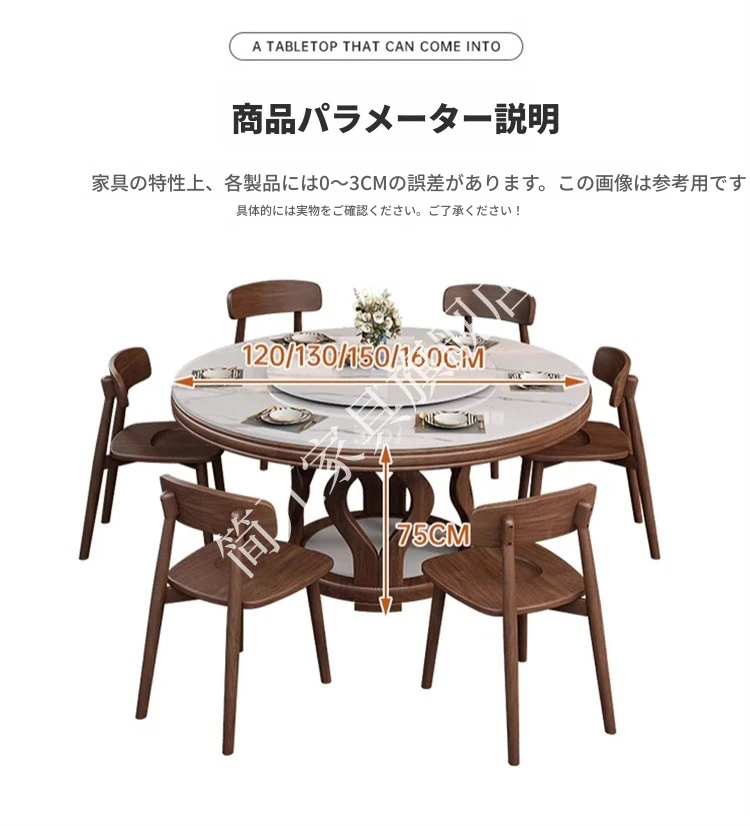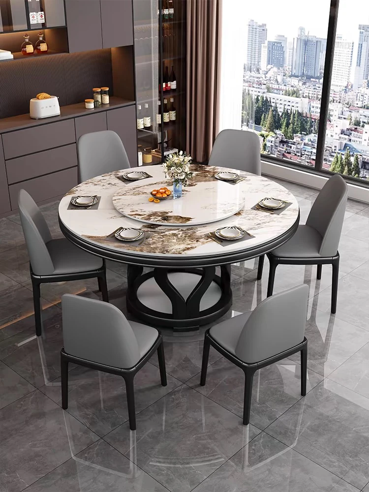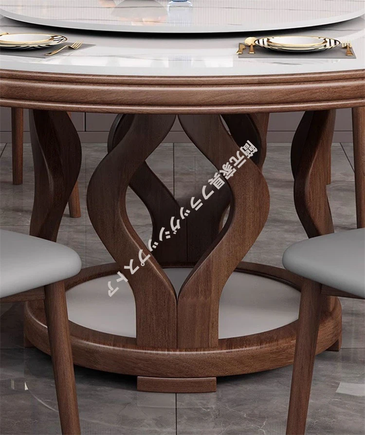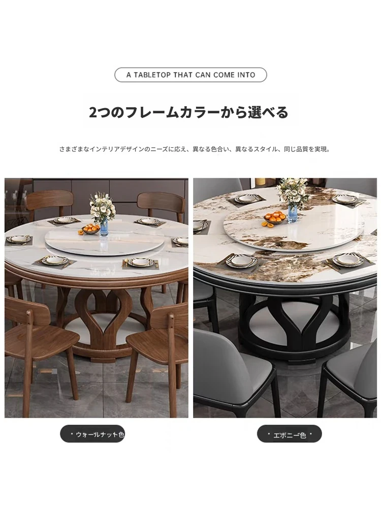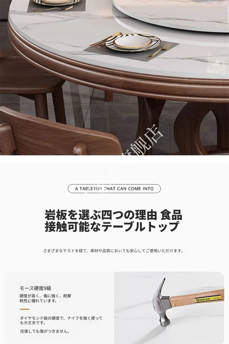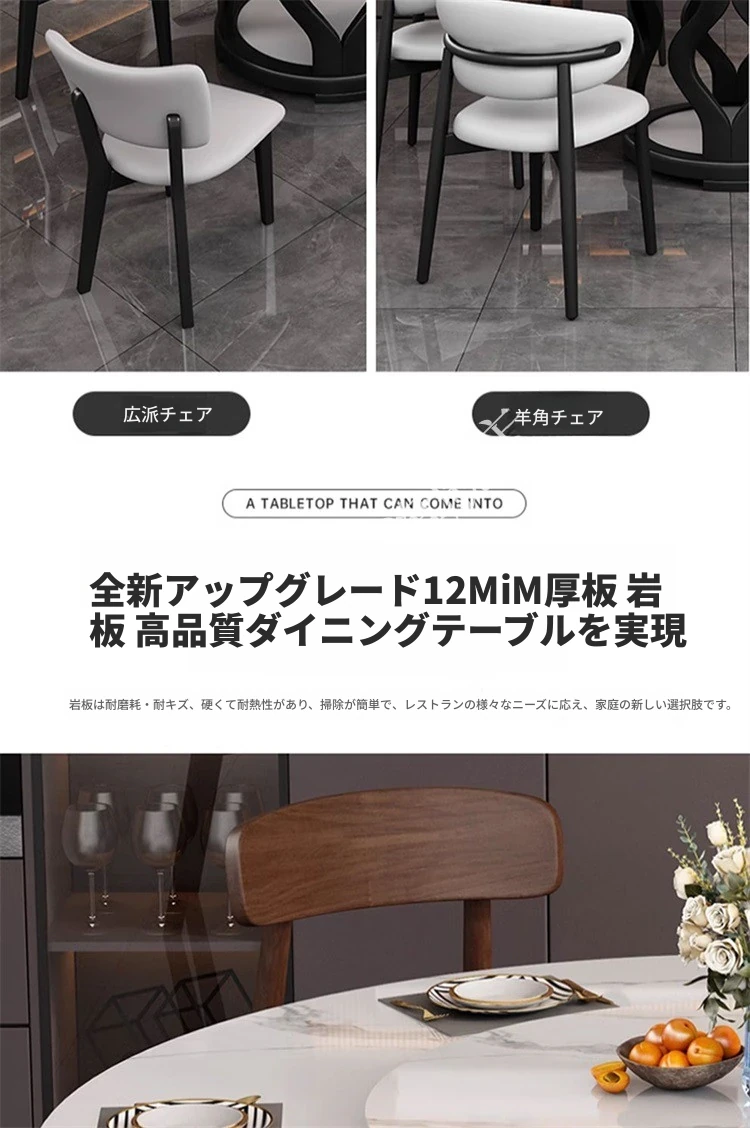 コンパクトな家用岩板ダイニングテーブルセット|モダンでシンプルなデザイン、軽やかなラグジュアリー感が漂うリビングやダイニングにぴったりな円形テーブル。実木製で耐久性も抜群!