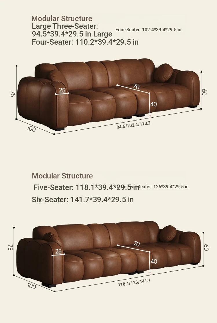 Quadruple 102.36 in-Upgraded Latex Sandwich Cushion(Italy S grade oil wax leather])