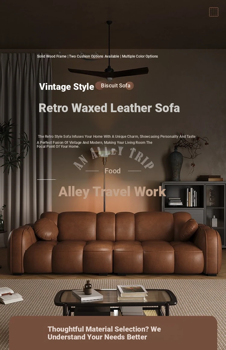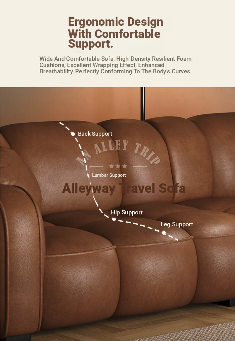 Nostalgic Vintage Brown Sofa - Retro Oil Wax Leather Biscuit Couch for Small Spaces, Perfect for Cozy Nooks - 2025 New Arrival