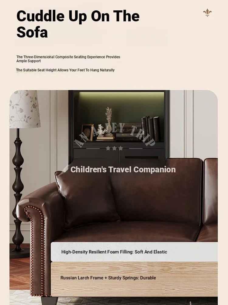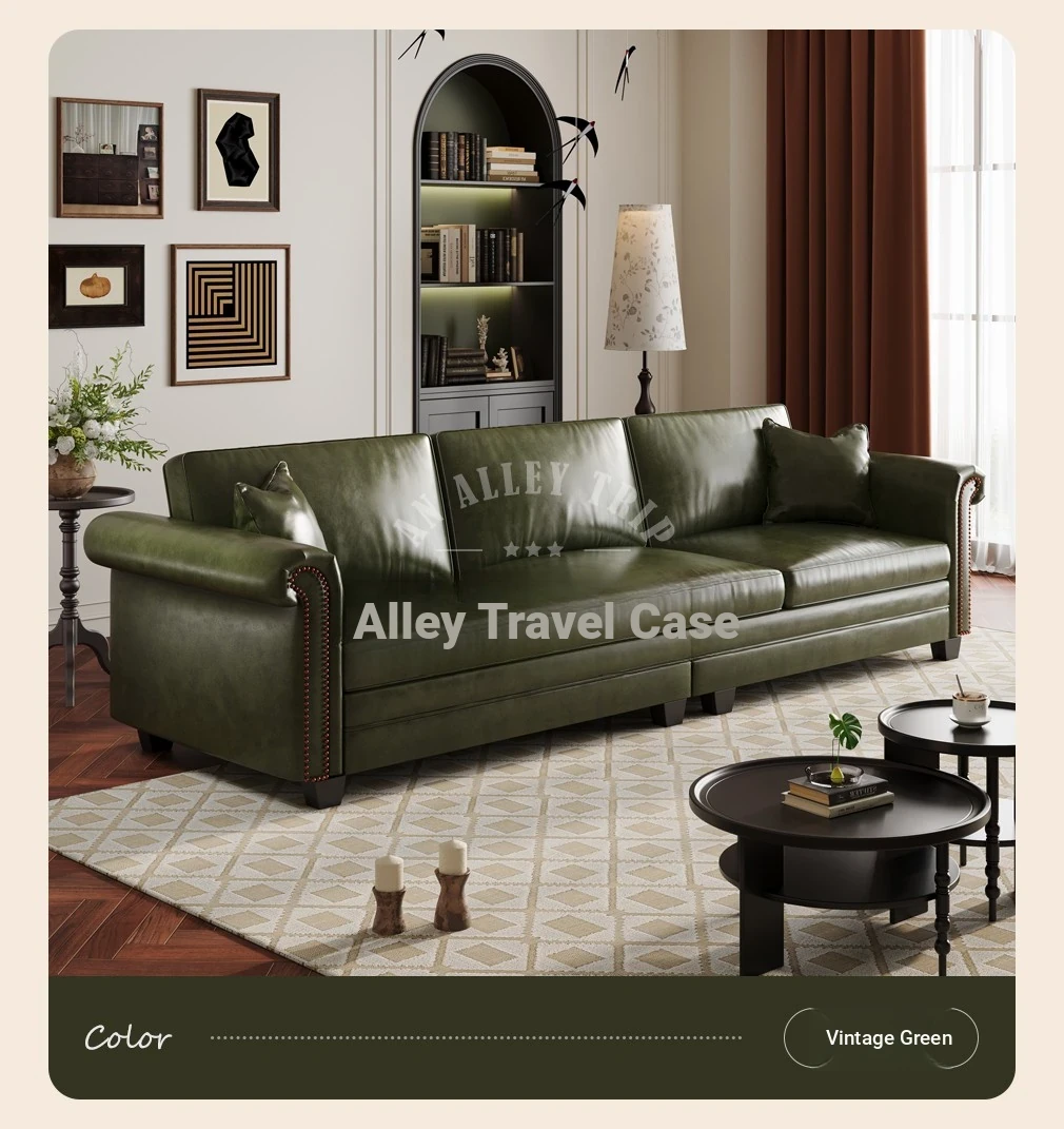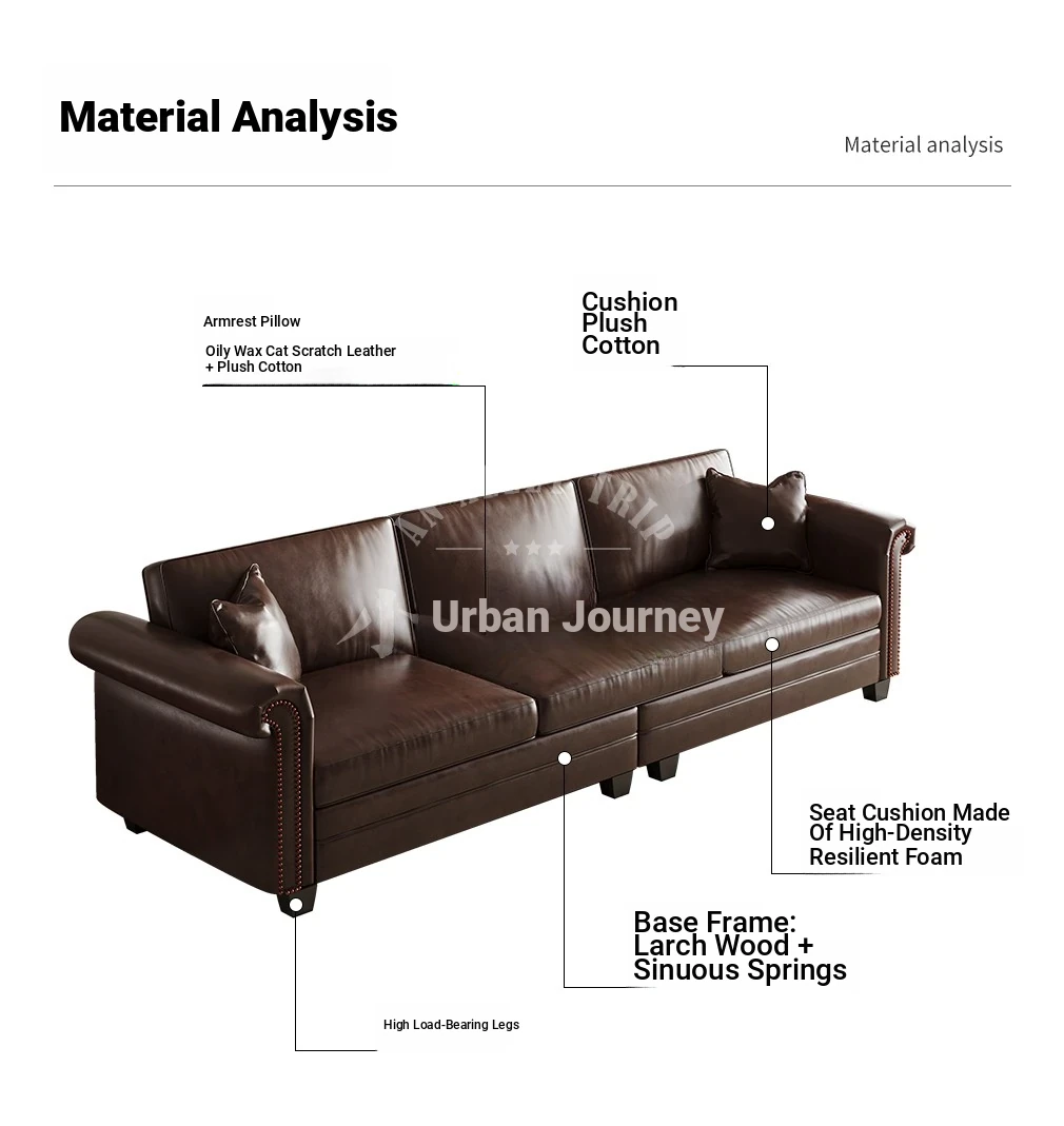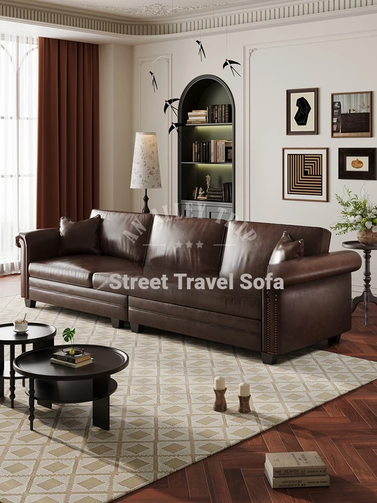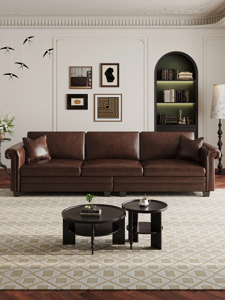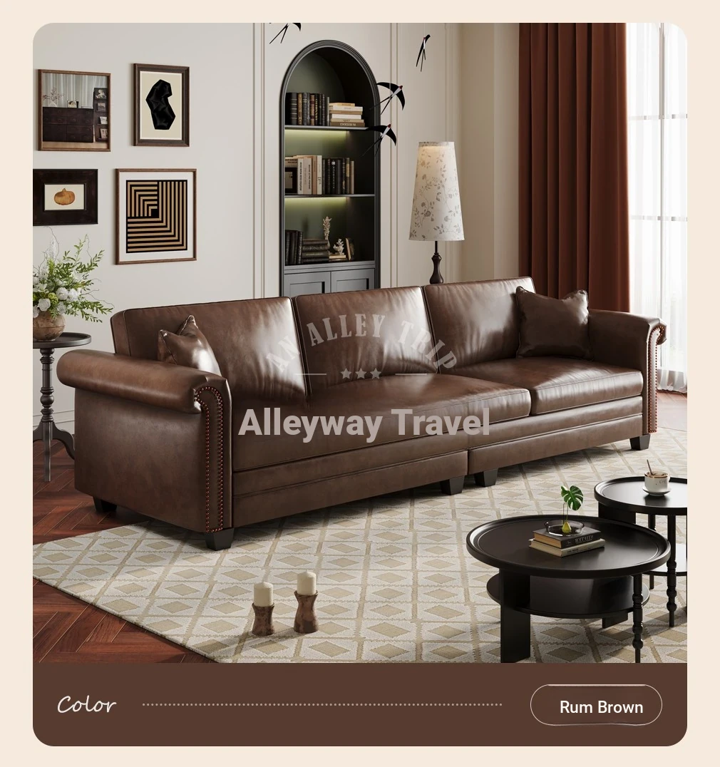 Vintage American Retro Waxed Leather Barton Sofa for Small Living Rooms - Mid-Century Style Brown Straight Sofa Perfect for Cozy Spaces
