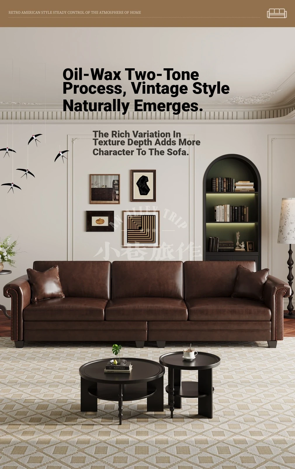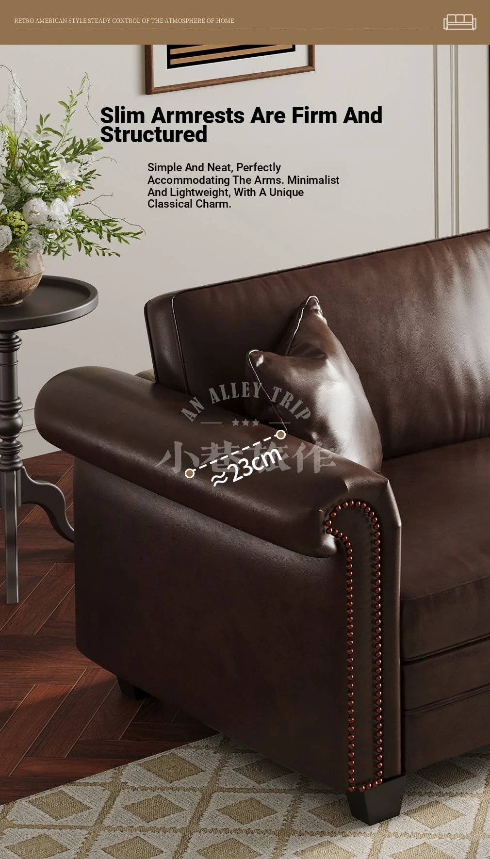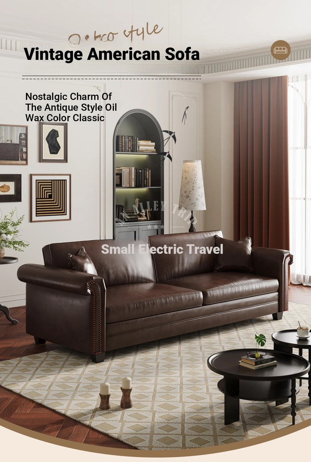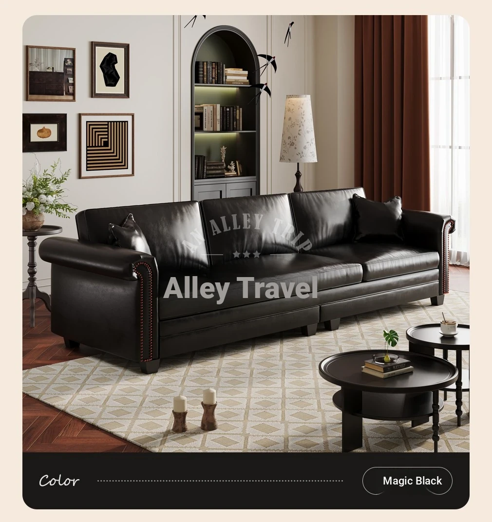 Vintage American Retro Waxed Leather Barton Sofa for Small Living Rooms - Mid-Century Style Brown Straight Sofa Perfect for Cozy Spaces