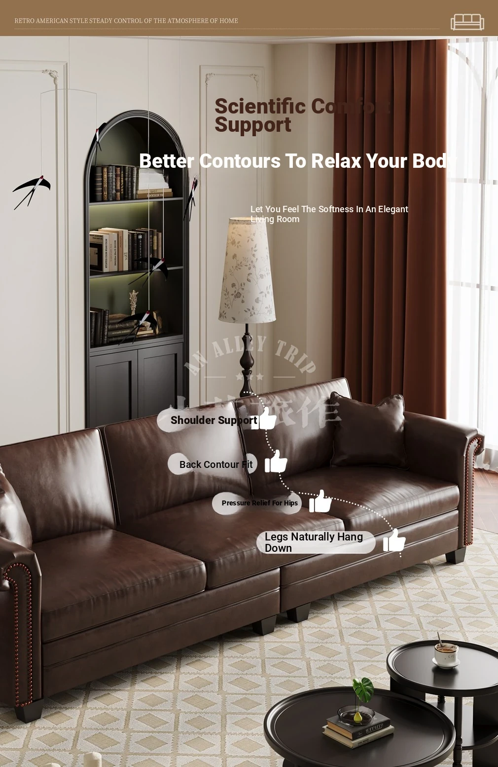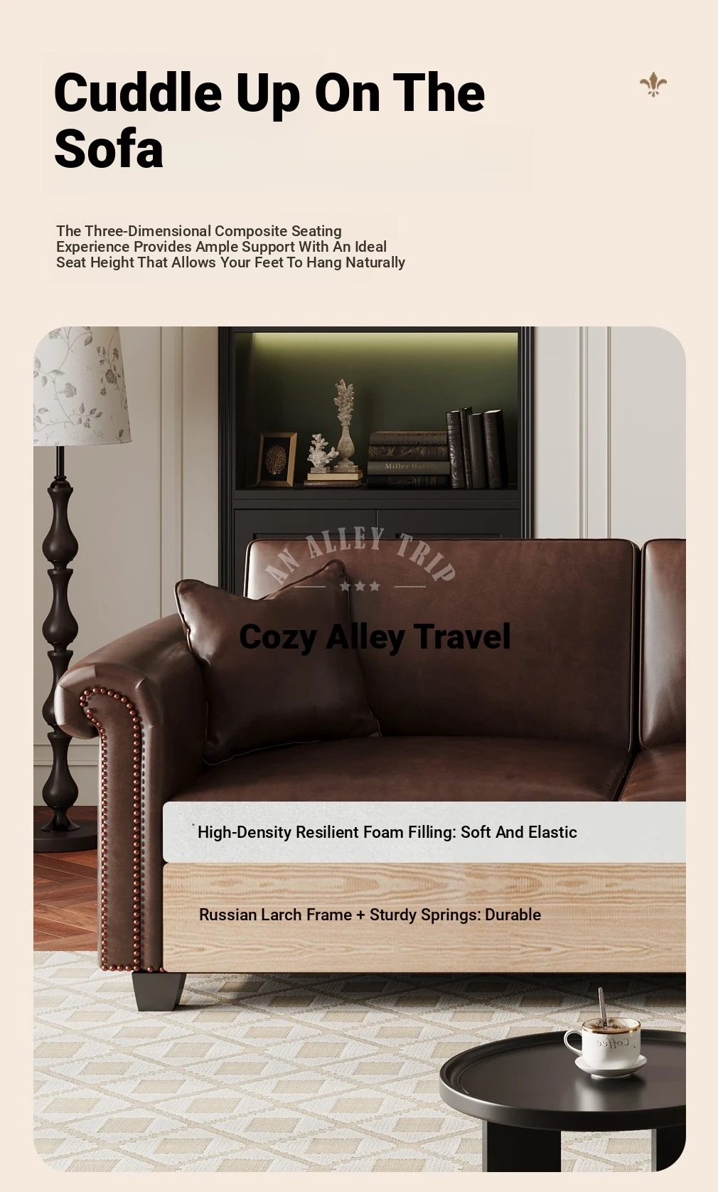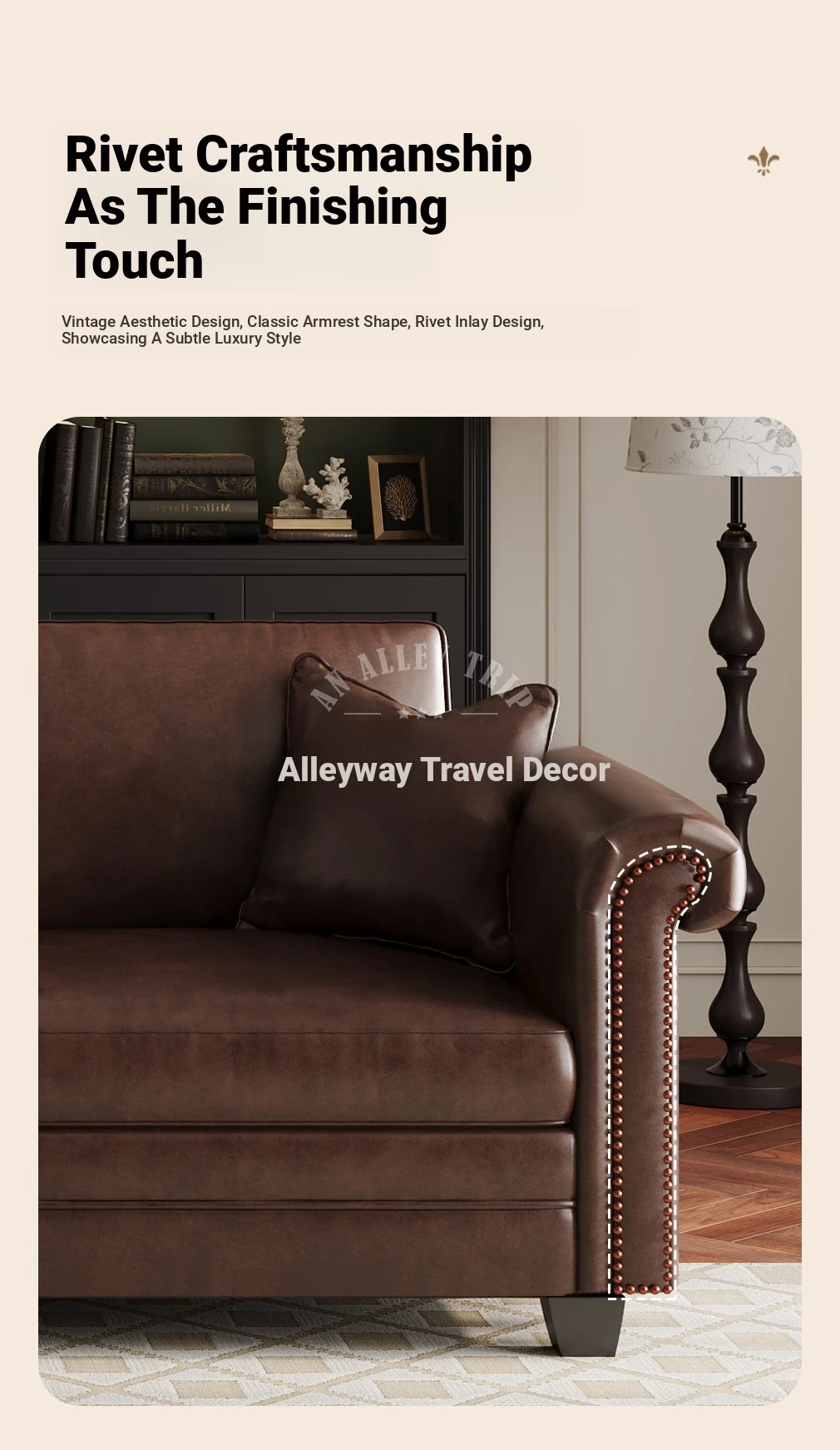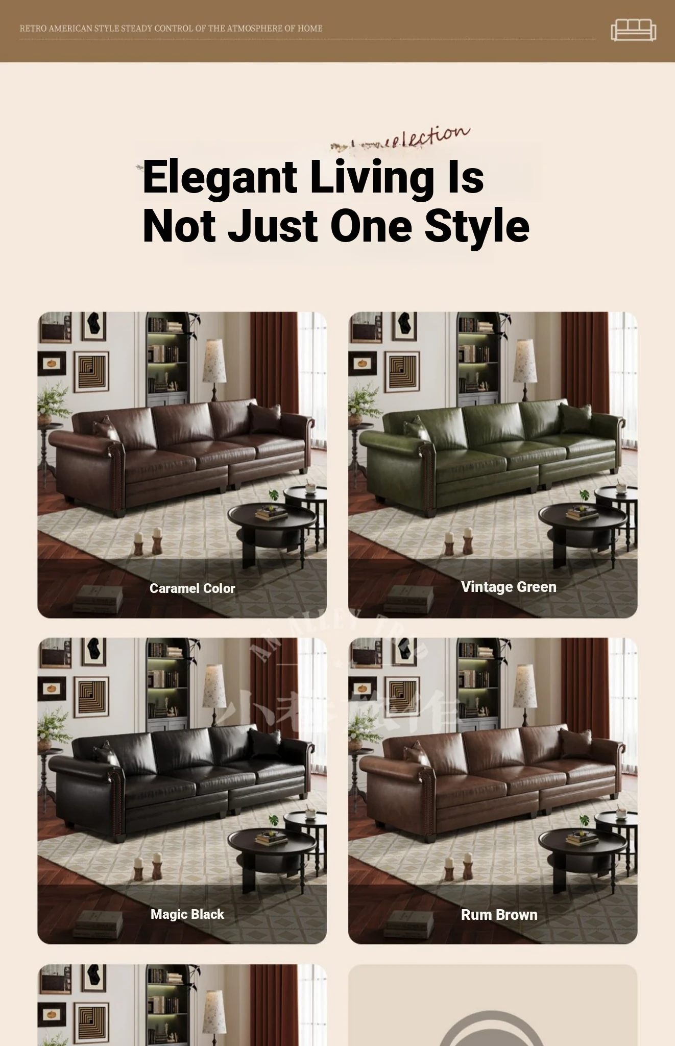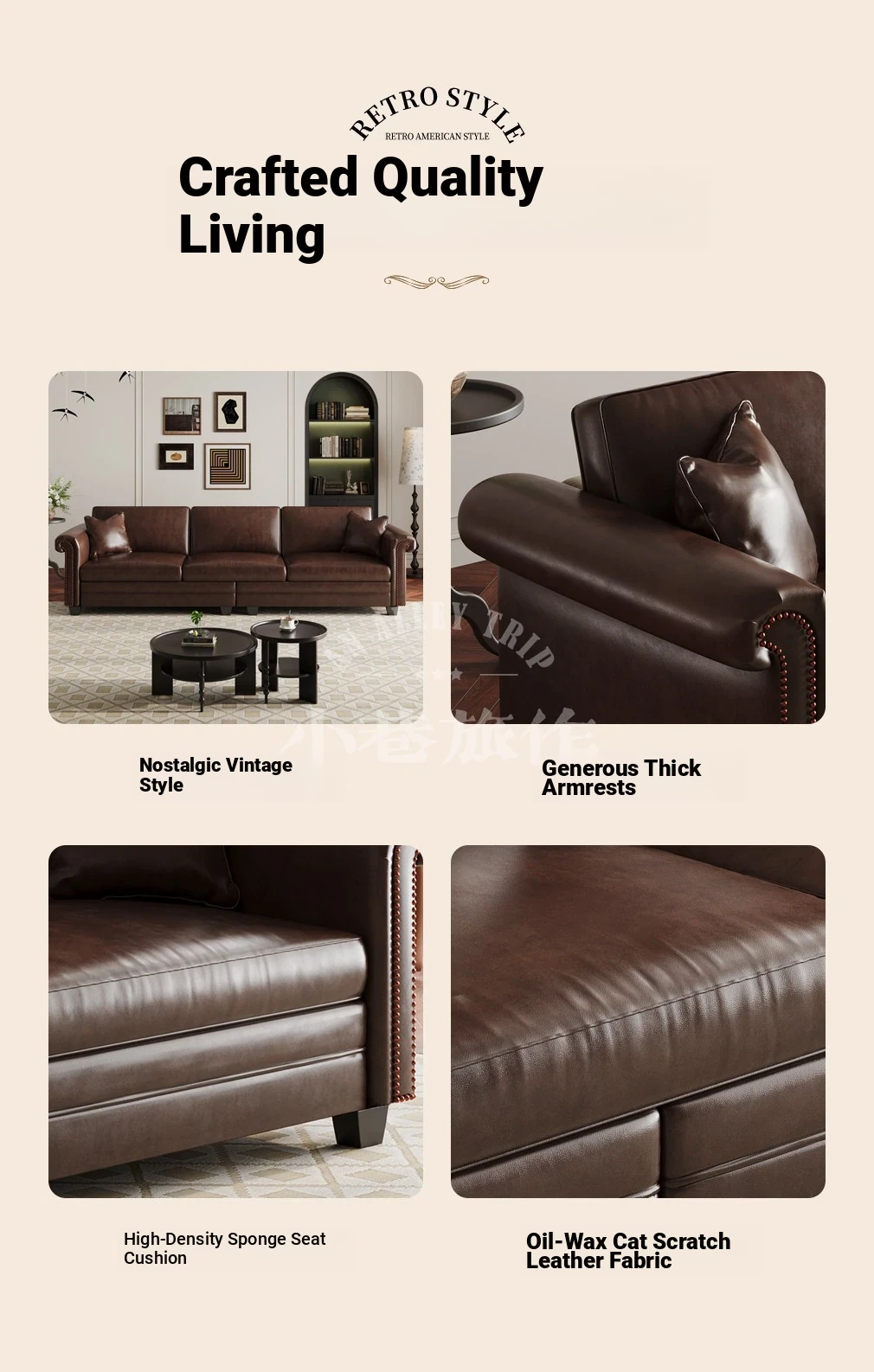 Vintage American Retro Waxed Leather Barton Sofa for Small Living Rooms - Mid-Century Style Brown Straight Sofa Perfect for Cozy Spaces