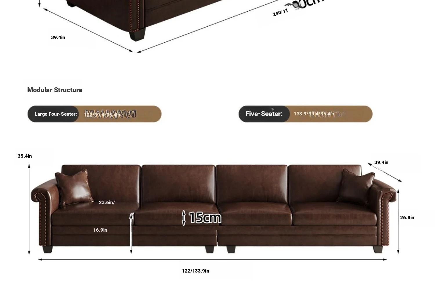 Five-person position 133.86 ins [high rebound sponge + larch base]]