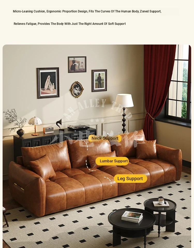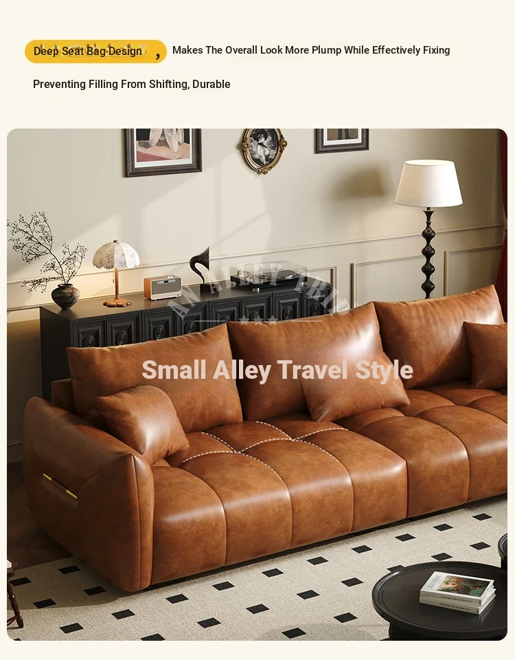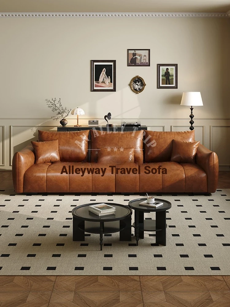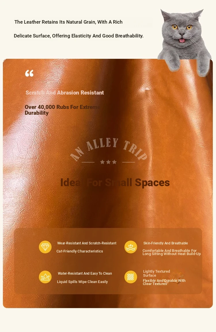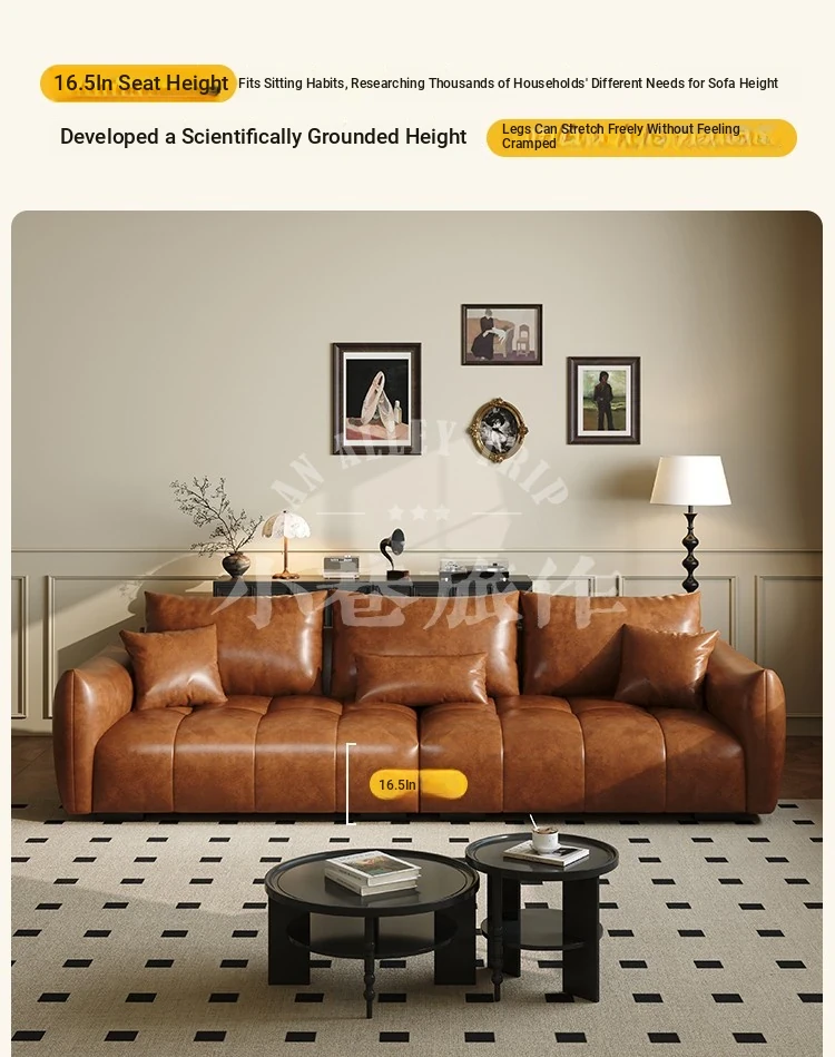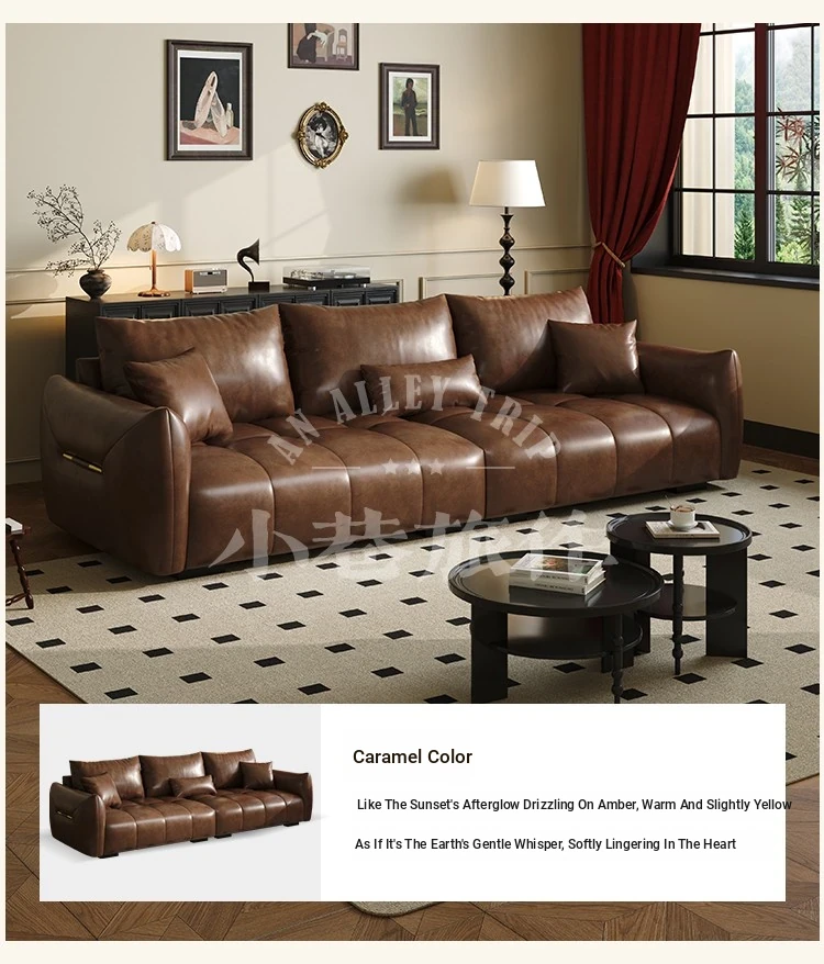 Vintage Chic Cat Paw Leather Sofa - French Style Caramel Sofa for Small Living Rooms - Luxurious and Retro Design Perfect for Cozy Spaces