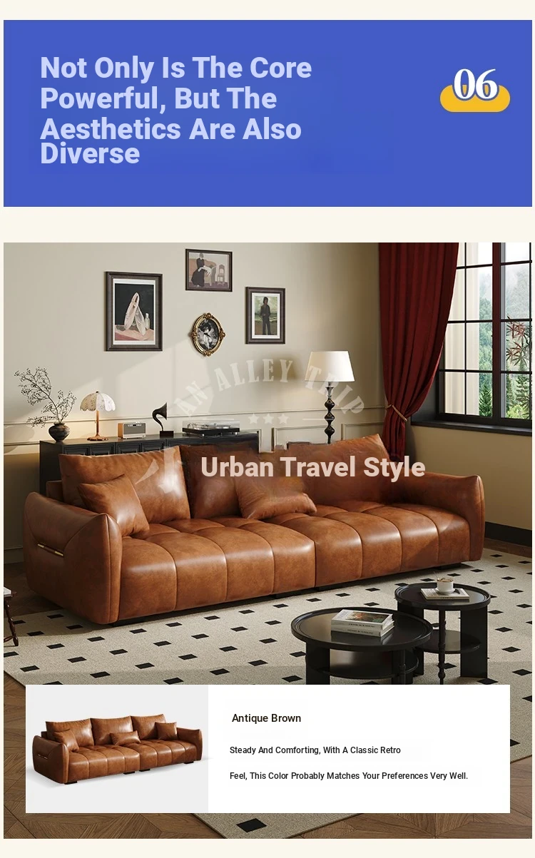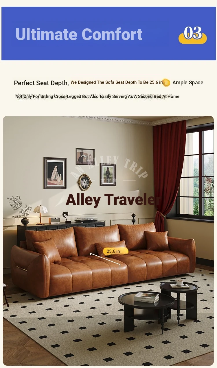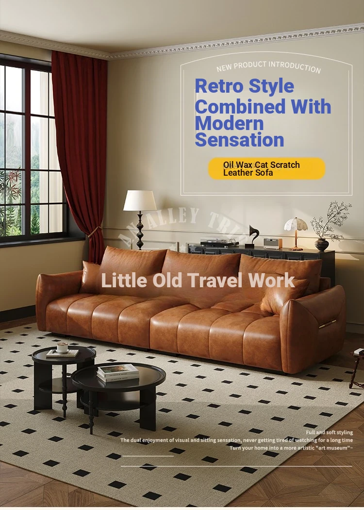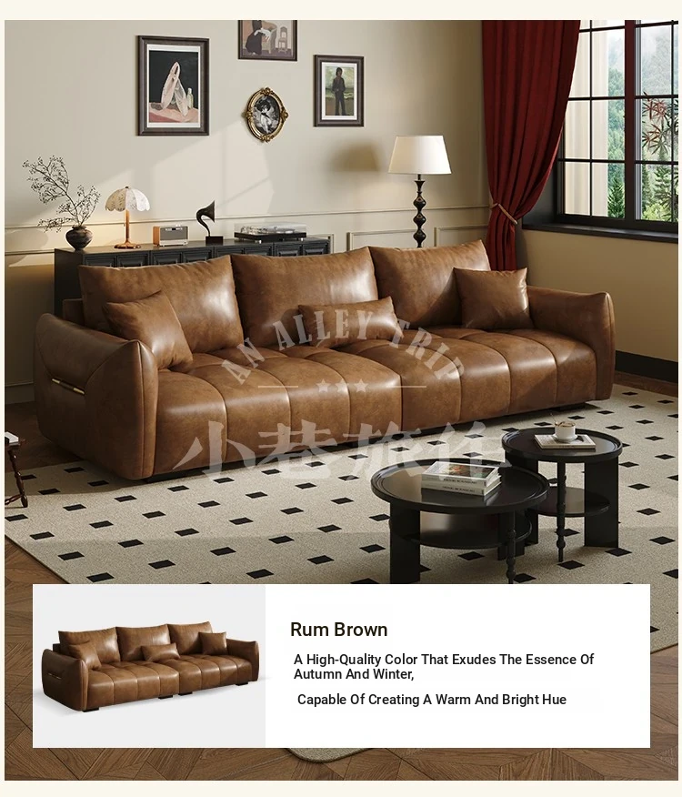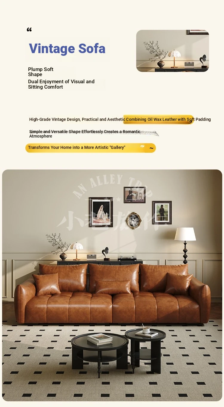 Vintage Chic Cat Paw Leather Sofa - French Style Caramel Sofa for Small Living Rooms - Luxurious and Retro Design Perfect for Cozy Spaces