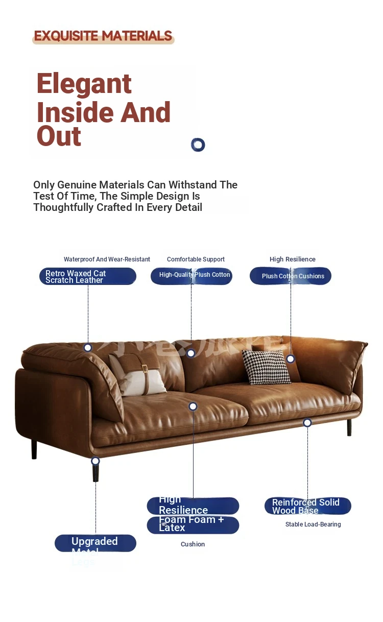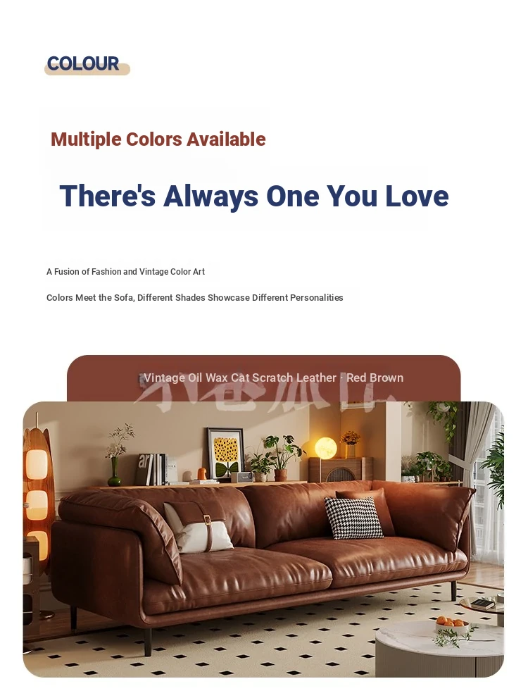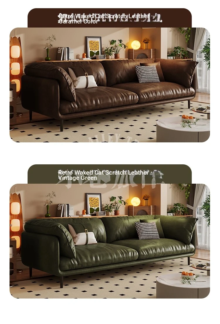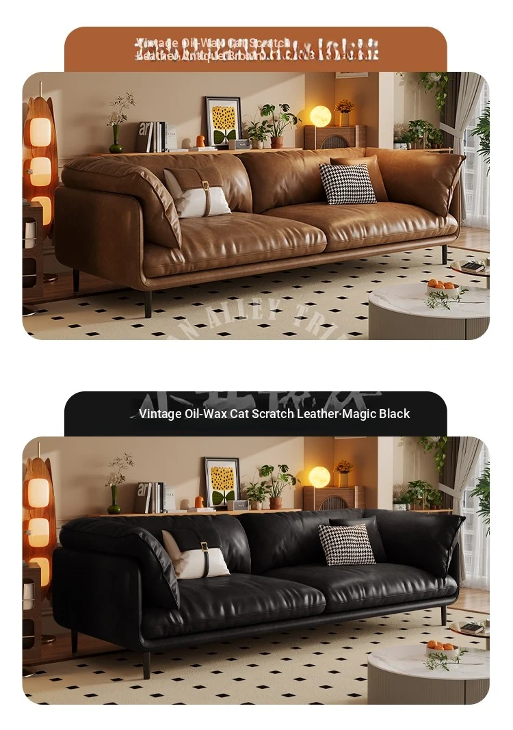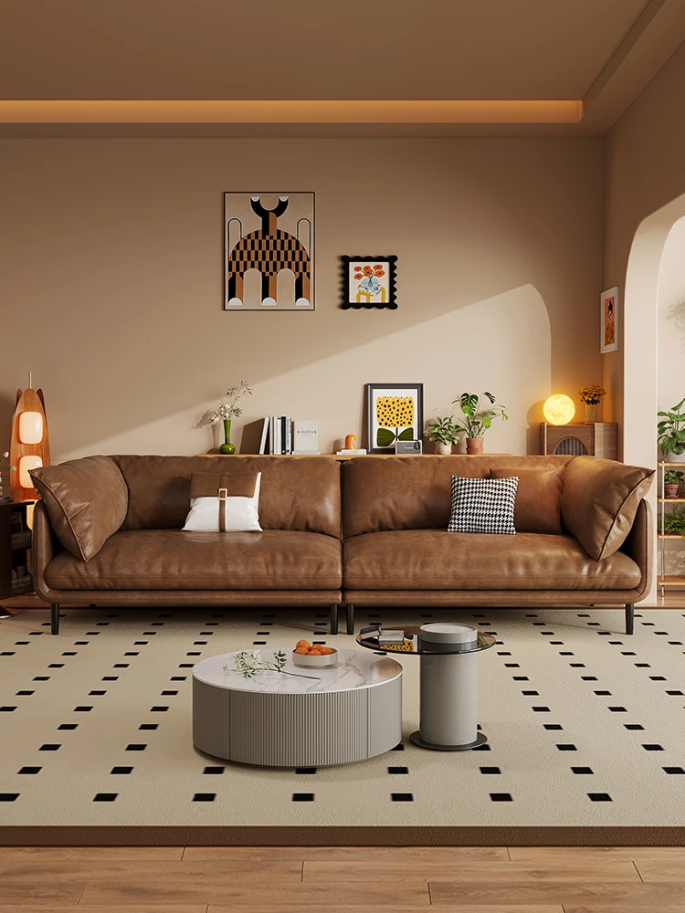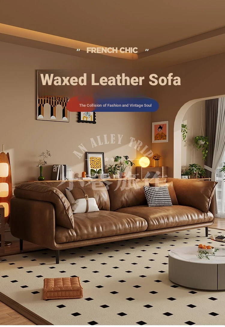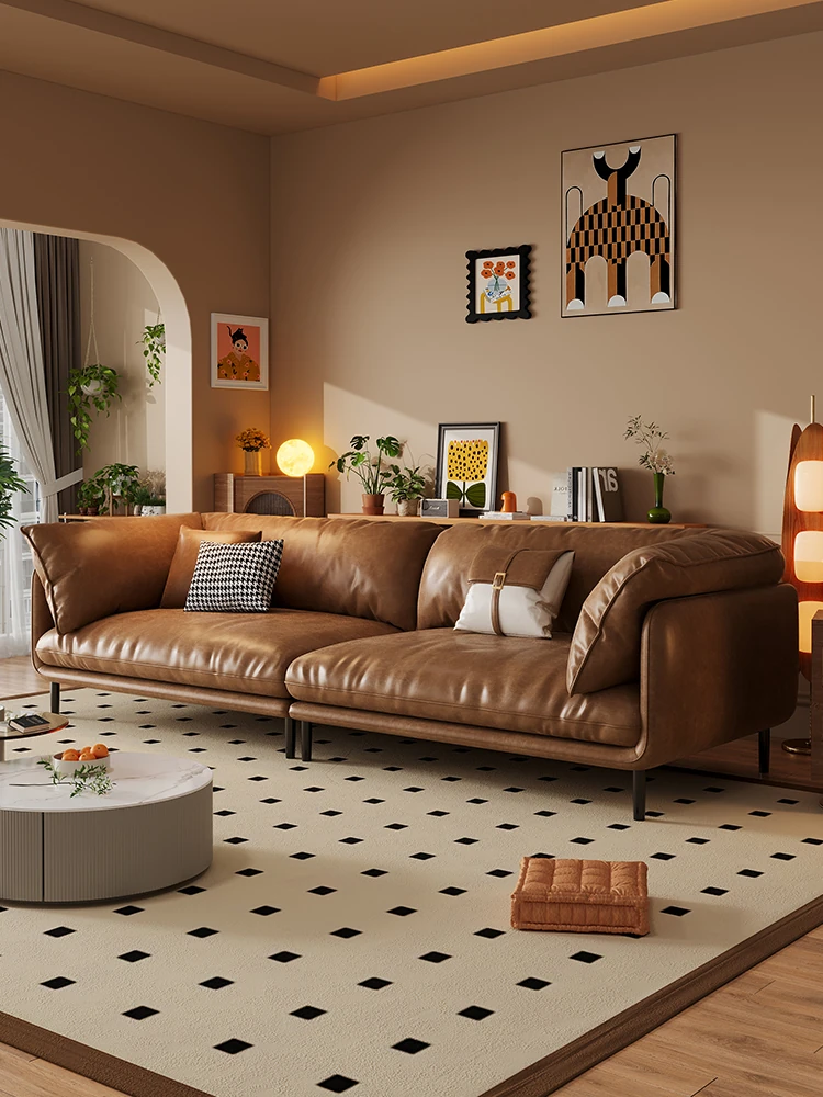 レトロなイタリアンオイルワックスレザーソファ|小型リビングにぴったり!ヴィンテージスタイルのブラウン色で、25新作。おしゃれで居心地の良い空間を演出します。
