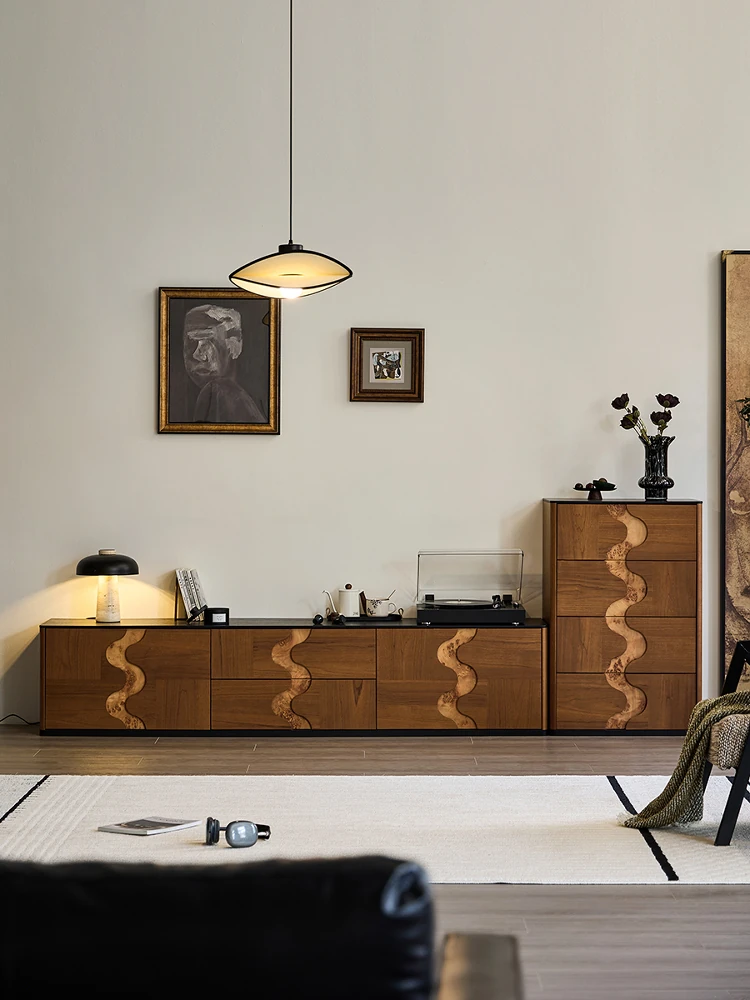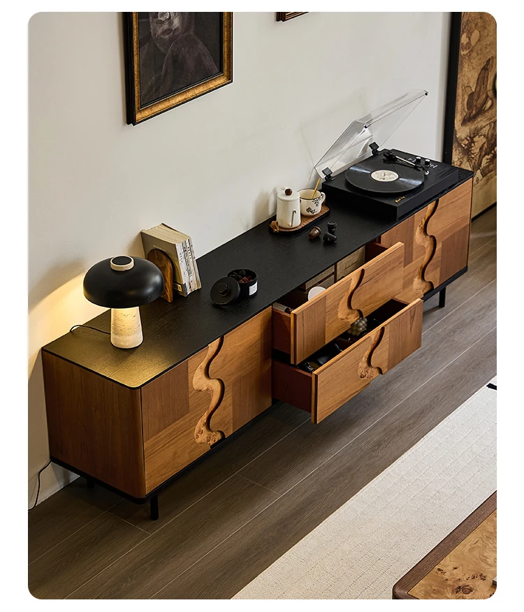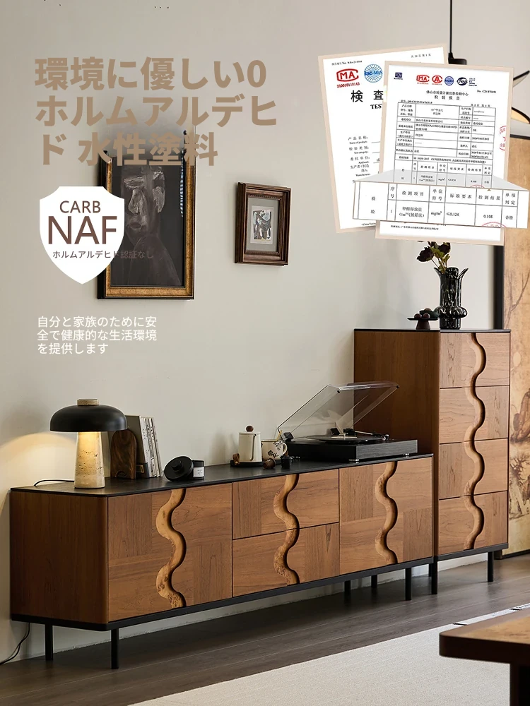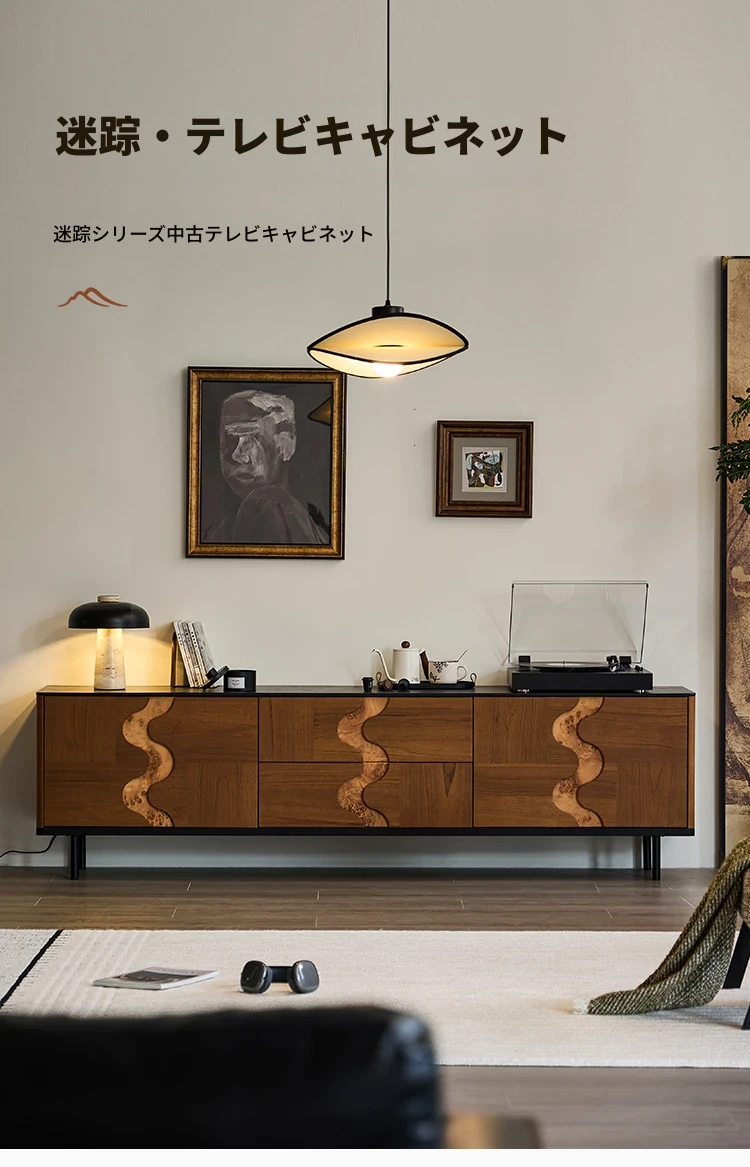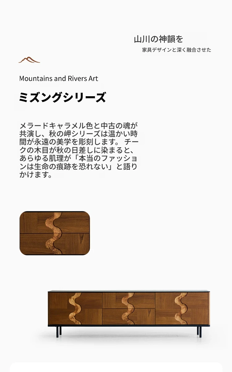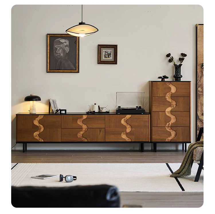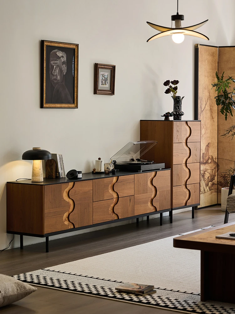 中古の無垢チークテレビキャビネット フランススタイルの高めのデザイン 宋式美学を取り入れた小型リビング向け シネマティックな雰囲気を演出するコンビネーションキャビネット