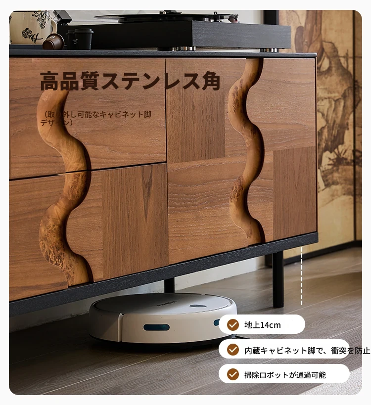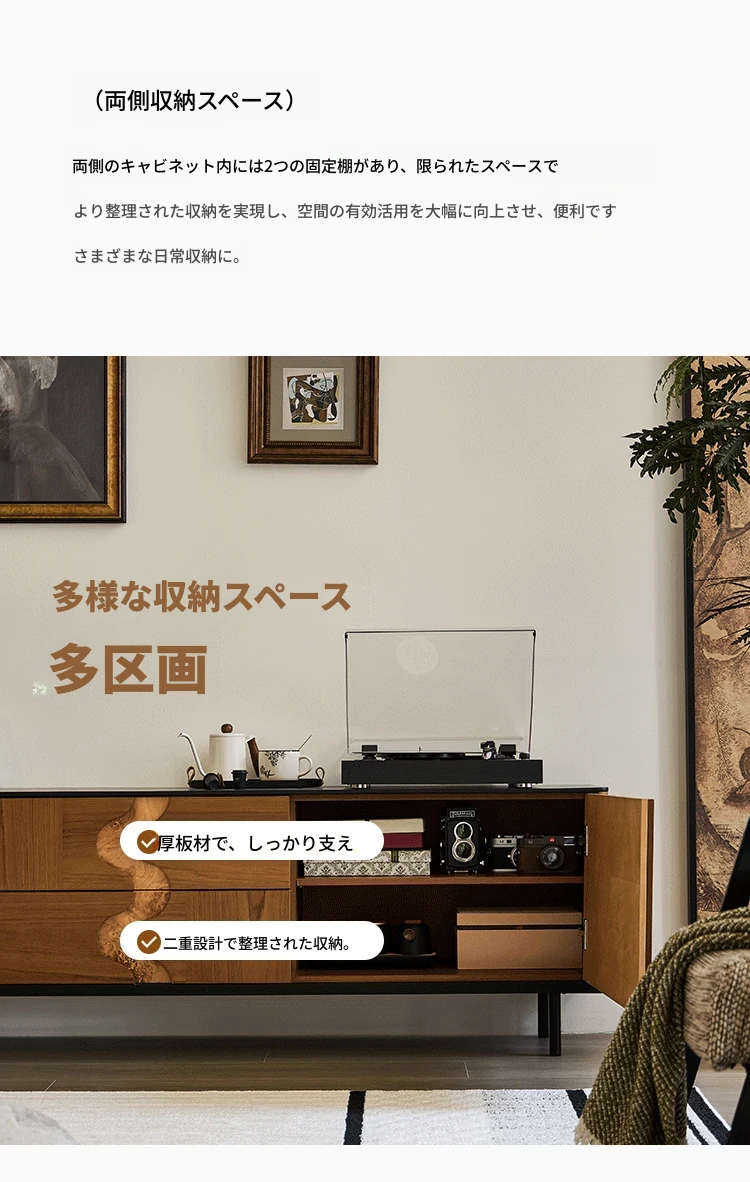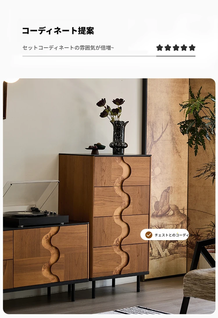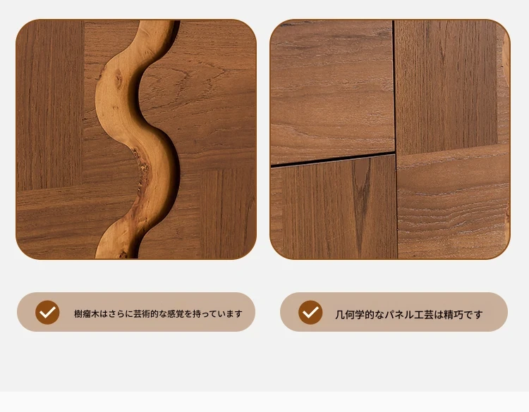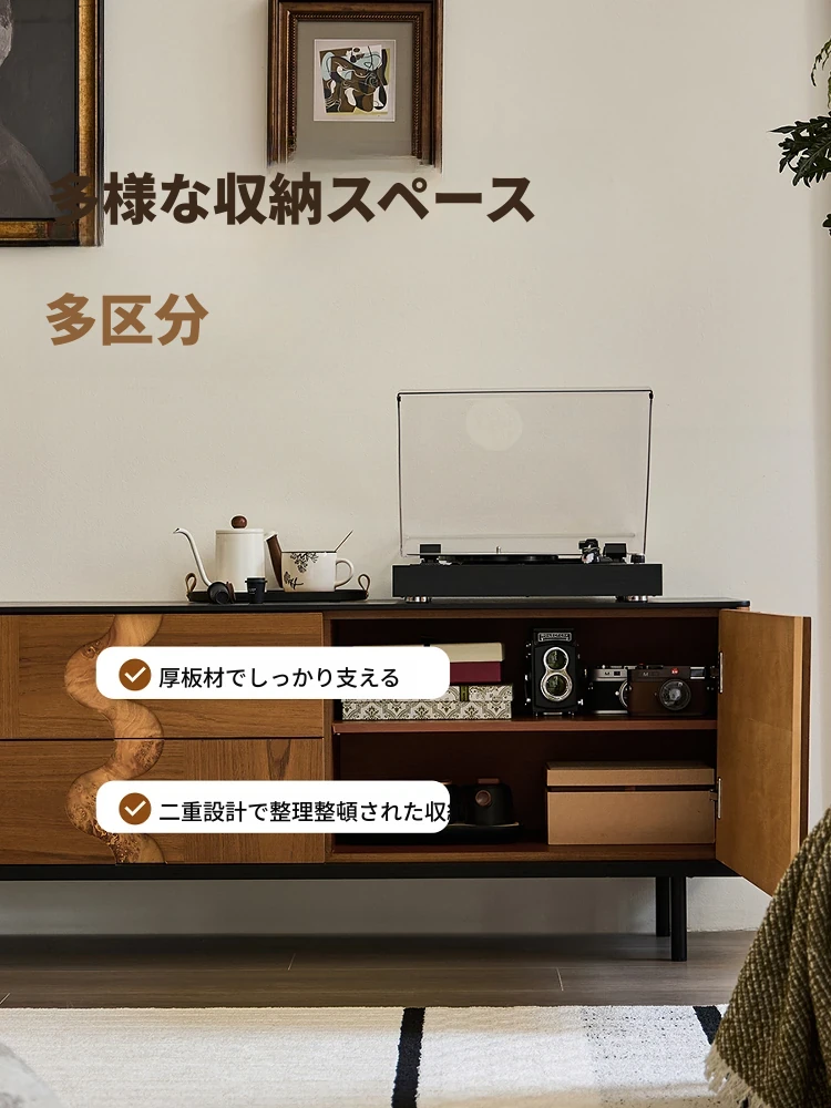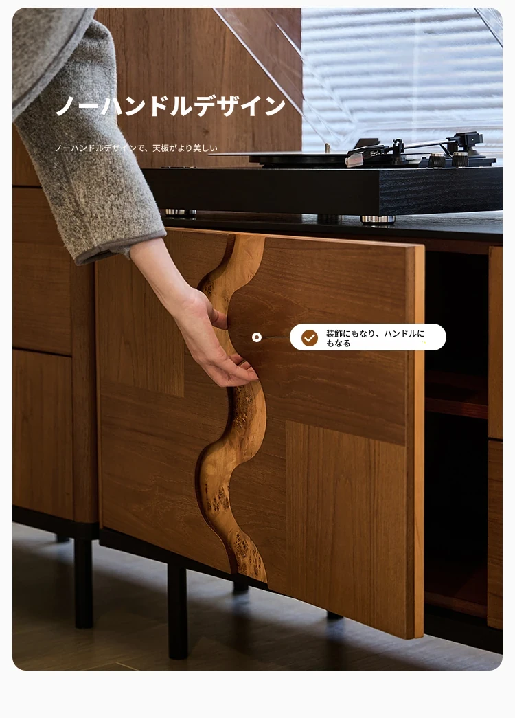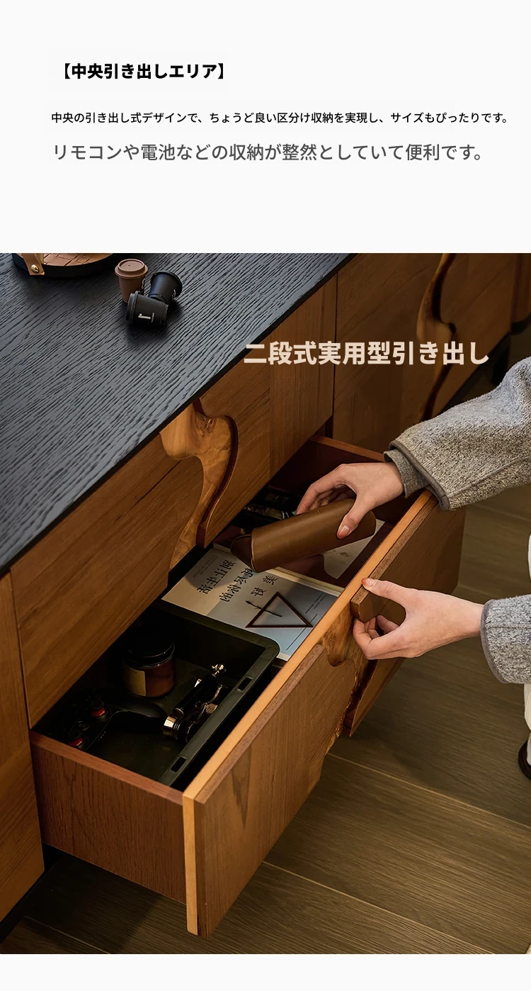 中古の無垢チークテレビキャビネット フランススタイルの高めのデザイン 宋式美学を取り入れた小型リビング向け シネマティックな雰囲気を演出するコンビネーションキャビネット