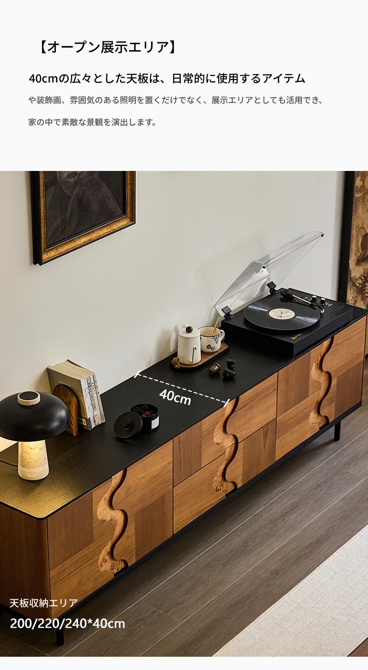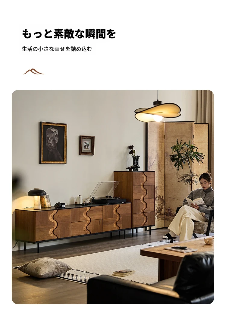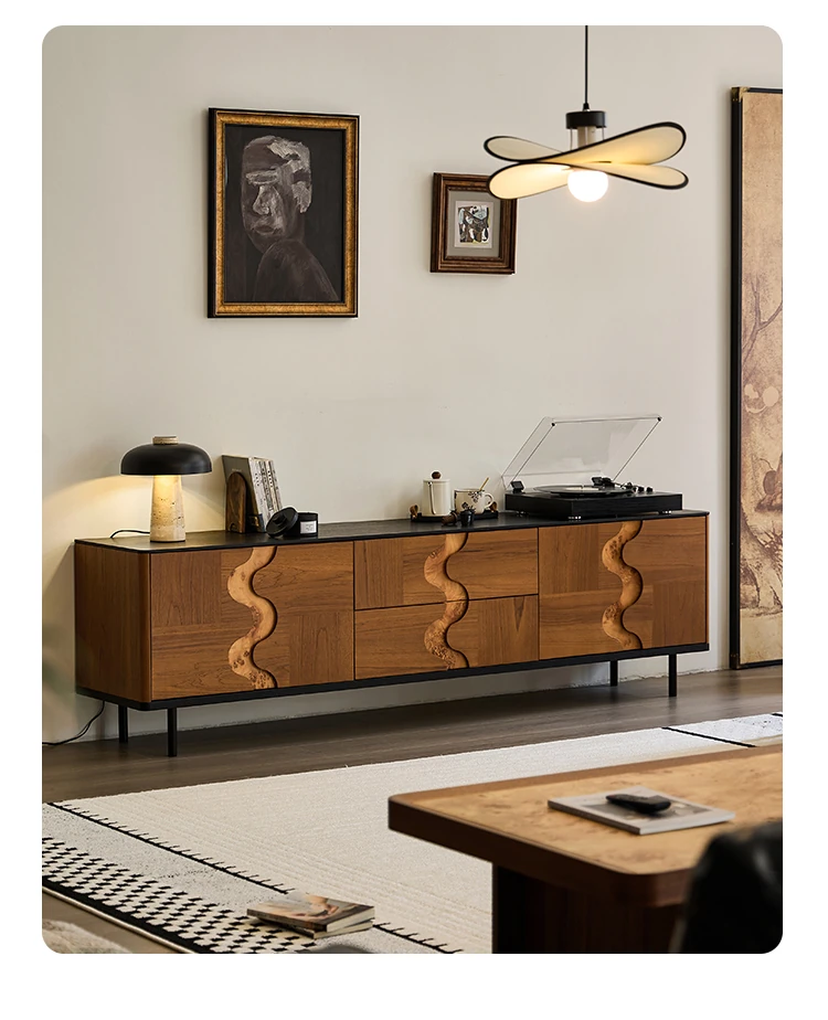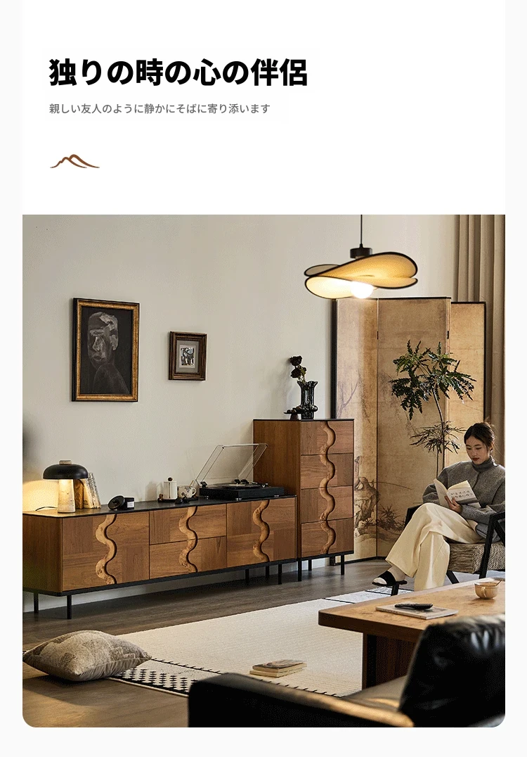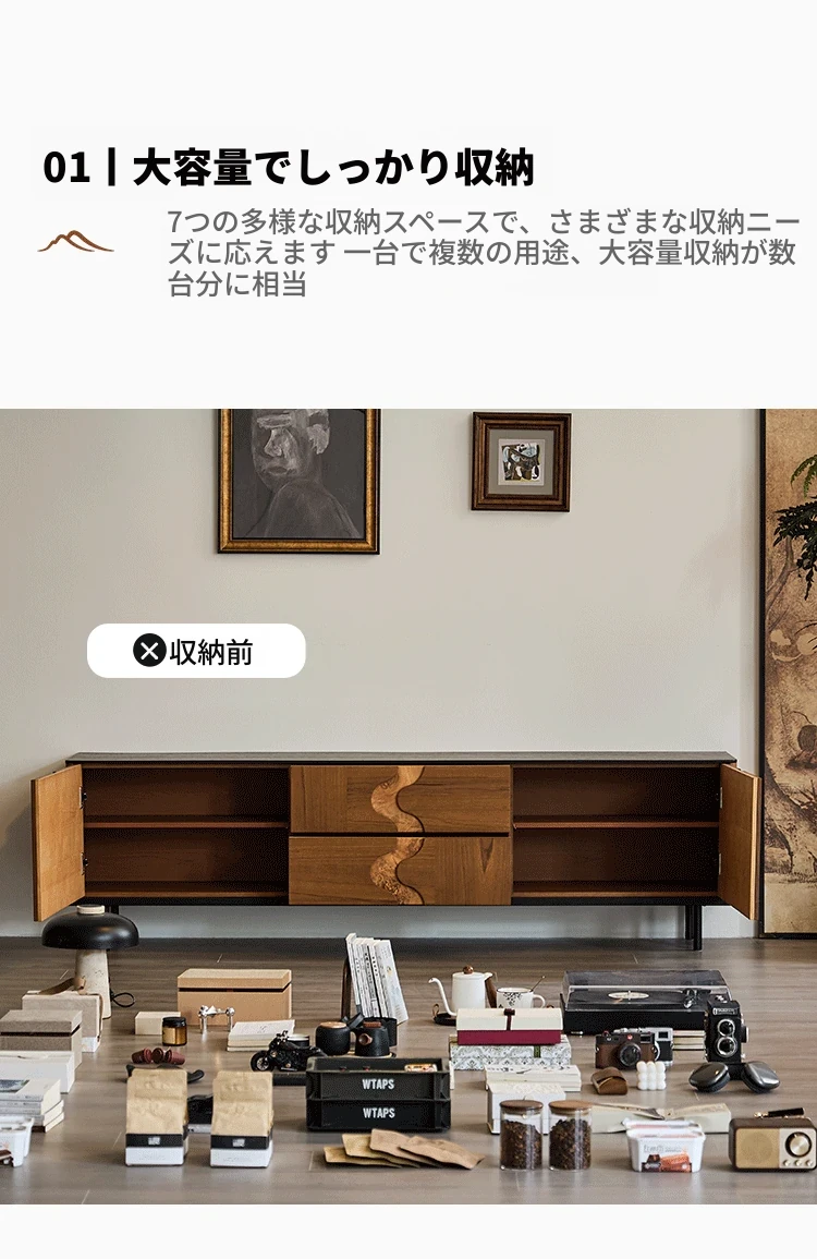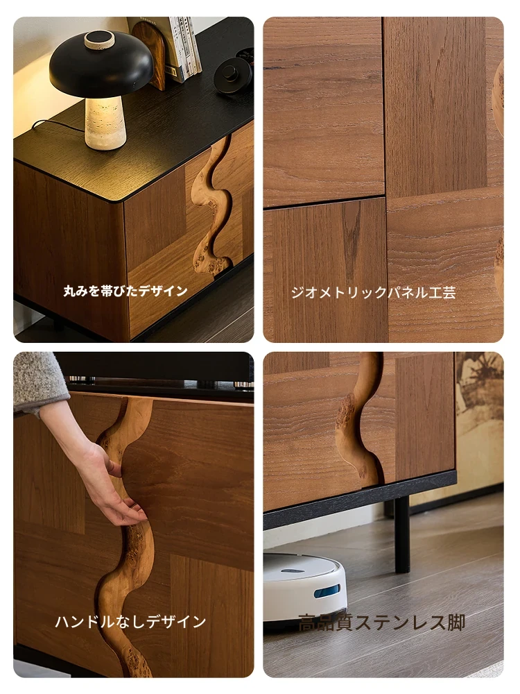 中古の無垢チークテレビキャビネット フランススタイルの高めのデザイン 宋式美学を取り入れた小型リビング向け シネマティックな雰囲気を演出するコンビネーションキャビネット