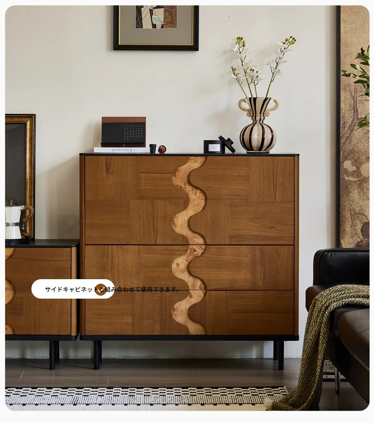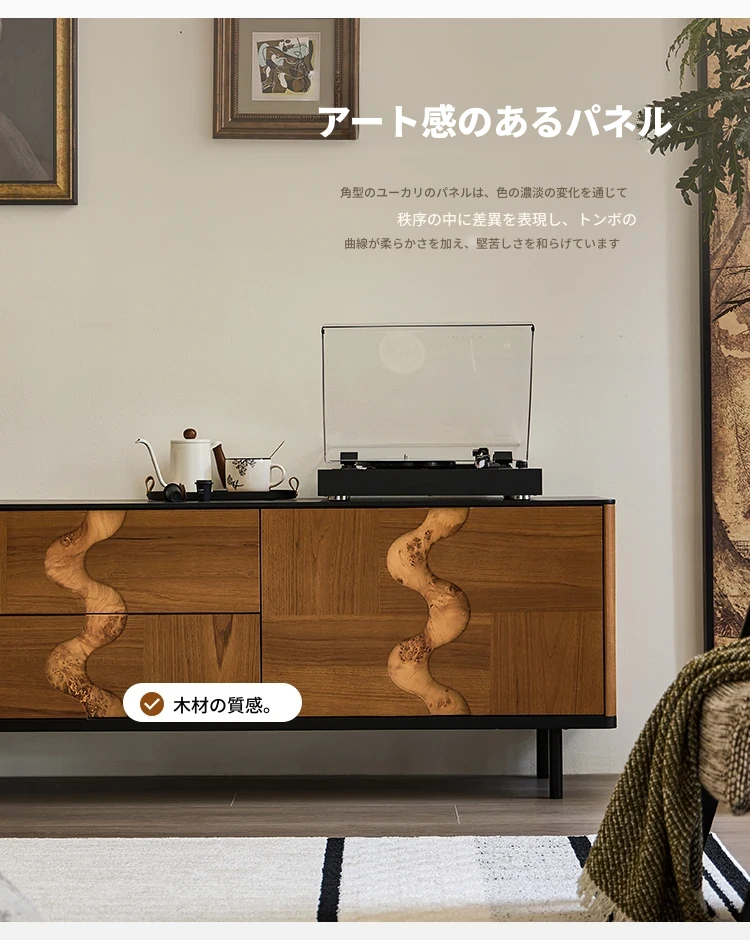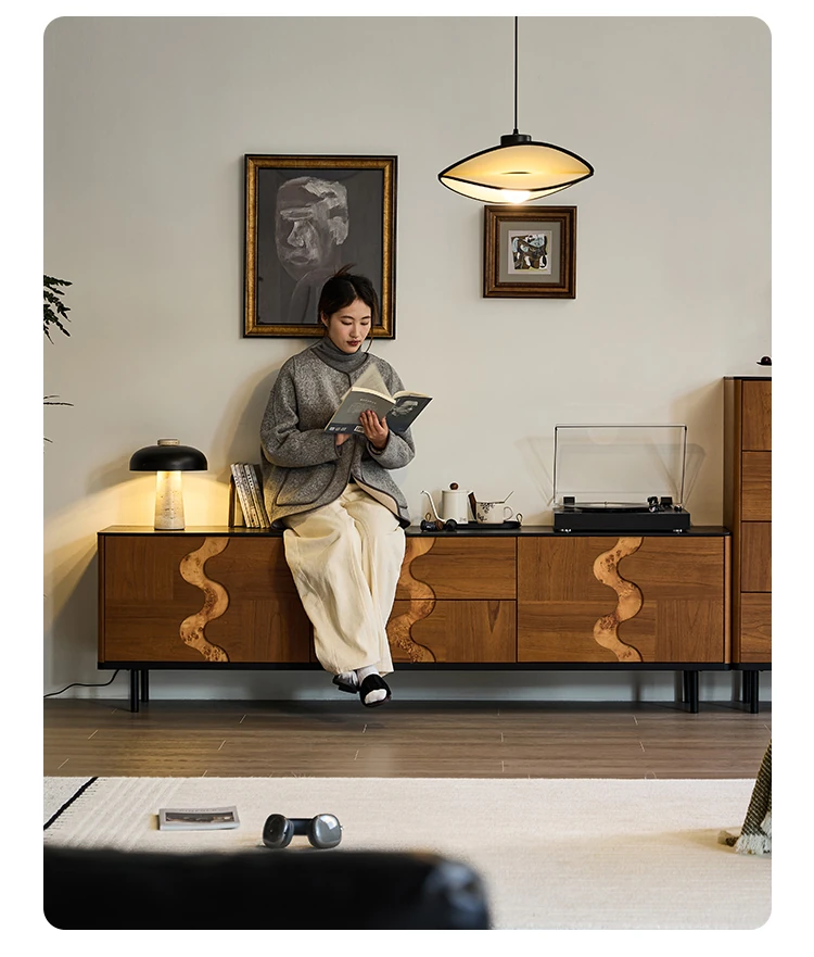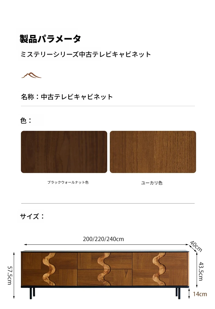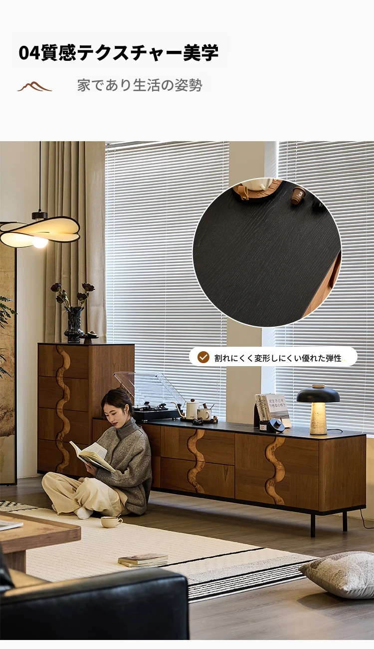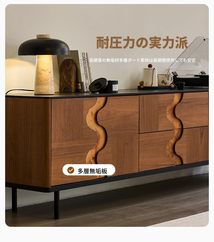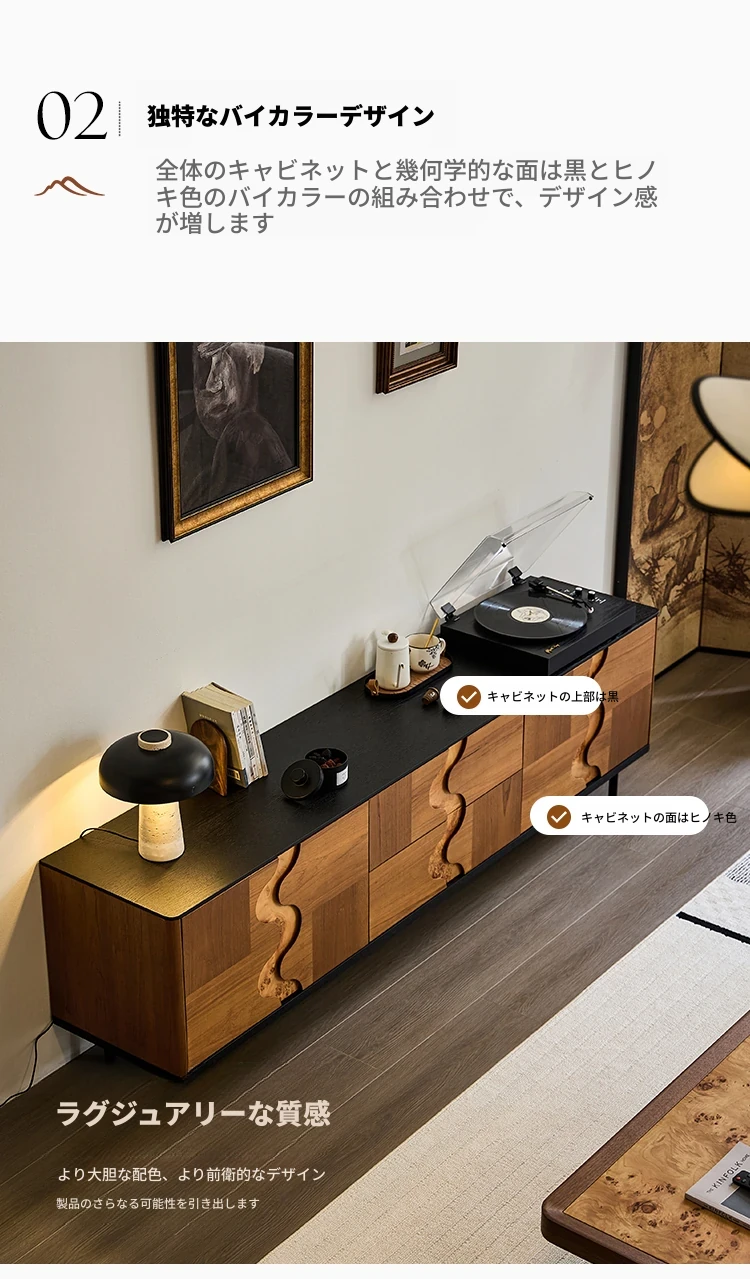 中古の無垢チークテレビキャビネット フランススタイルの高めのデザイン 宋式美学を取り入れた小型リビング向け シネマティックな雰囲気を演出するコンビネーションキャビネット