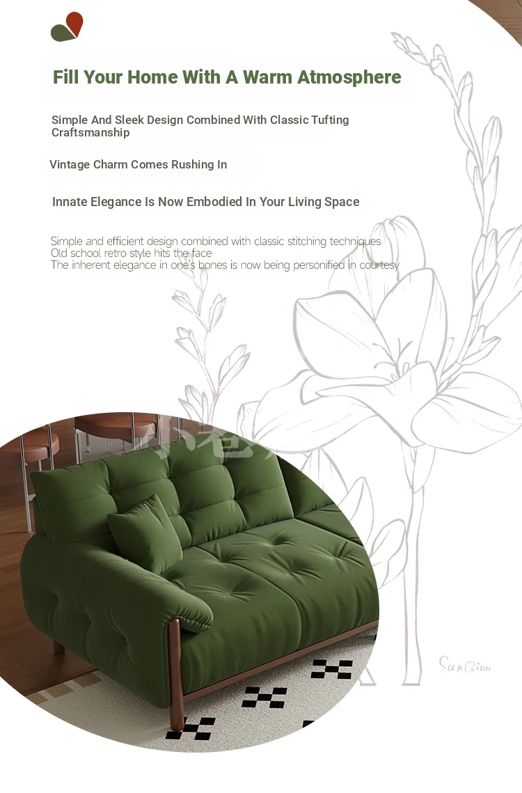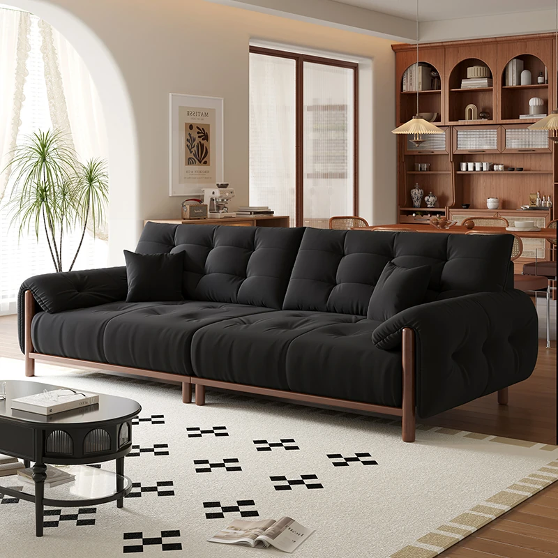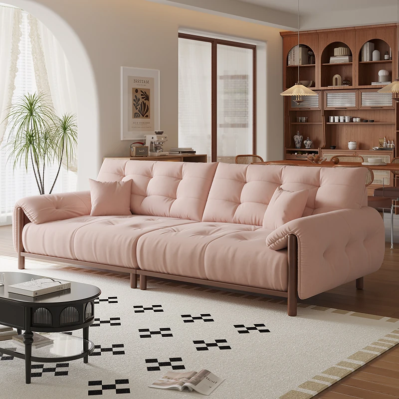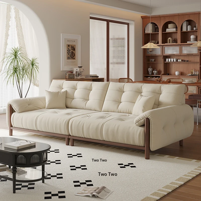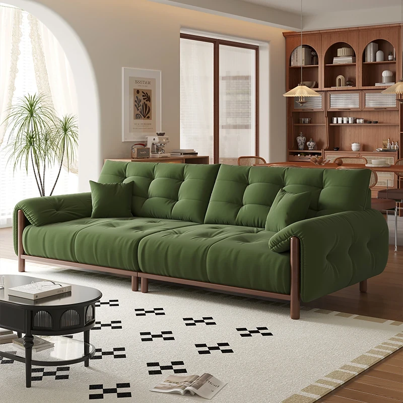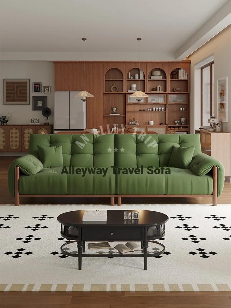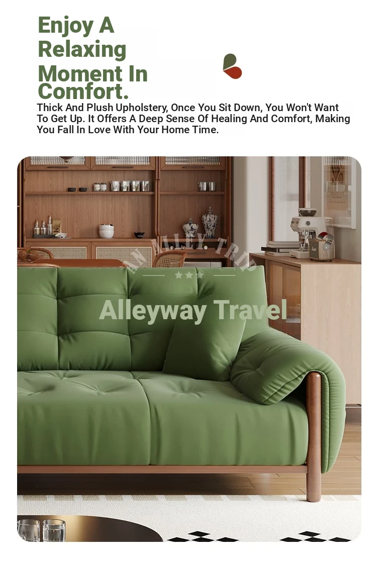 Vintage Solid Wood Sofa for Small Living Rooms - Chic Puff-Style Fabric Couch in Natural Wood Finish - Perfect for Cozy Spaces!