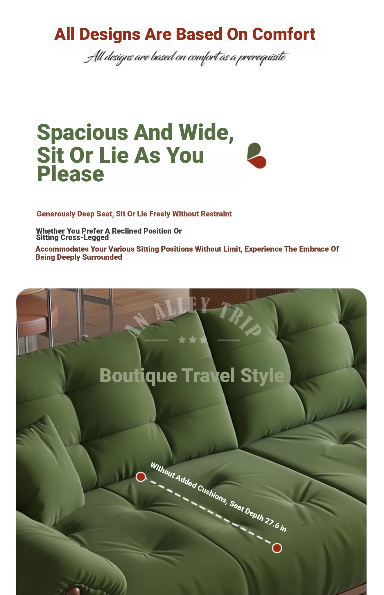 Big Three 94.49 in [High Rebound Sponge + Feather Silk Cushion]]