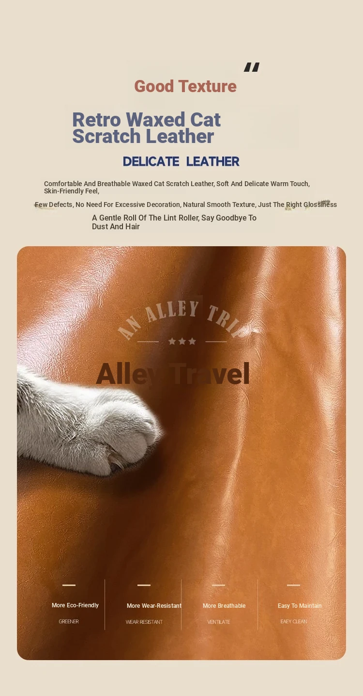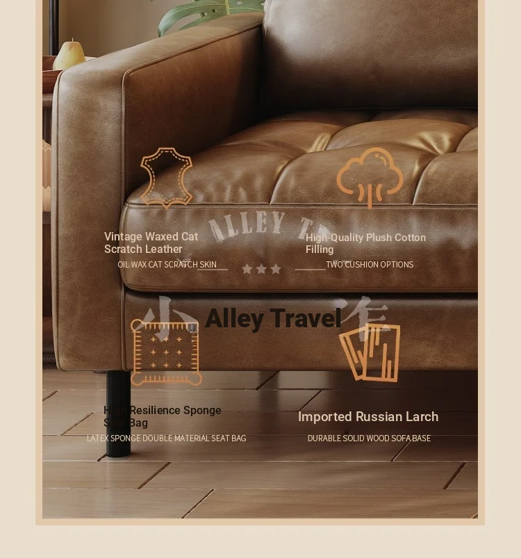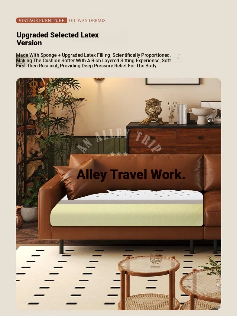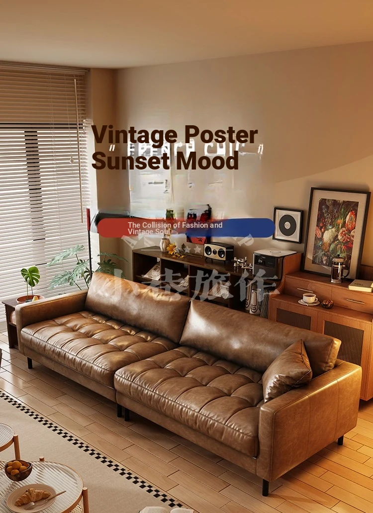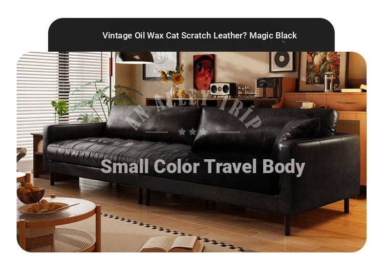 レトロオイルワックス加工のキャットグラブレザーソファ - 中古風の小型リビングルームに最適!アンティークブラウンのストレートソファで、狭いスペースでもスタイリッシュに。おしゃれなインテリアにぴったりです!