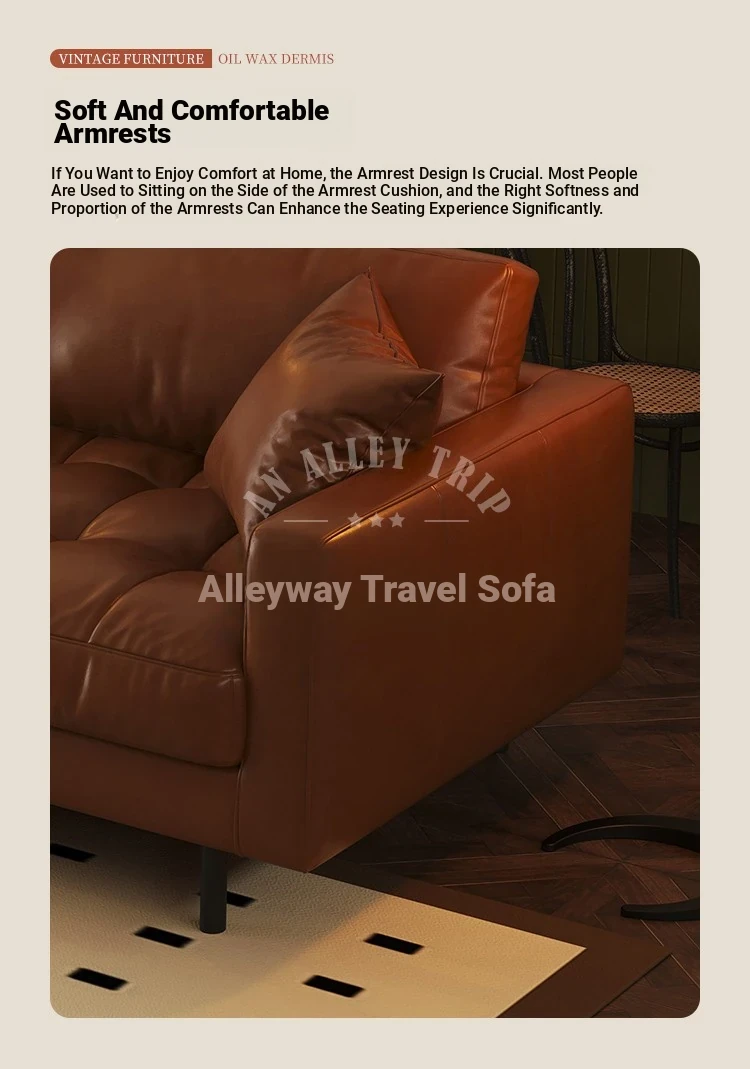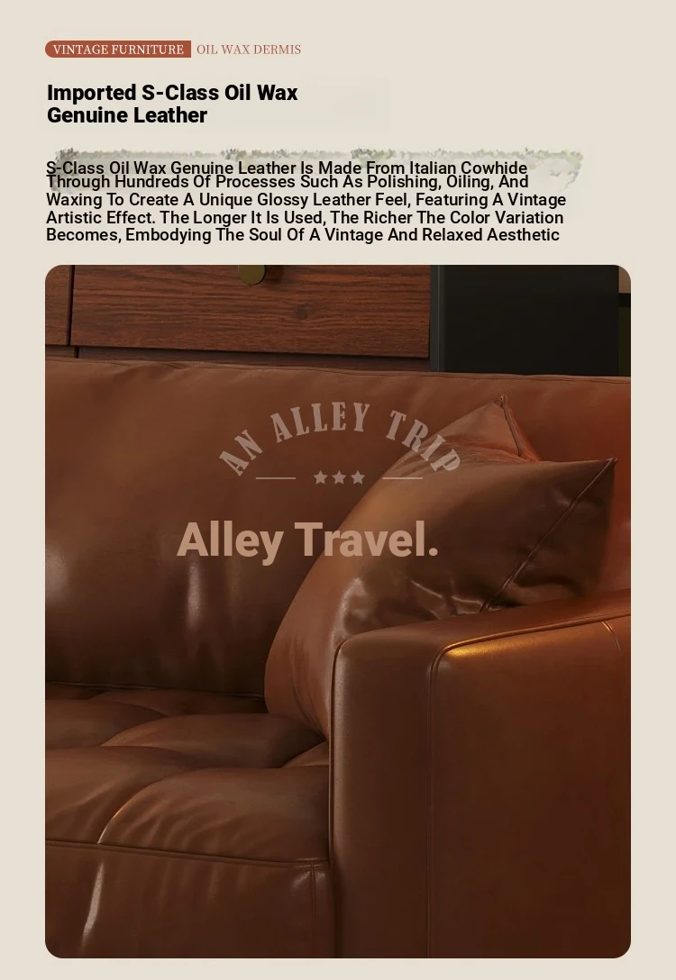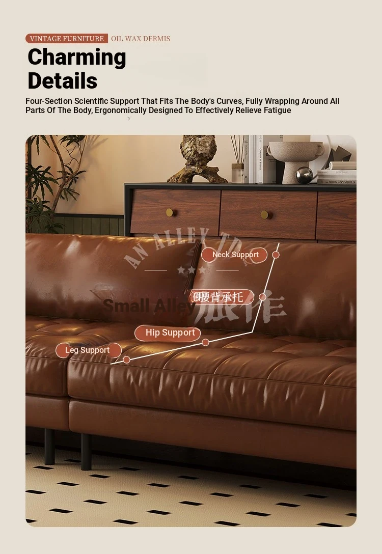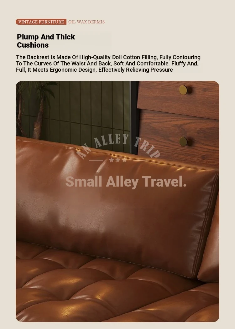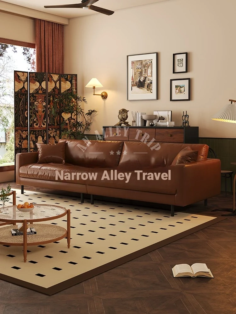Vintage Waxed Genuine Leather Sofa for Small Apartments - Retro Distressed Brown Straight Sofa for Cozy Living Rooms