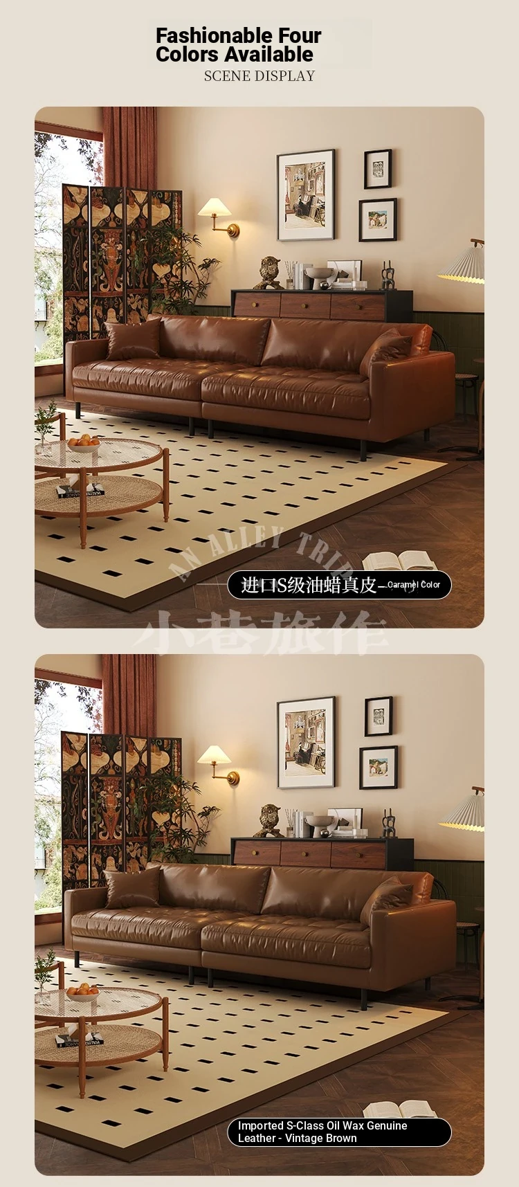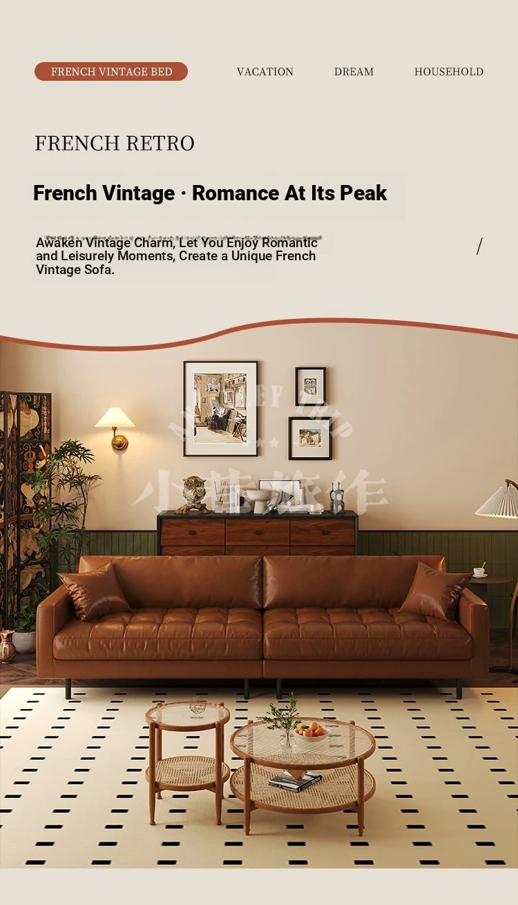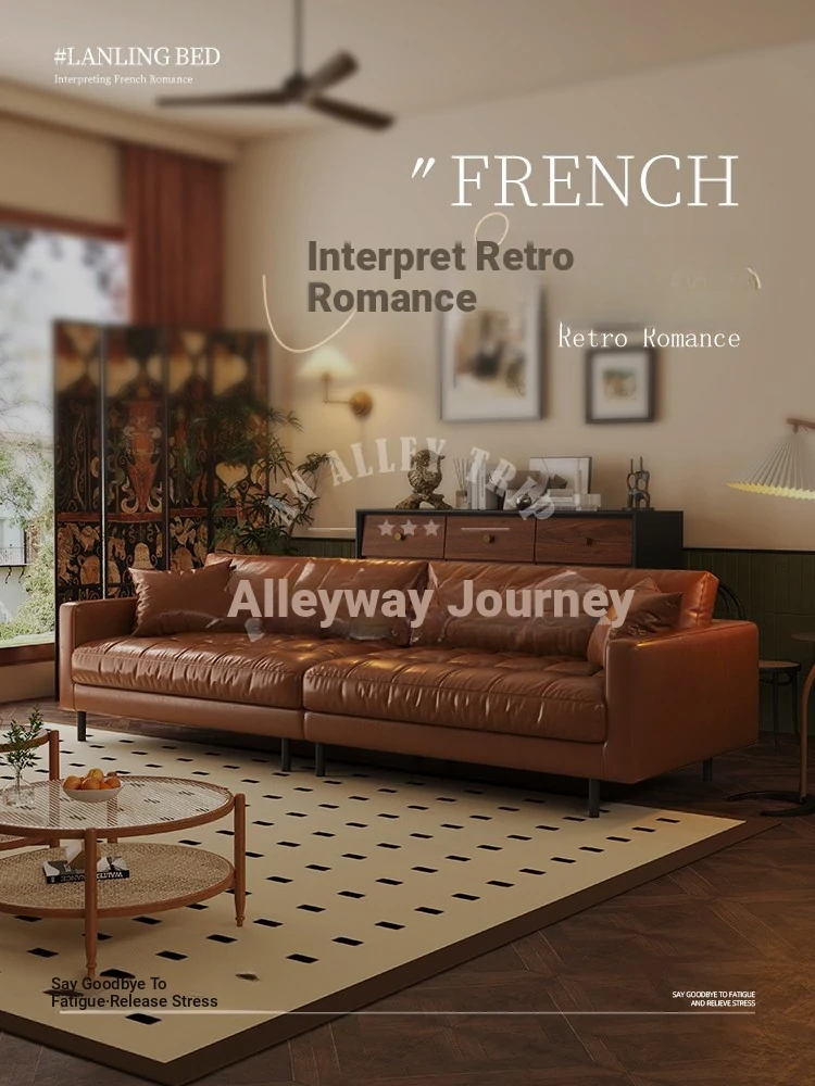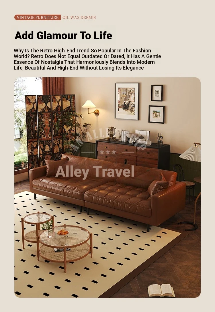 Vintage Waxed Genuine Leather Sofa for Small Apartments - Retro Distressed Brown Straight Sofa for Cozy Living Rooms
