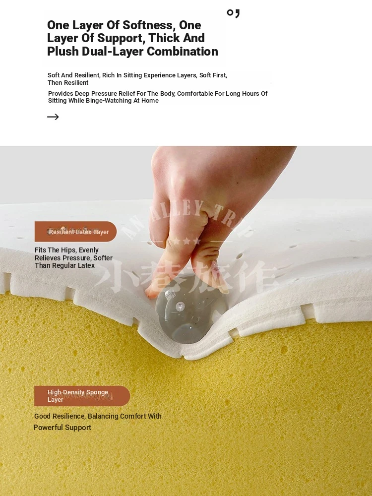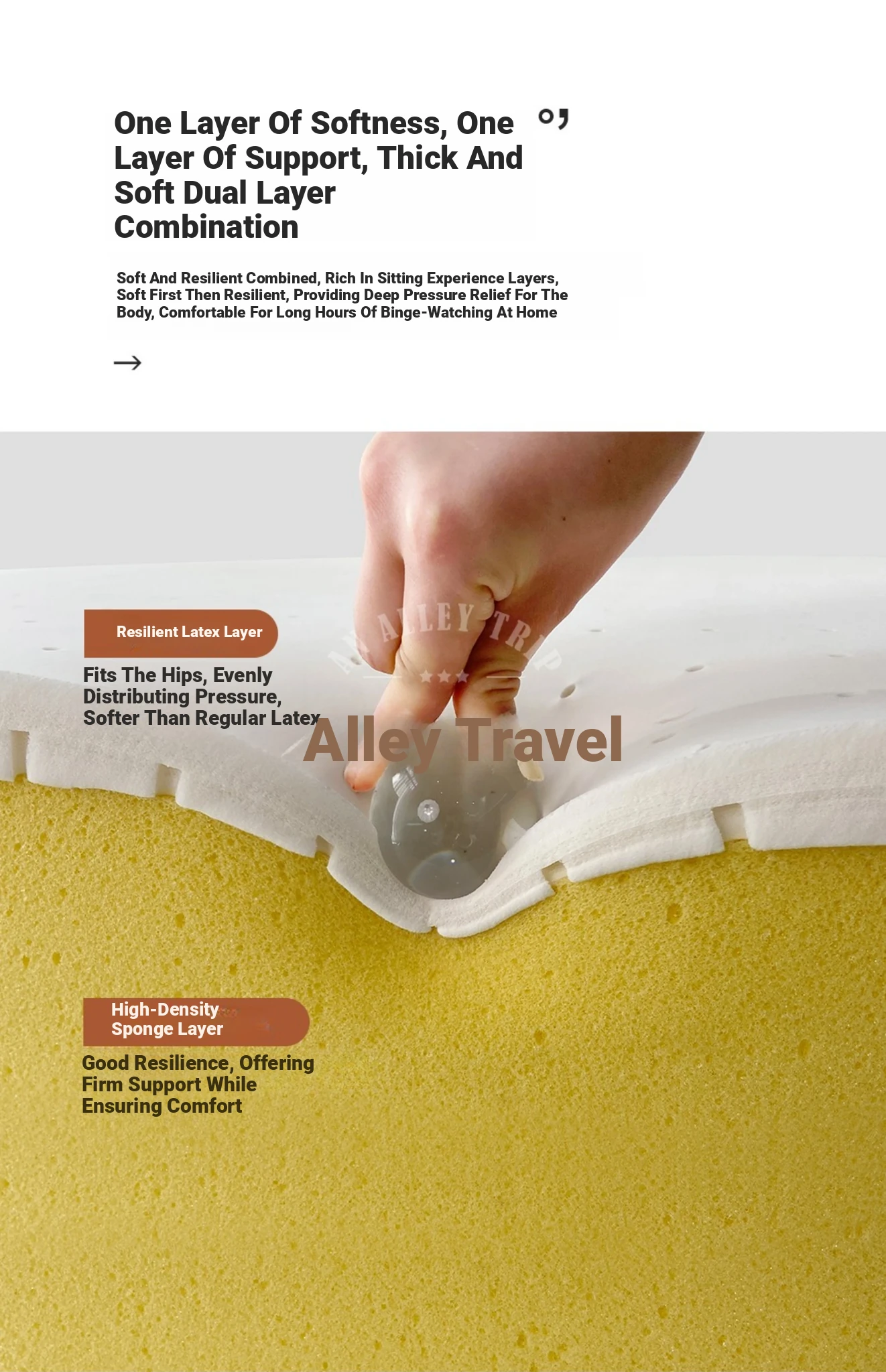 Large Double 70.87 in [Soft Waxy Sitting Feeling-Breathable Plaid] Natural Washed Latex + High Resilience Sponge + Violet Sponge