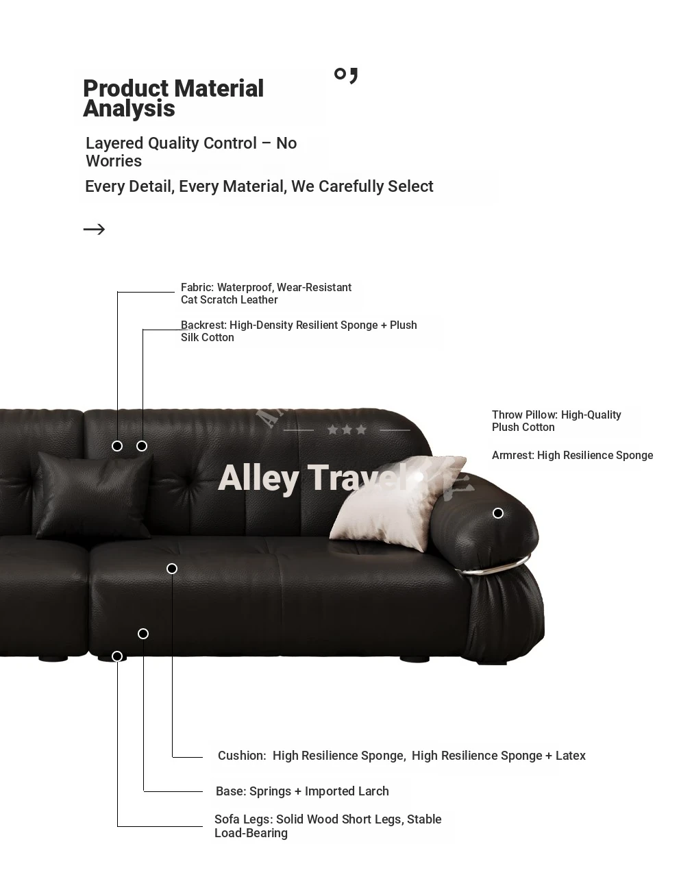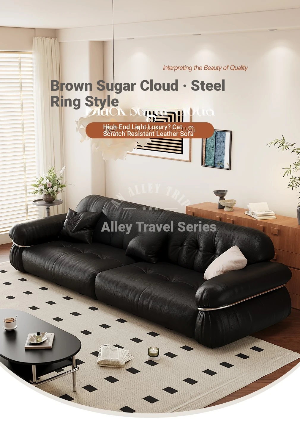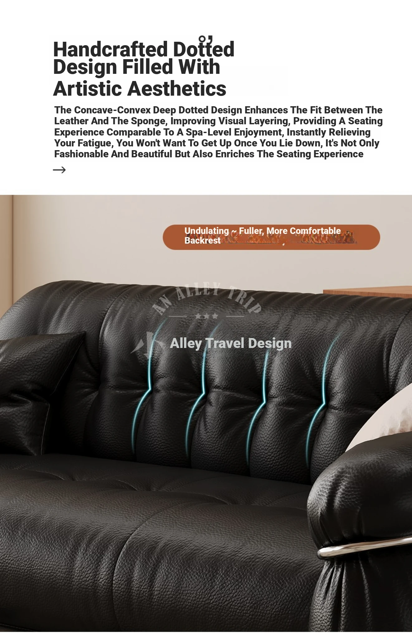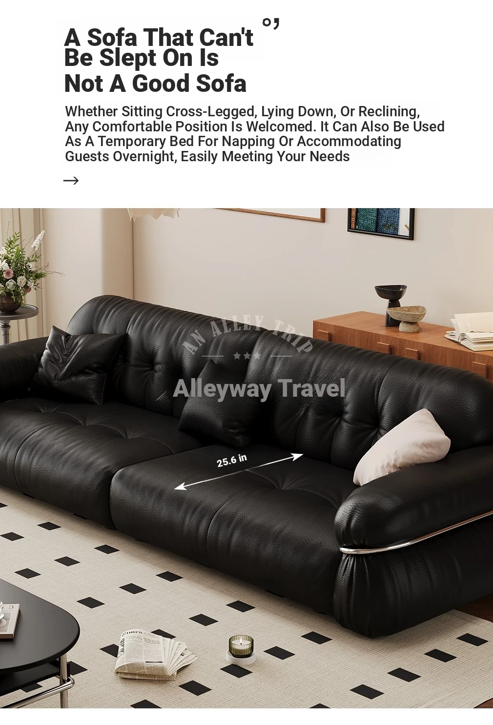 Vintage-Inspired Audrey Leather Sofa with Steel Frame - Chic Designer Piece for Your Living Room, Perfect for a Touch of Retro Luxury