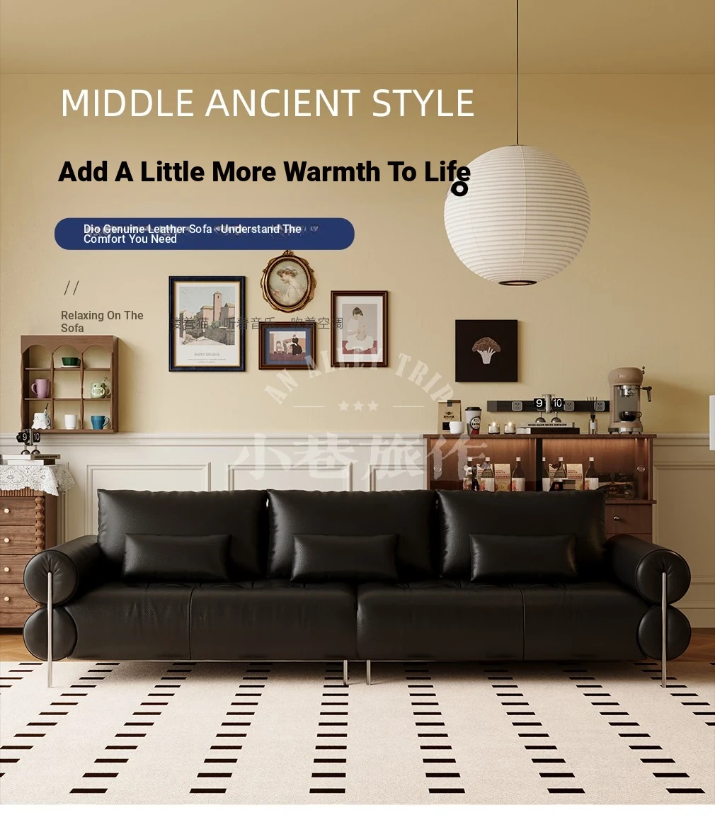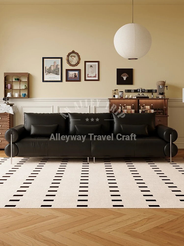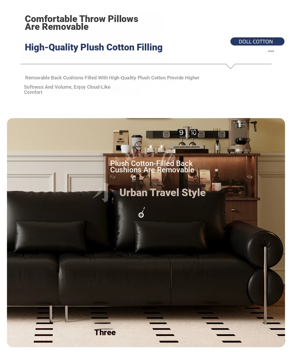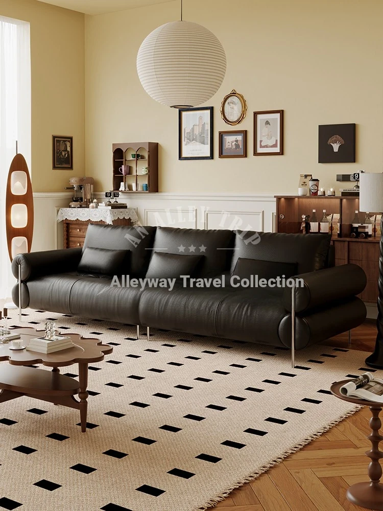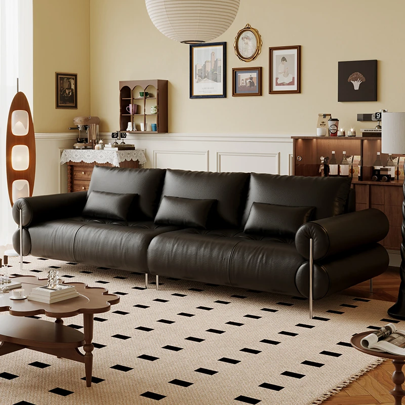 Vintage-Inspired Retro Leather Black Sugar Cloud Sofa for Small Living Rooms - Perfect for Cozy Spaces and Mid-Century Aesthetic