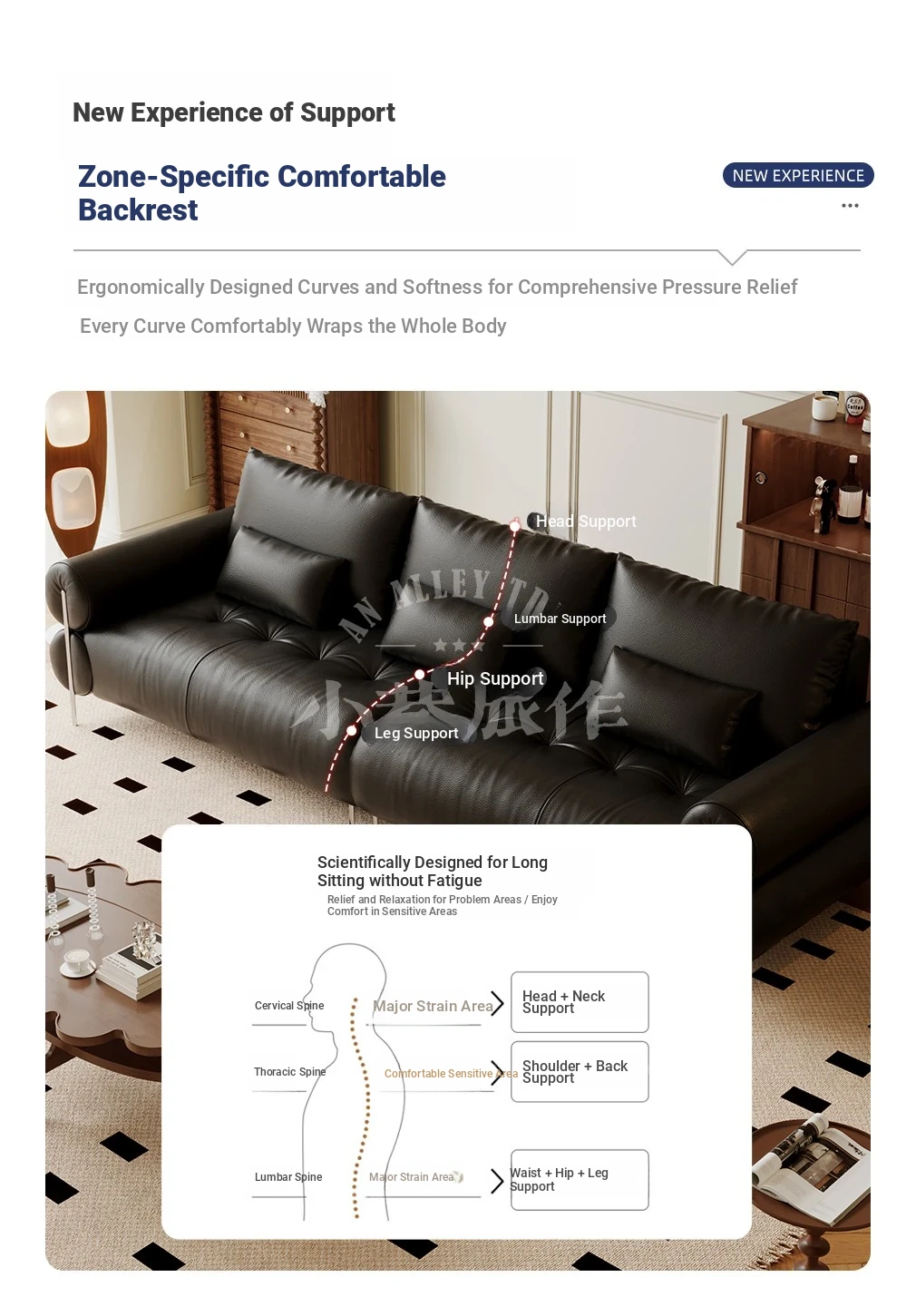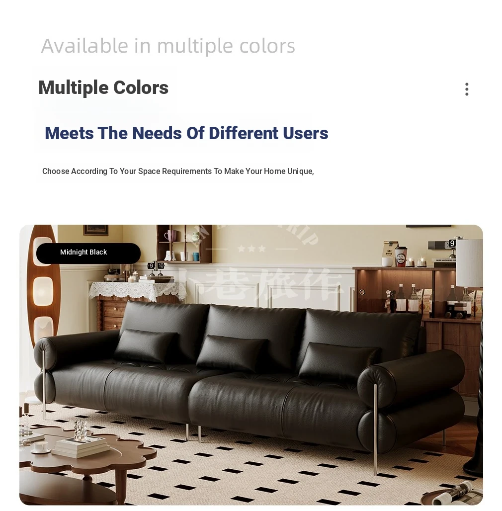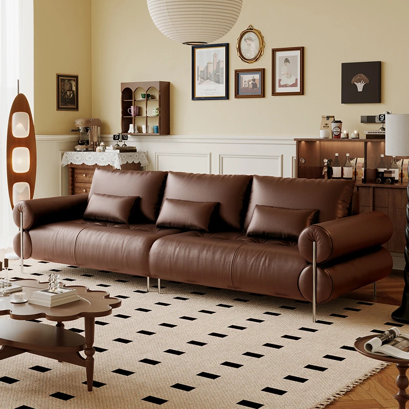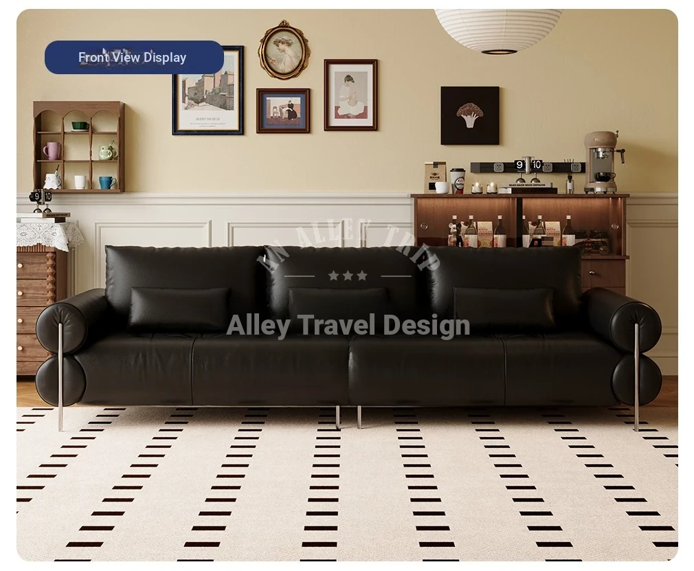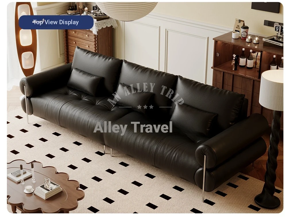Vintage-Inspired Retro Leather Black Sugar Cloud Sofa for Small Living Rooms - Perfect for Cozy Spaces and Mid-Century Aesthetic