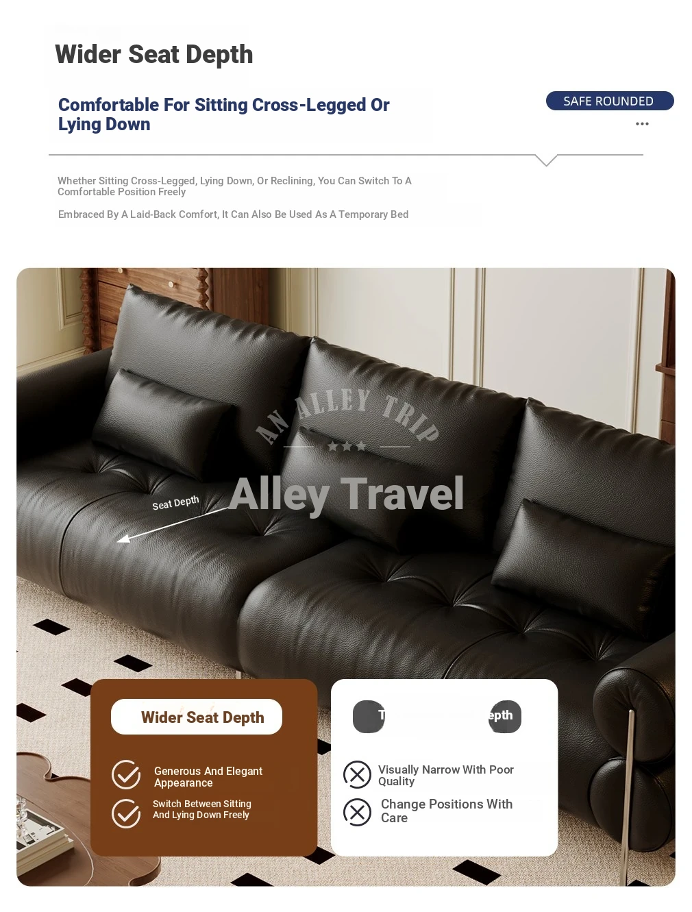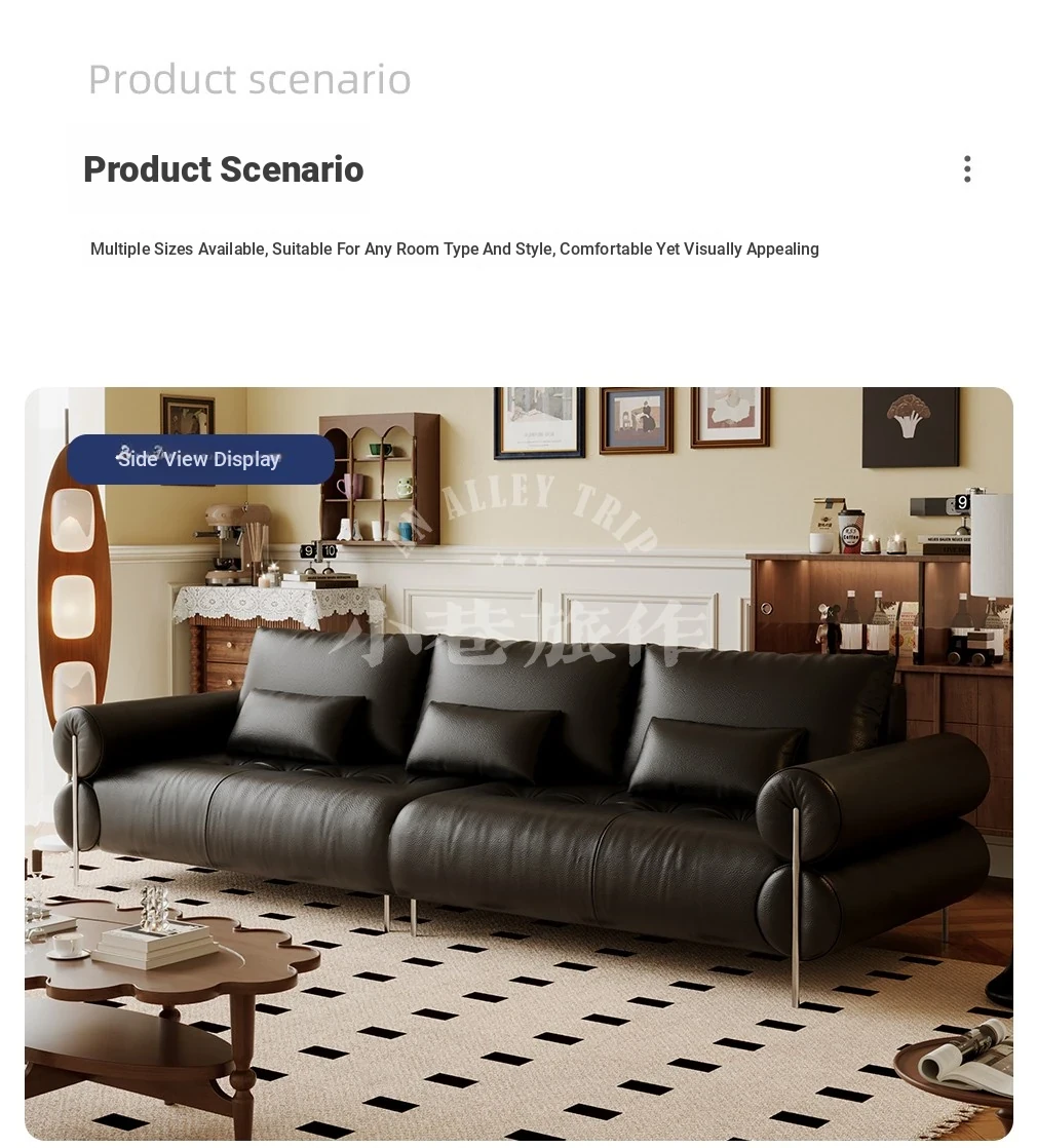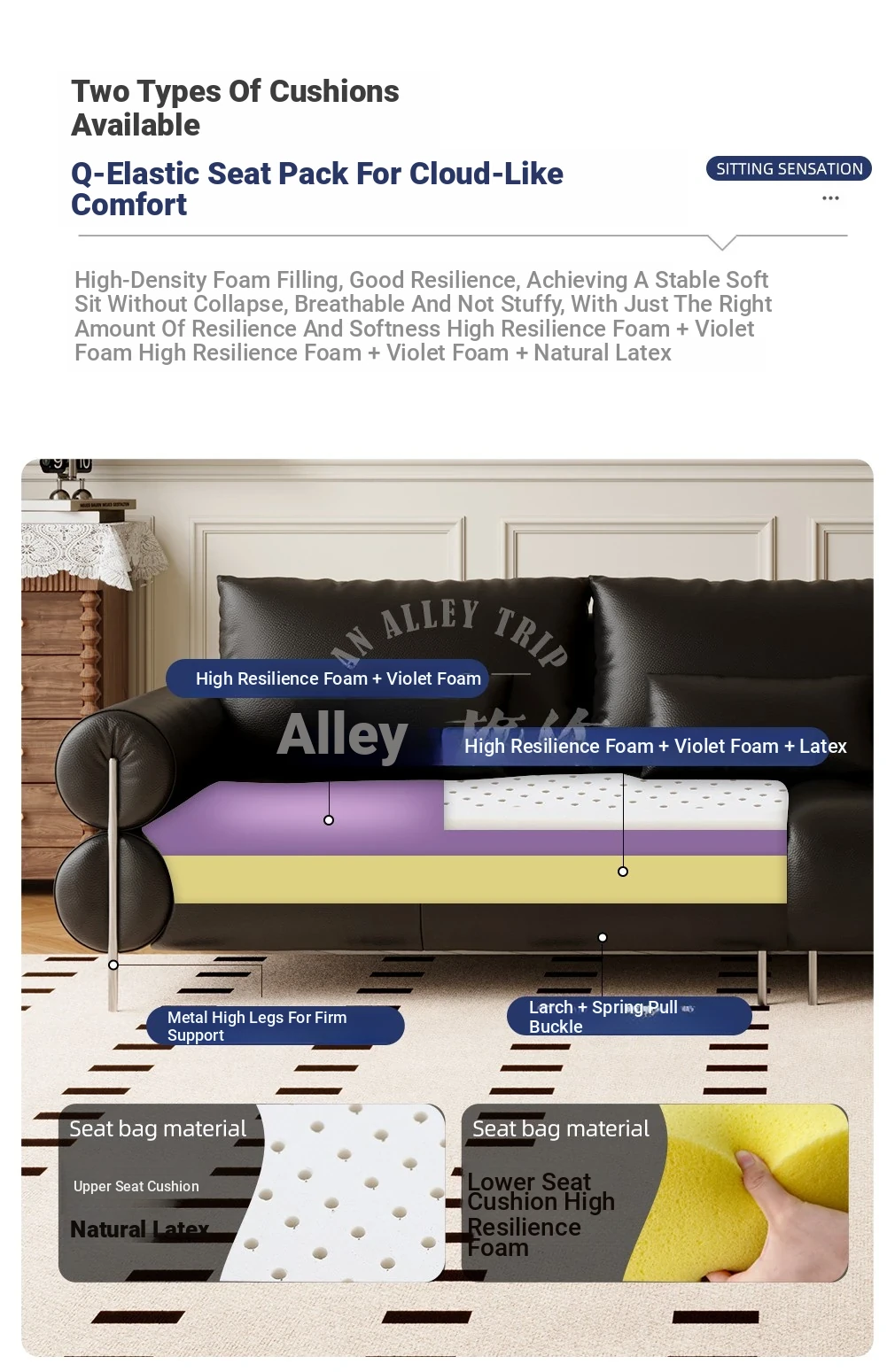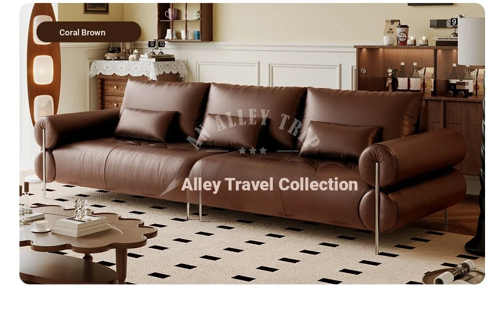Vintage-Inspired Retro Leather Black Sugar Cloud Sofa for Small Living Rooms - Perfect for Cozy Spaces and Mid-Century Aesthetic